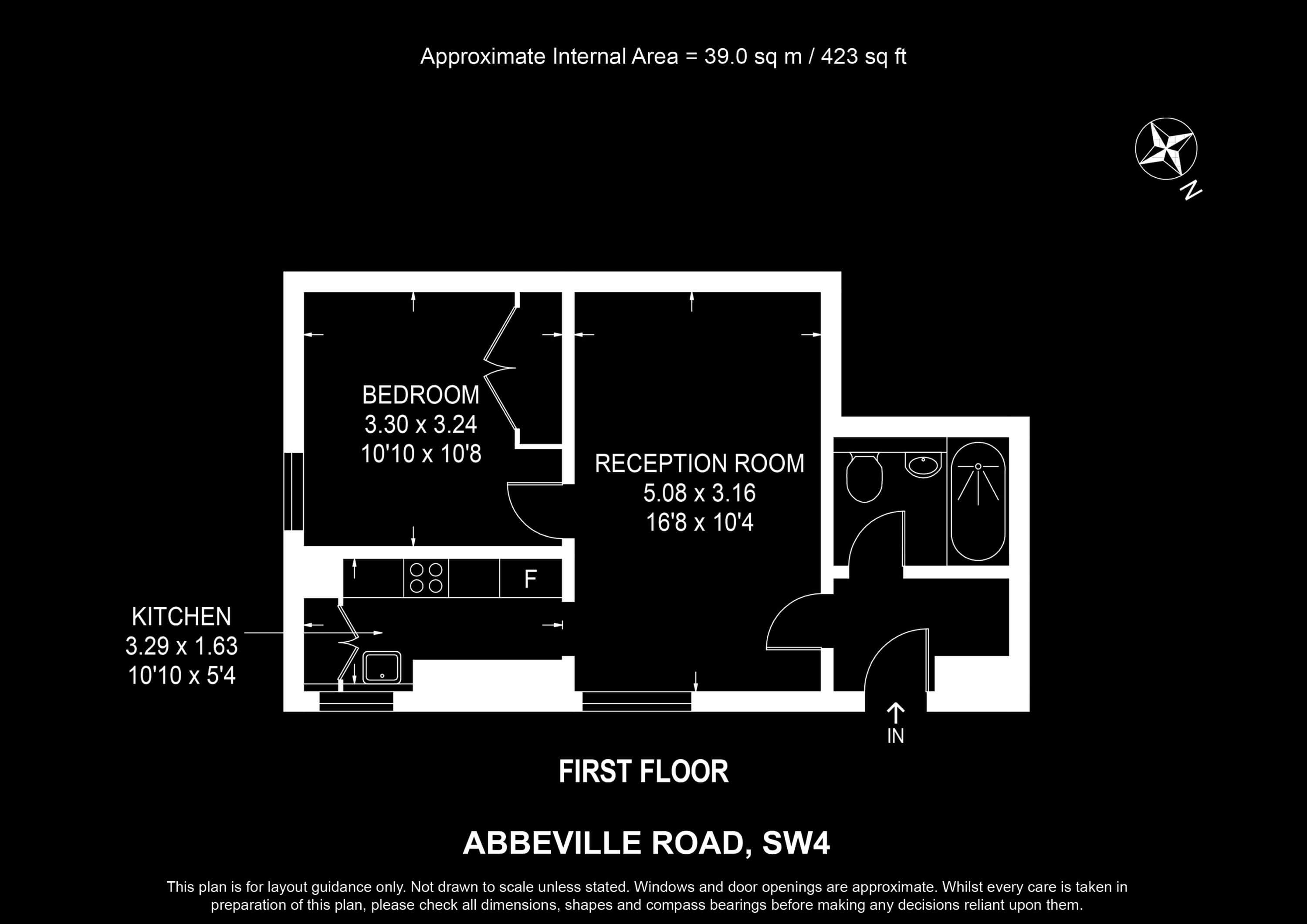 Internal Area (approx.): 39 sqm / 423 sq ft
