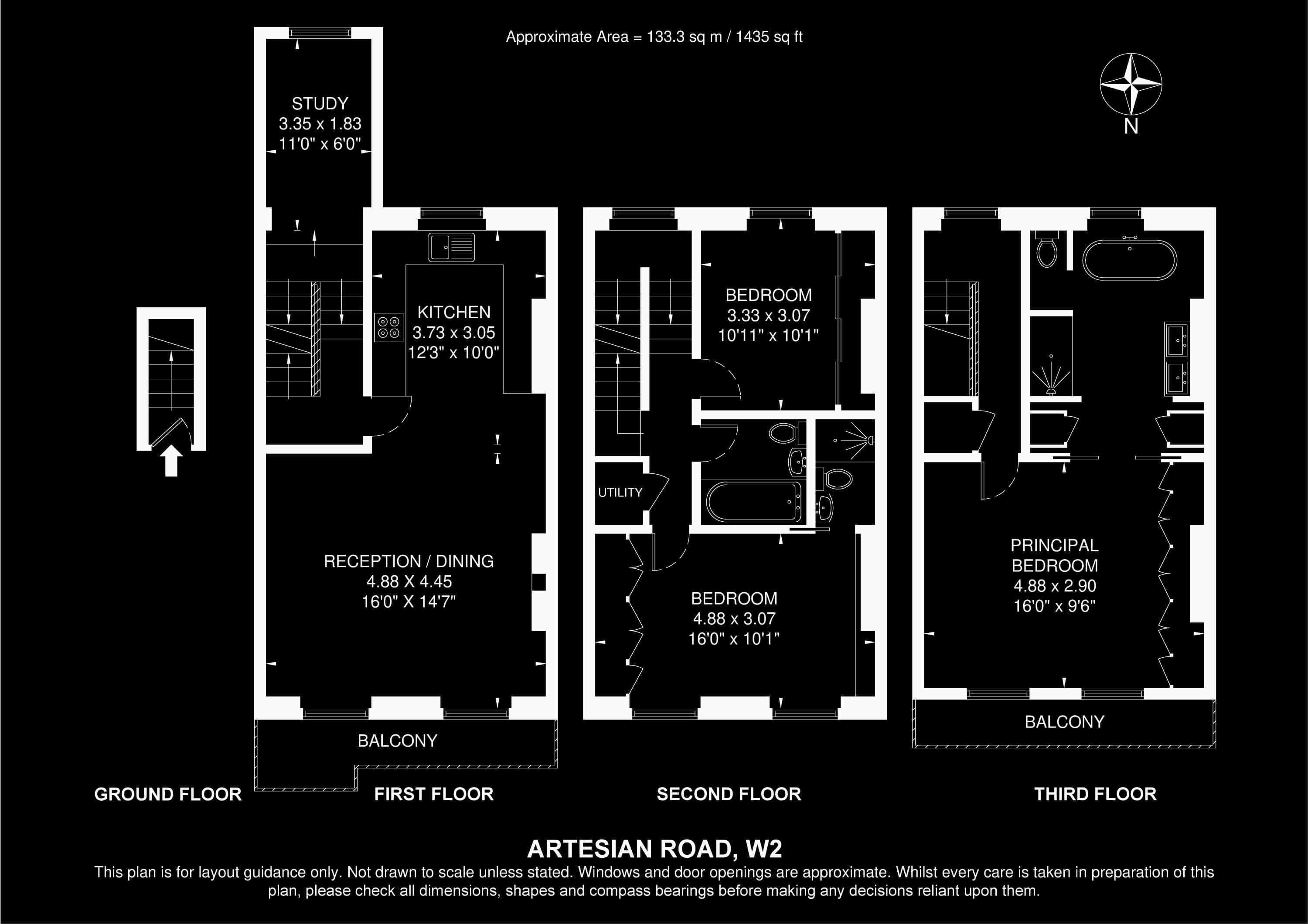 Internal Area (approx.): 133 sqm / 1,435 sq ft