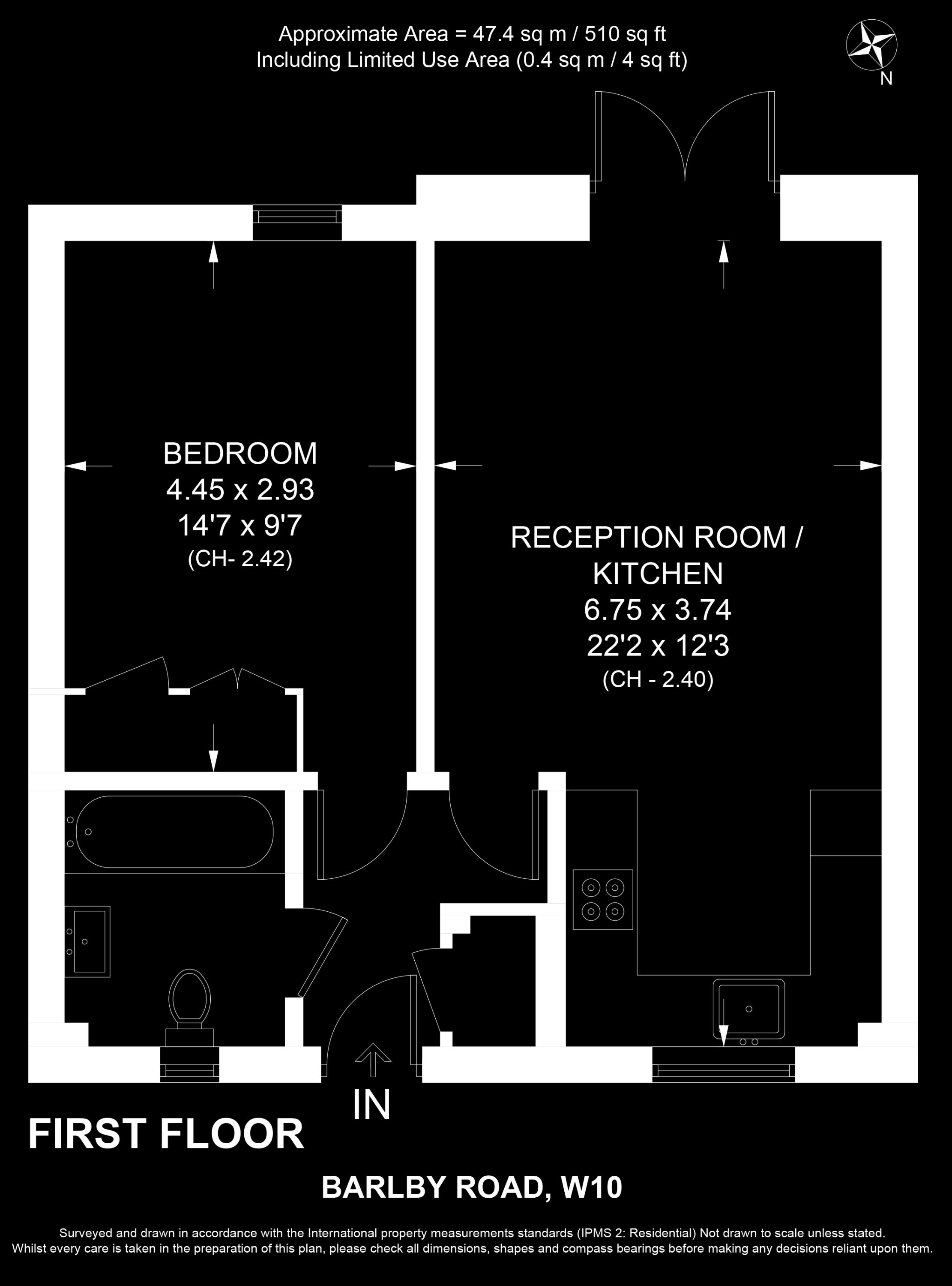 Internal Area (approx.): 47 sqm / 510 sq ft