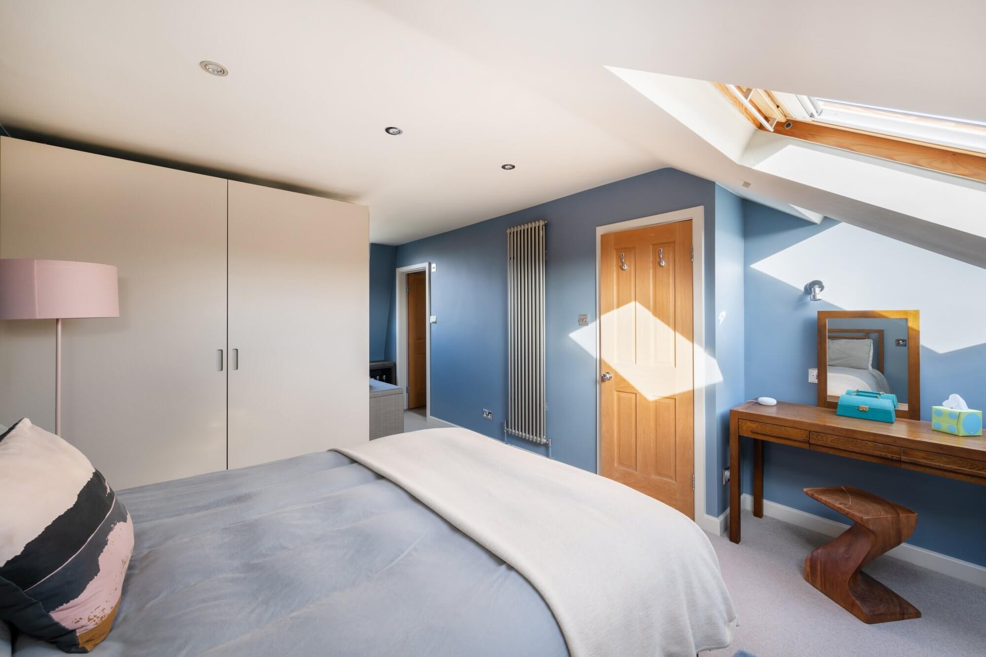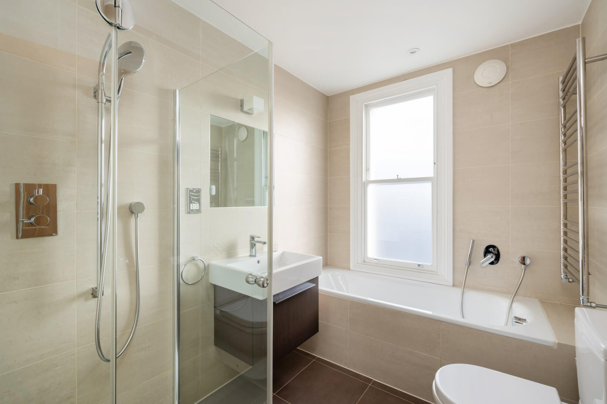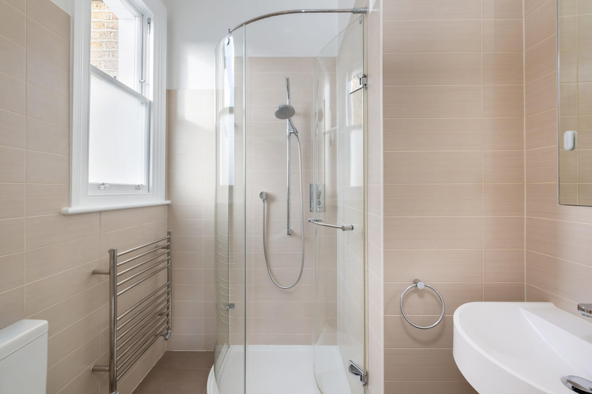 Upstairs, the top floor provides a spacious principle bedroom with ample storage and an en-suite bathroom with both bath and shower. Three further double bedrooms are arranged across the upper floors and are served by two additional modern bathrooms, all finished in a considered and understated style.