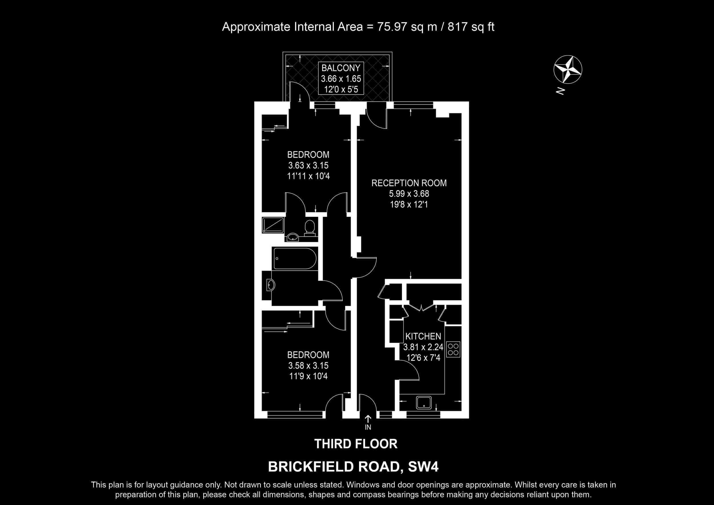Internal Area (approx.): 76 sqm / 817 sq ft