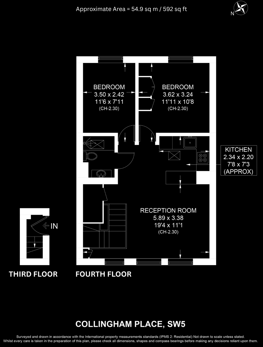 Internal Area (approx.): 55 sqm / 592 sq ft