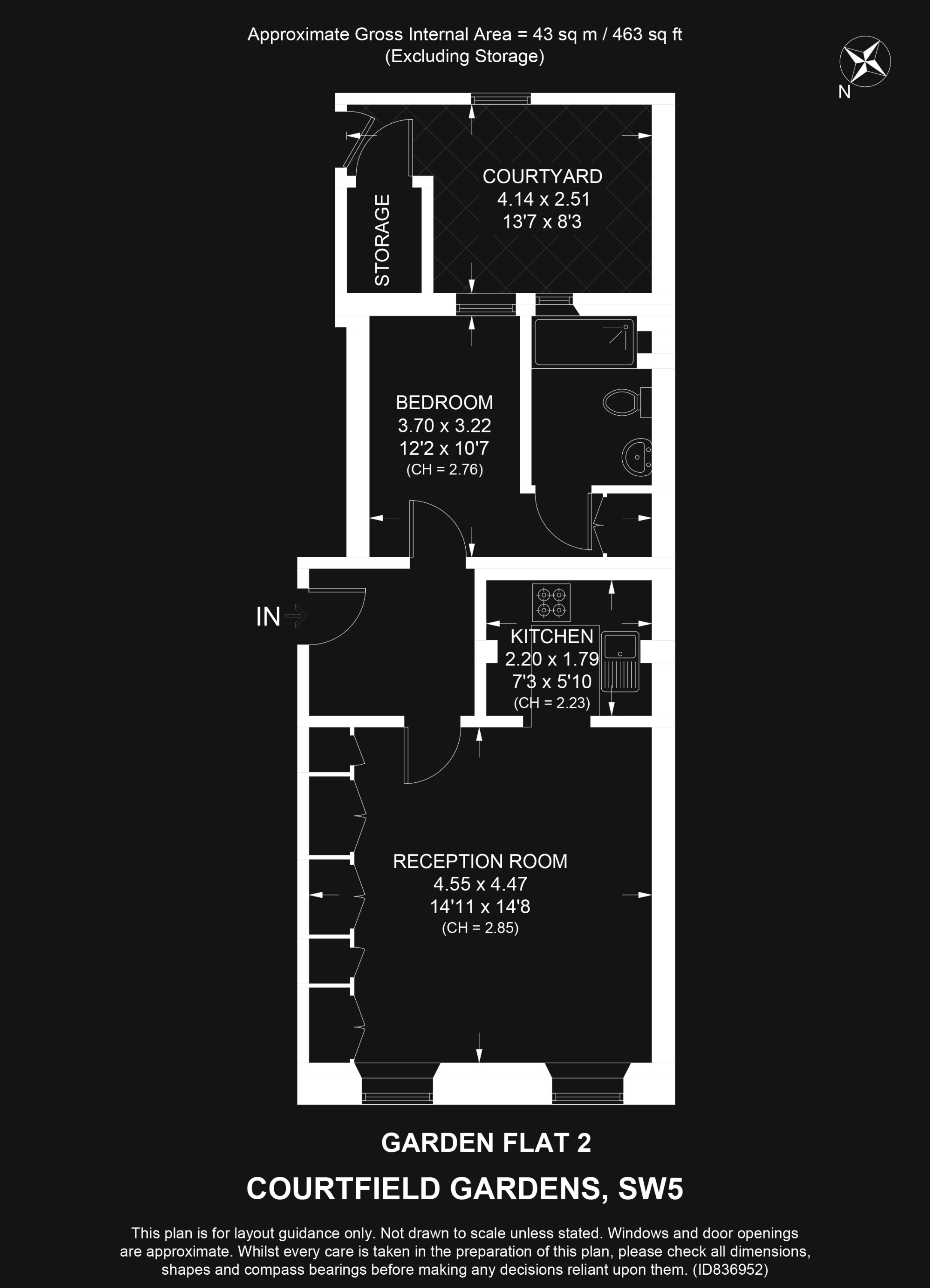 Internal Area (approx.): 43 sqm / 463 sq ft