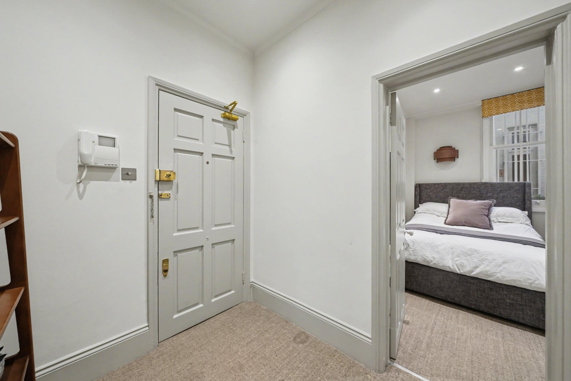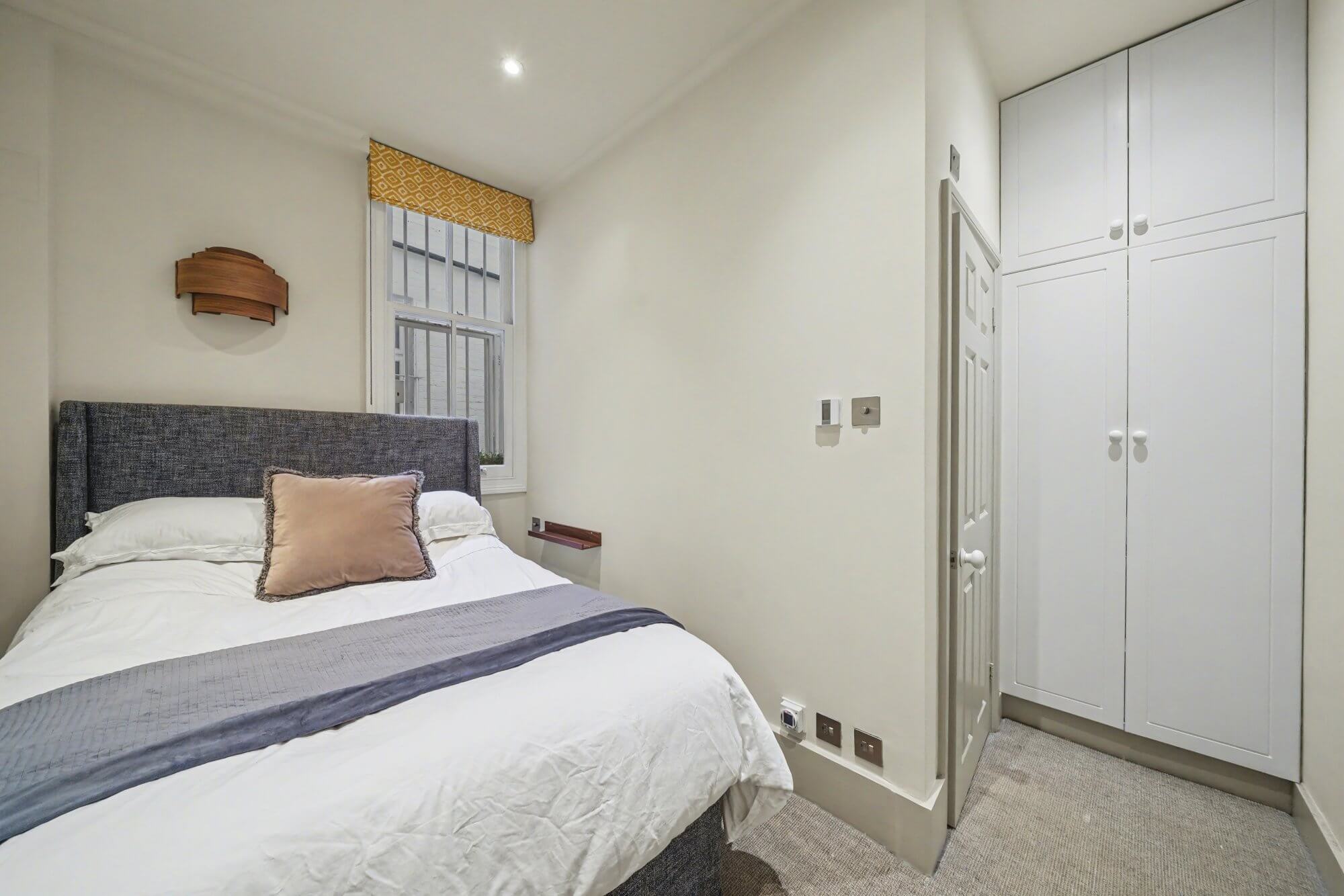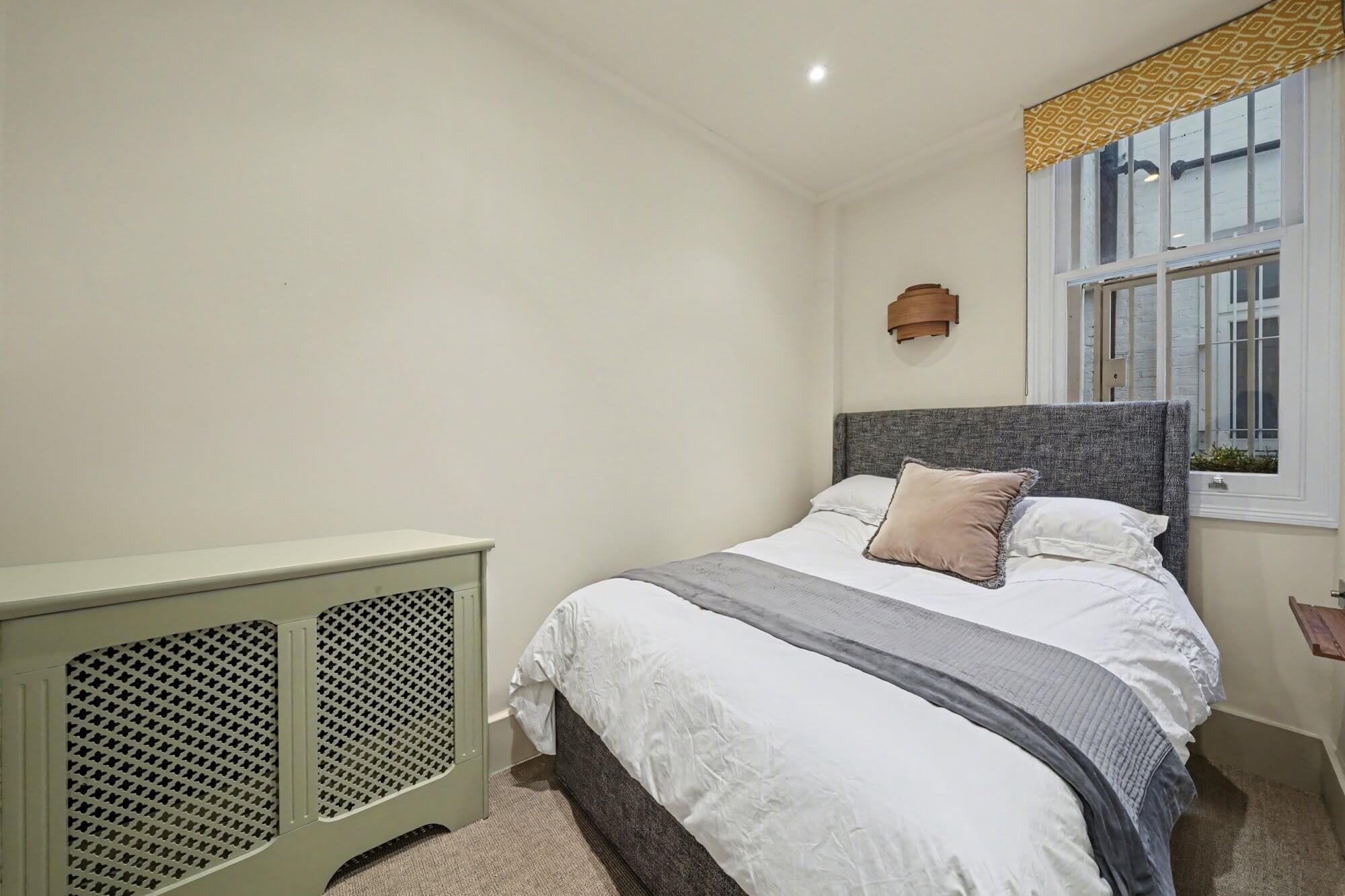 The double bedroom sits quietly to the rear of the building. A modern bathroom completes the accommodation, finished in a clean and simple style.
