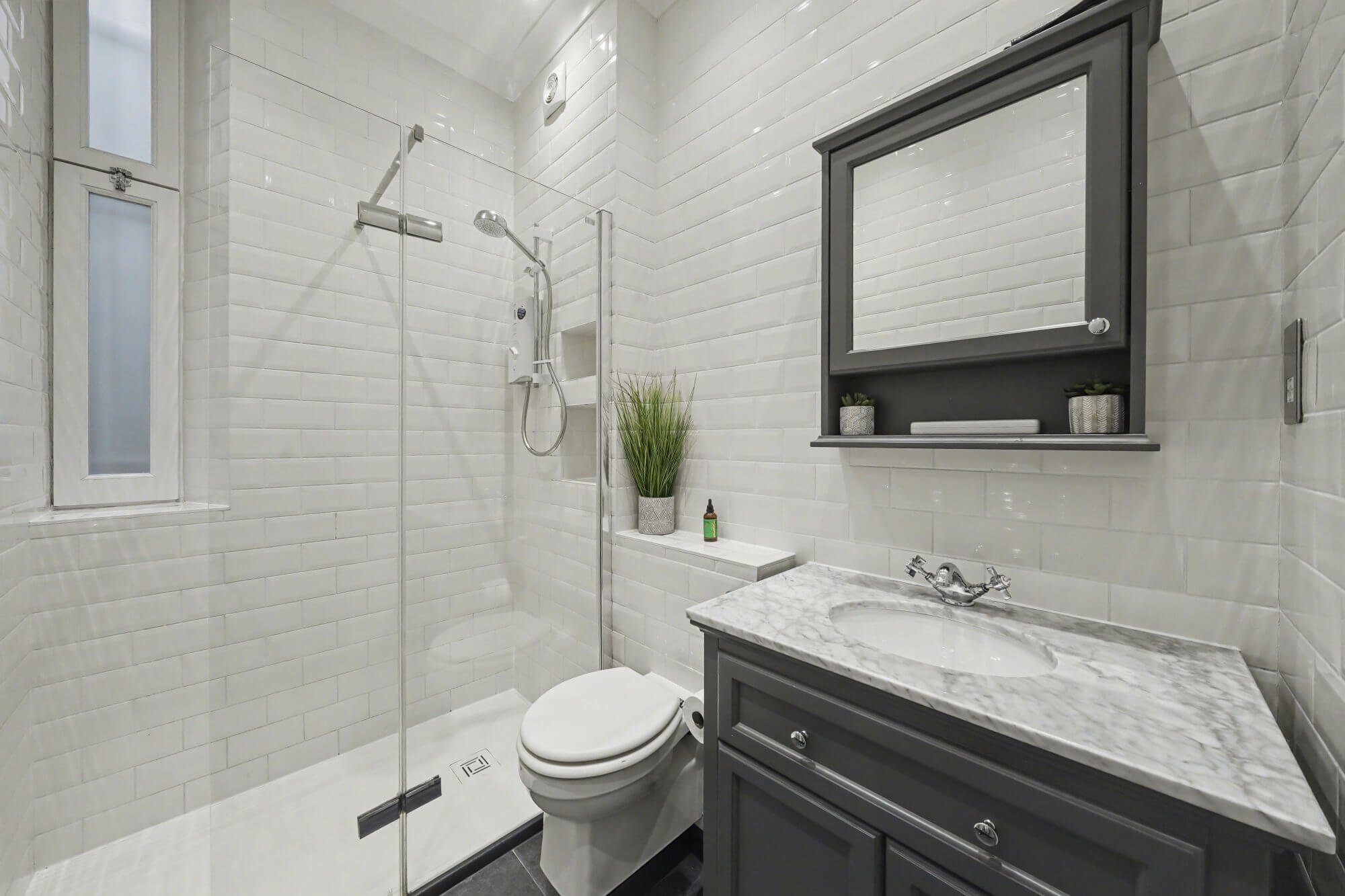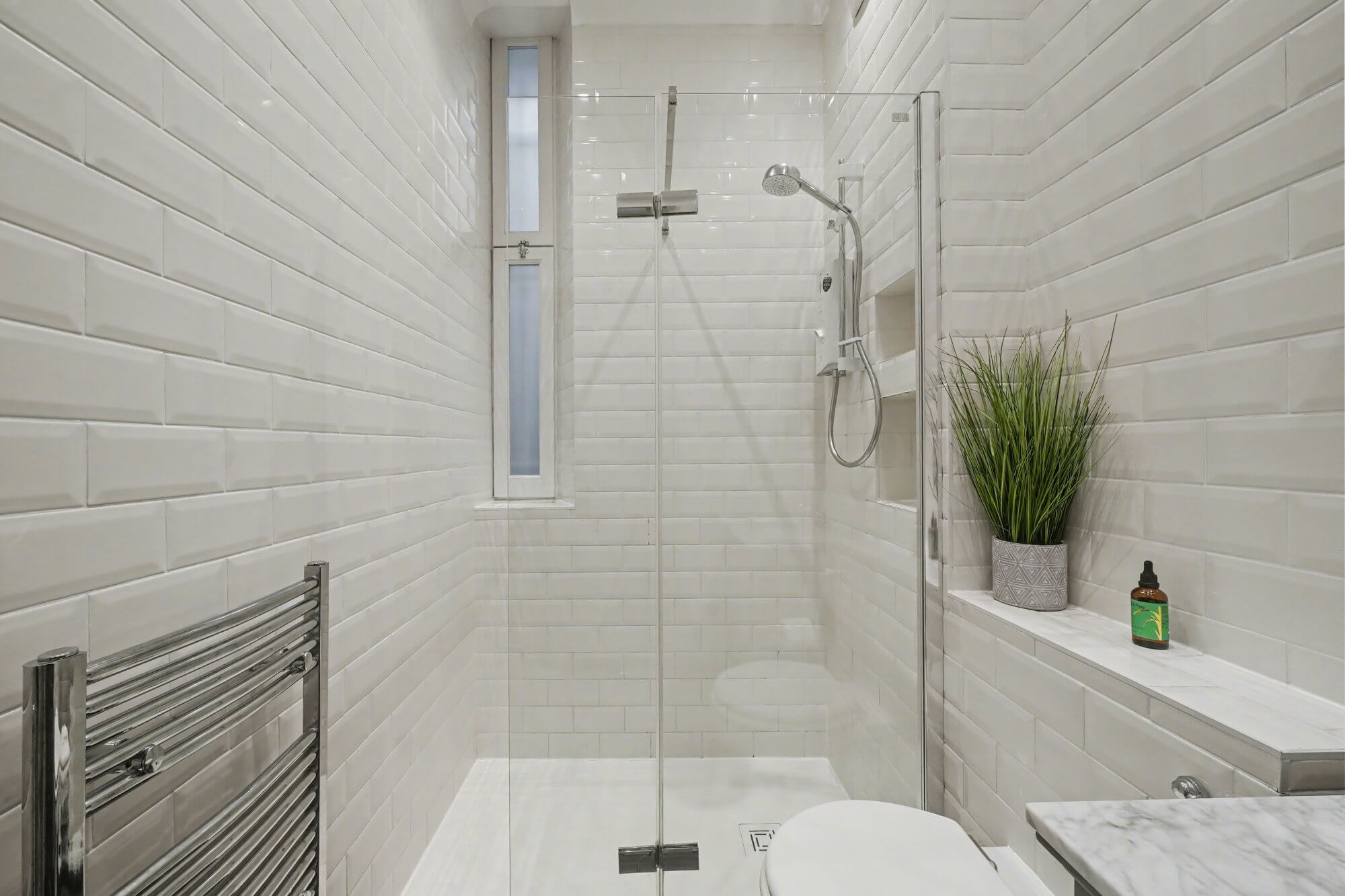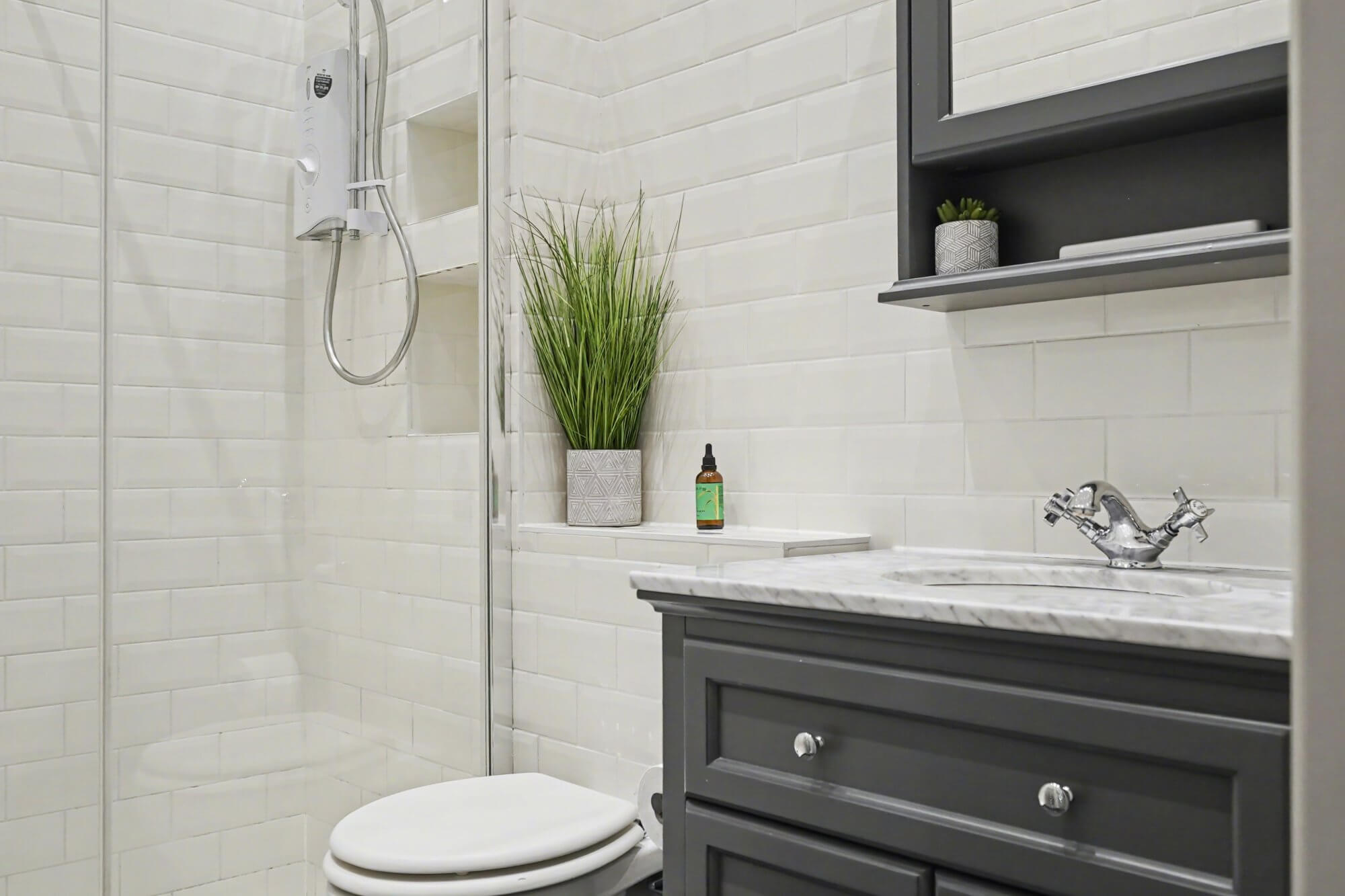 The double bedroom sits quietly to the rear of the building. A modern bathroom completes the accommodation, finished in a clean and simple style.