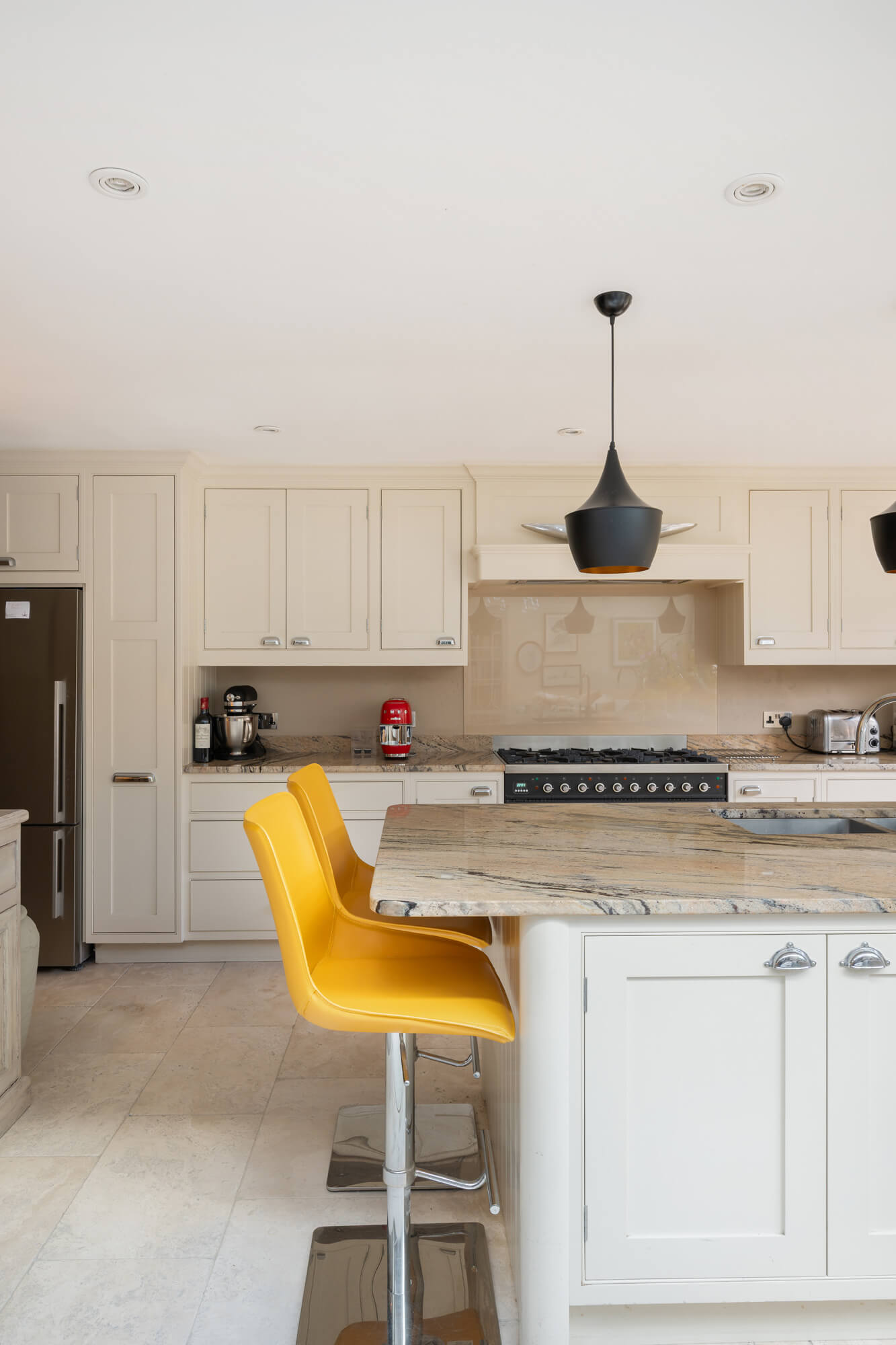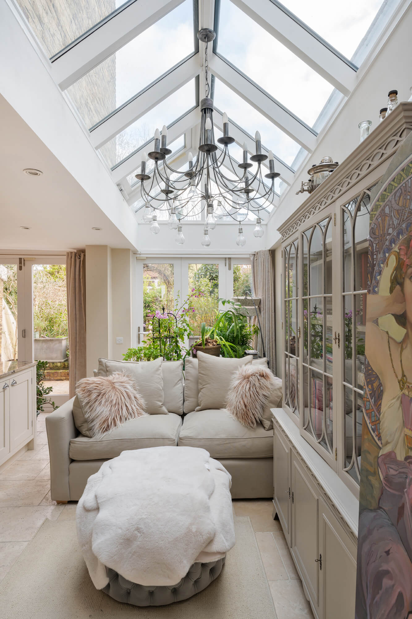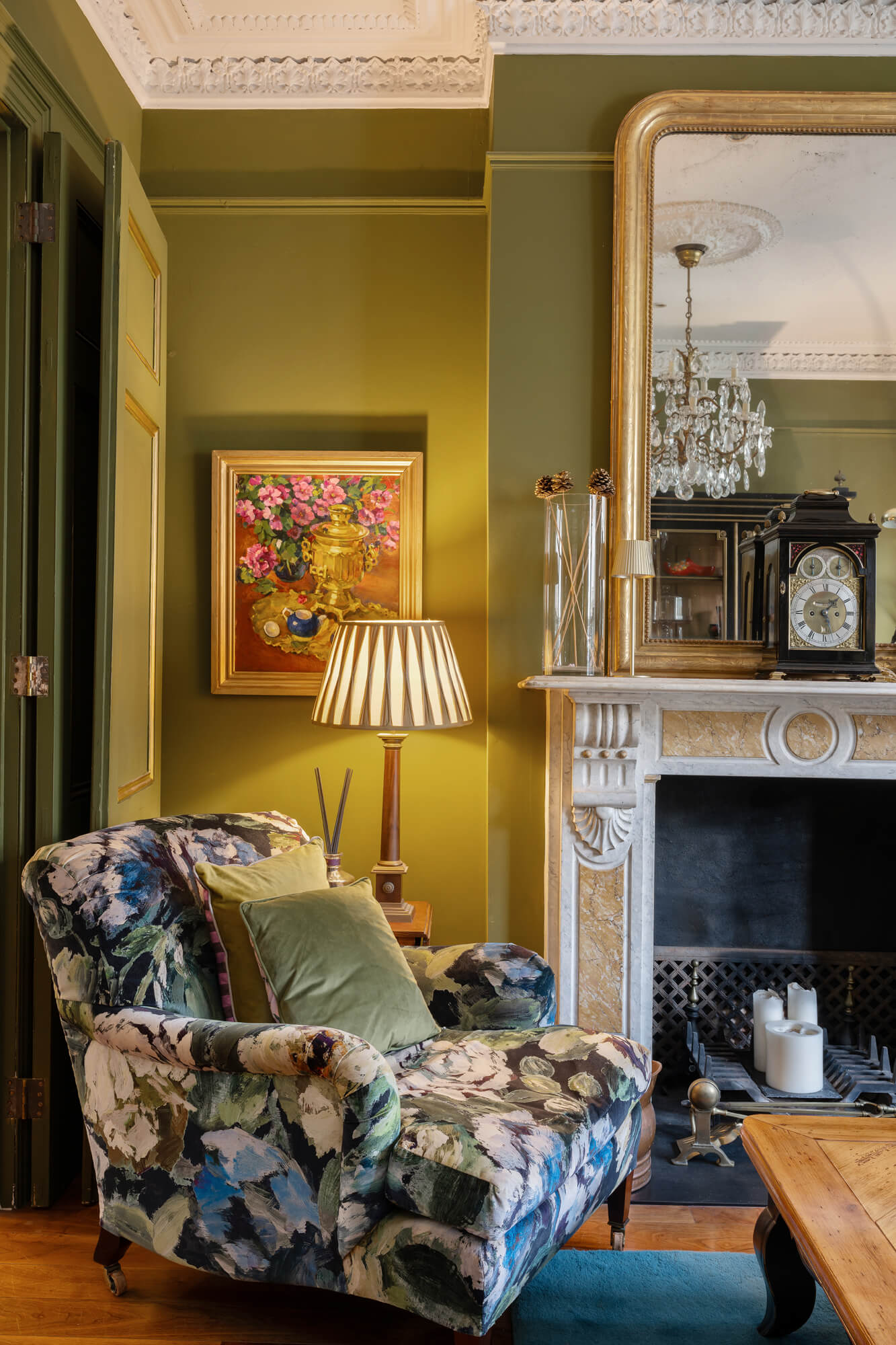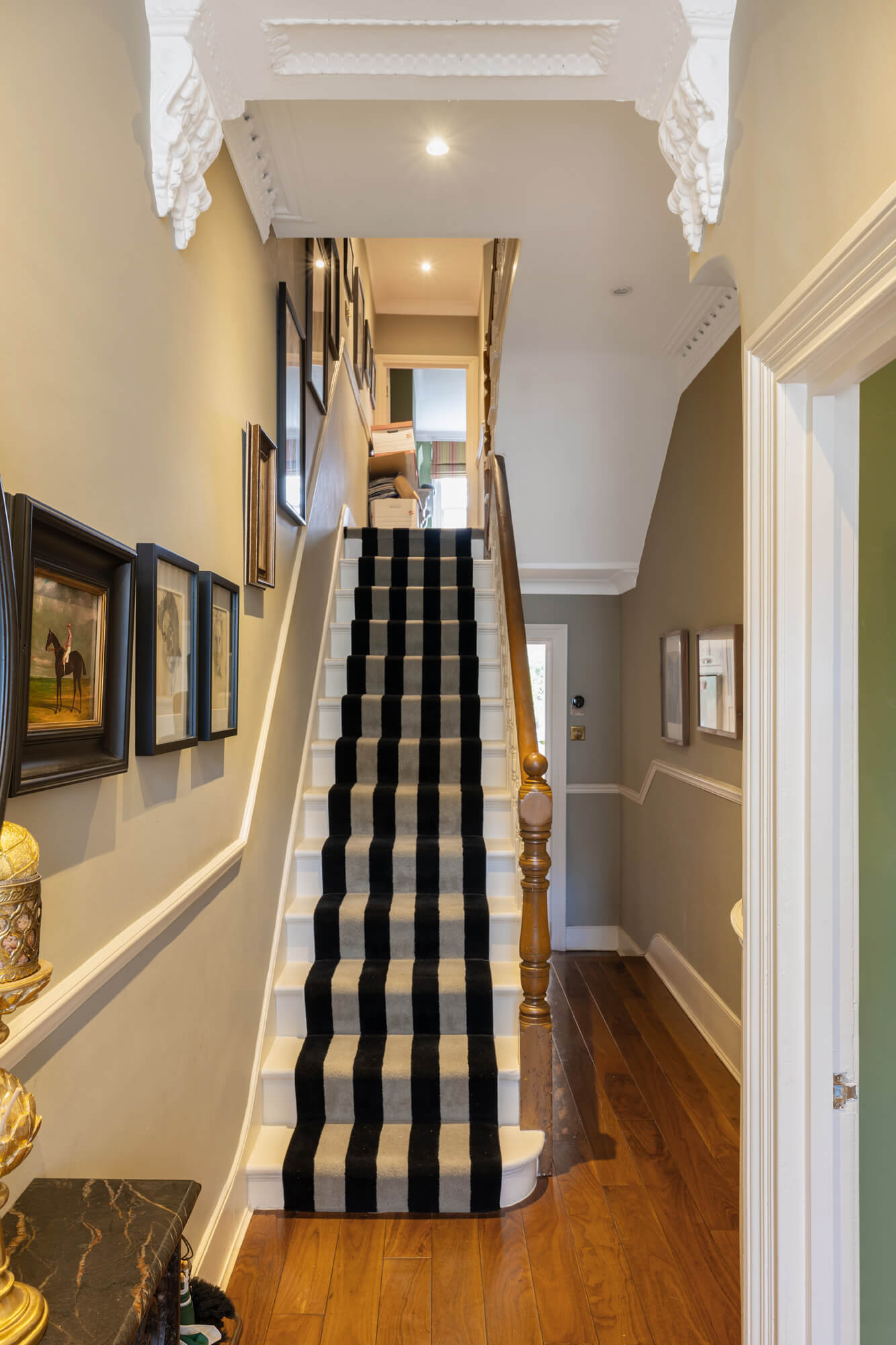 Arranged over four floors, this elegant house has been skillfully remodelled to balance period character with contemporary family living. The ground floor opens with a generous bay-fronted double reception room with dividing doors and matching pair of period fireplaces. This in turn leads through to the full width kitchen/breakfast room with bespoke fitted units, premium quality appliances, a statement central island and glazed doors opening directly onto the garden, creating a wonderful sense of light and connection to the outdoors. A guest cloakroom/utility completes this level, while a substantial cellar provides useful storage.