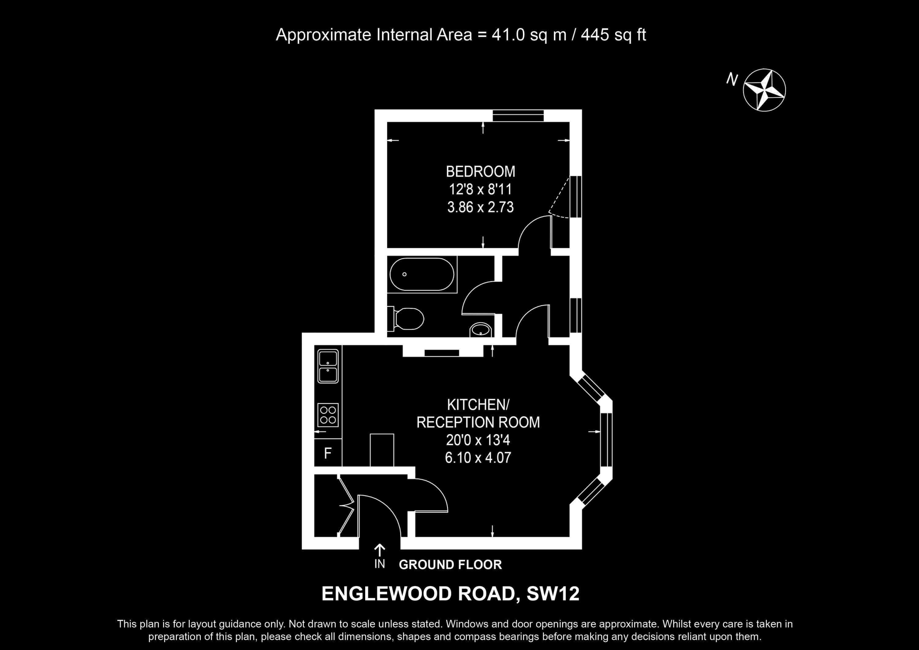 Internal Area (approx.): 41 sqm / 445 sq ft