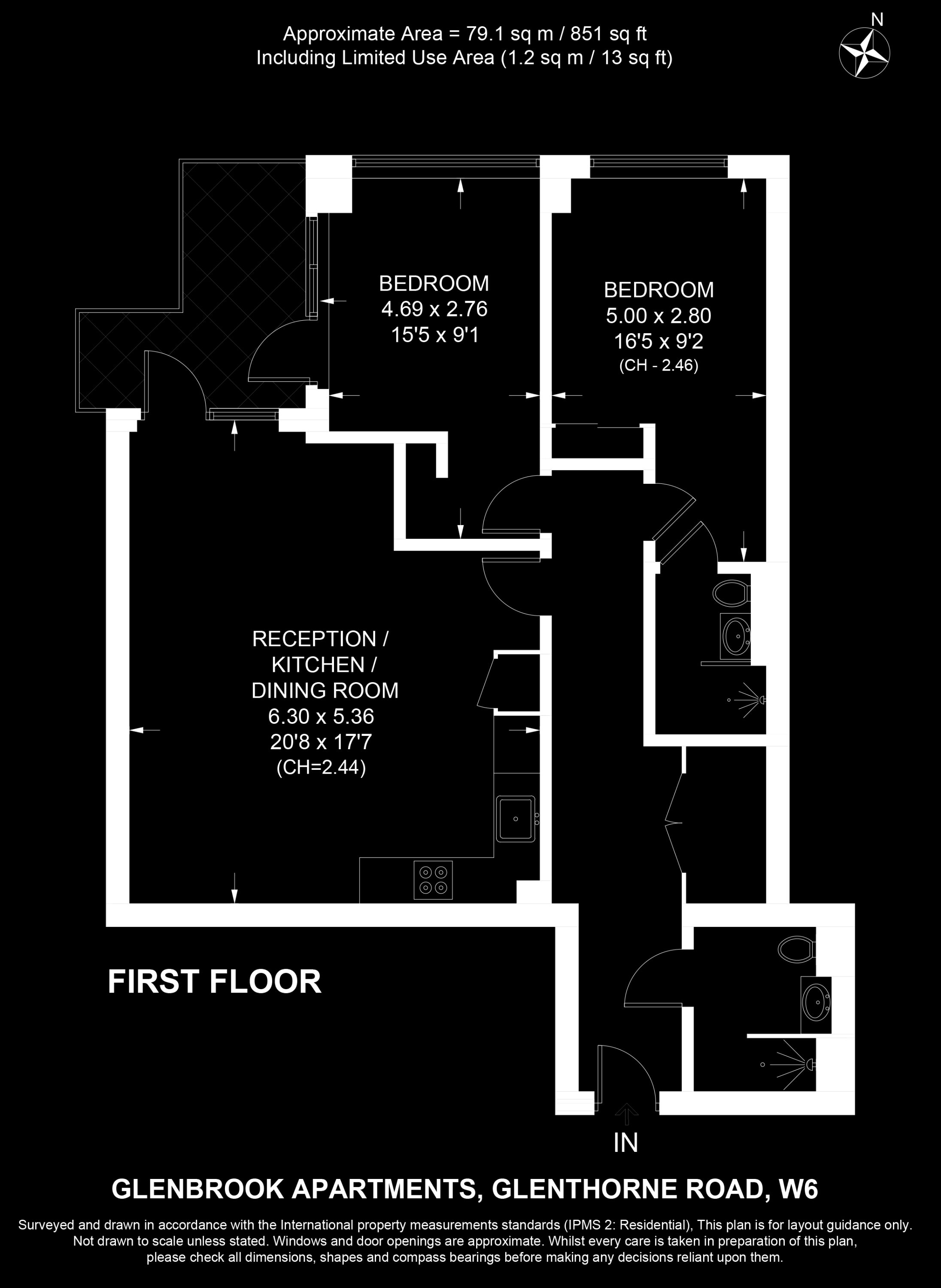 Internal Area (approx.): 79 sqm / 851 sq ft