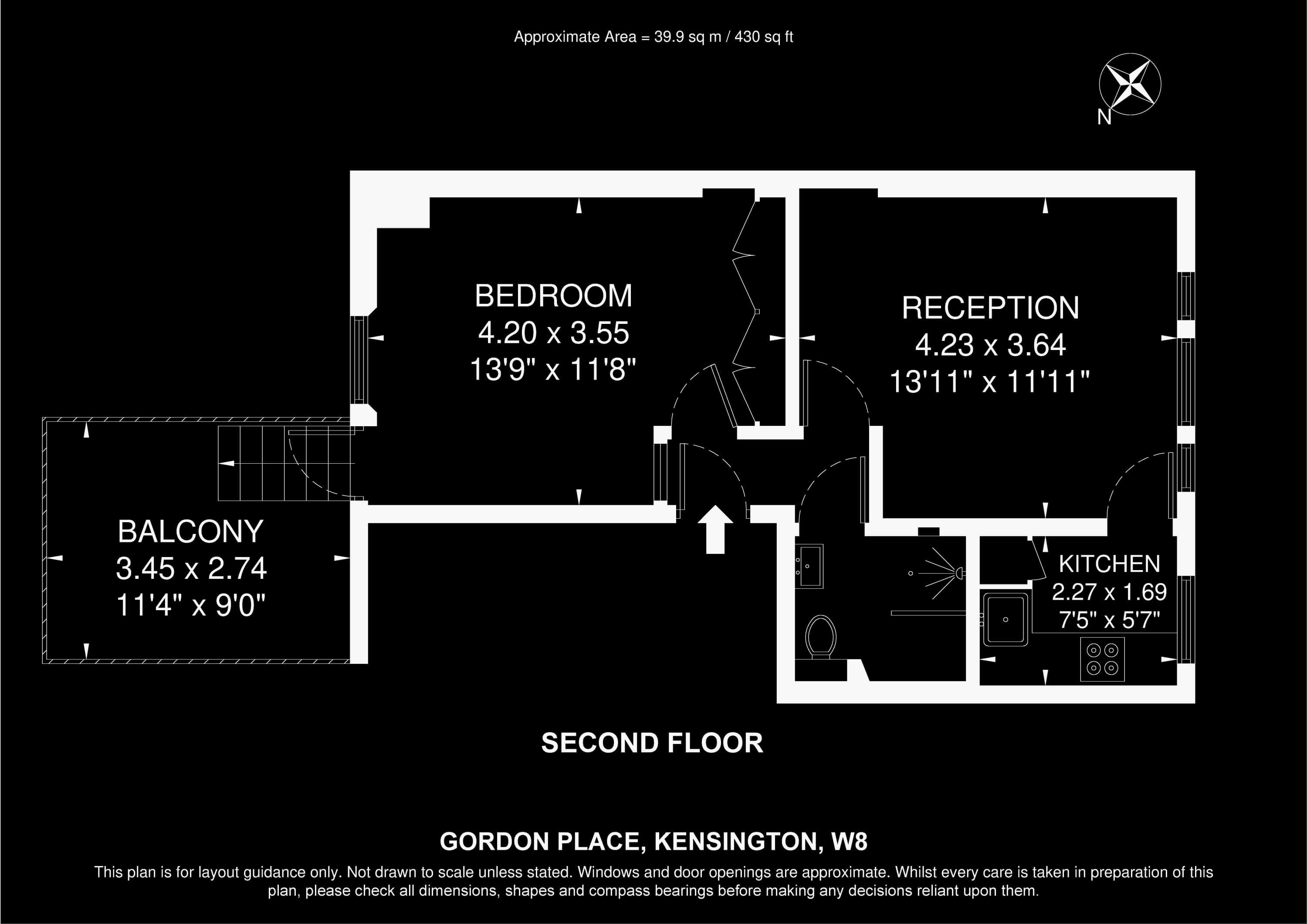 Internal Area (approx.): 40 sqm / 430 sq ft