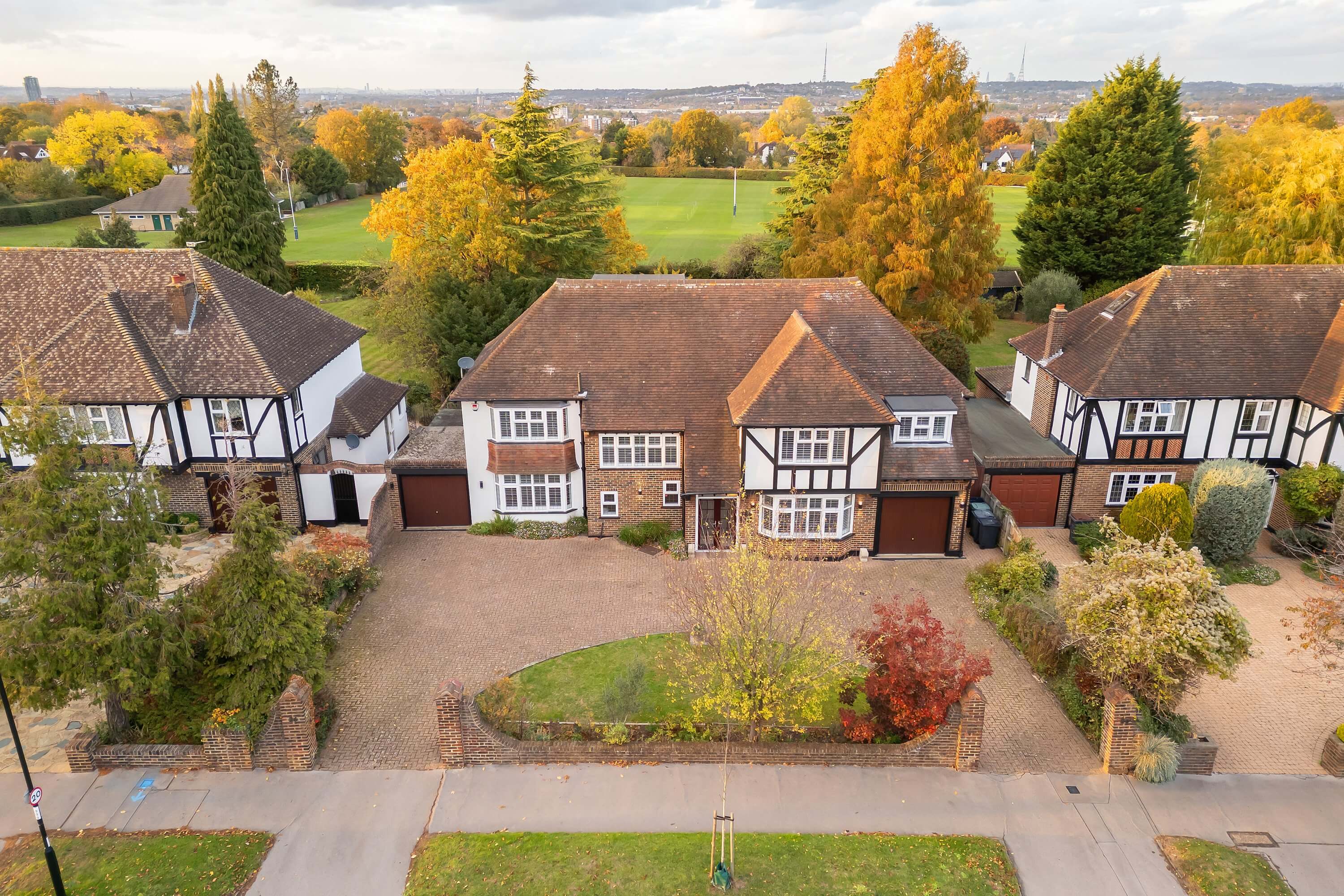 A substantial double fronted, five double bedroom family residence which measures 3,370 square feet, and yet has huge potential to be further extended as required, given its 130′ x 70′ level rear garden. Enjoying far reaching views towards the City it backs directly on to playing fields and therefore enjoys a magnificent ‘borrowed landscape’.