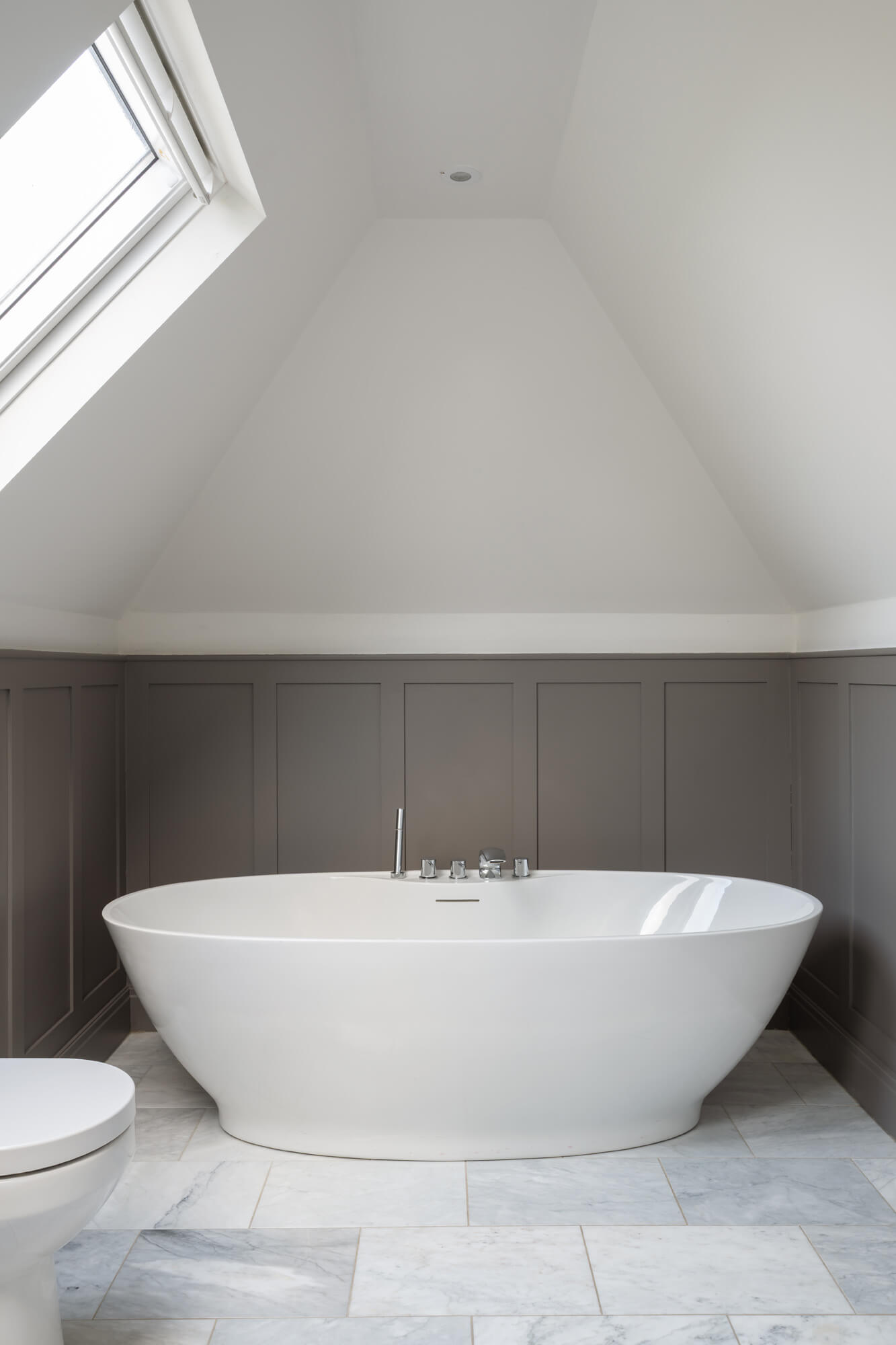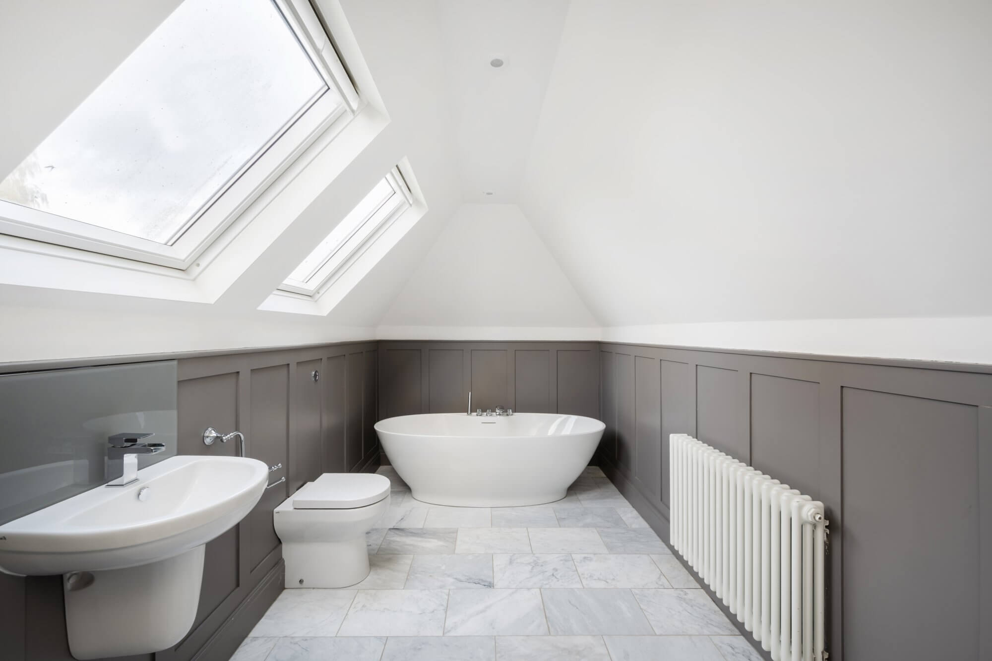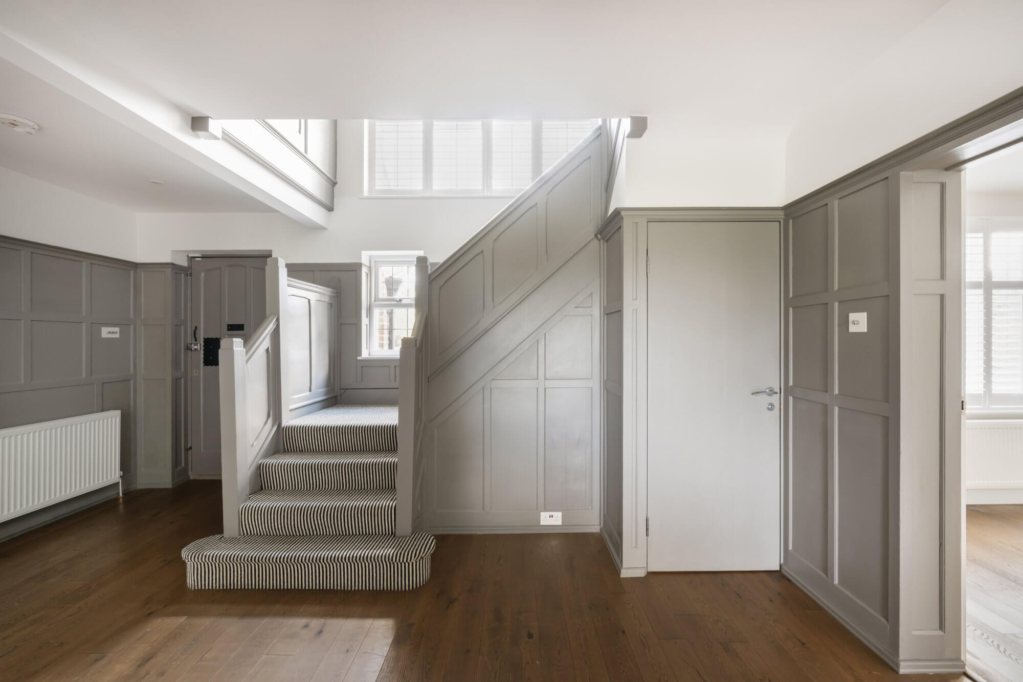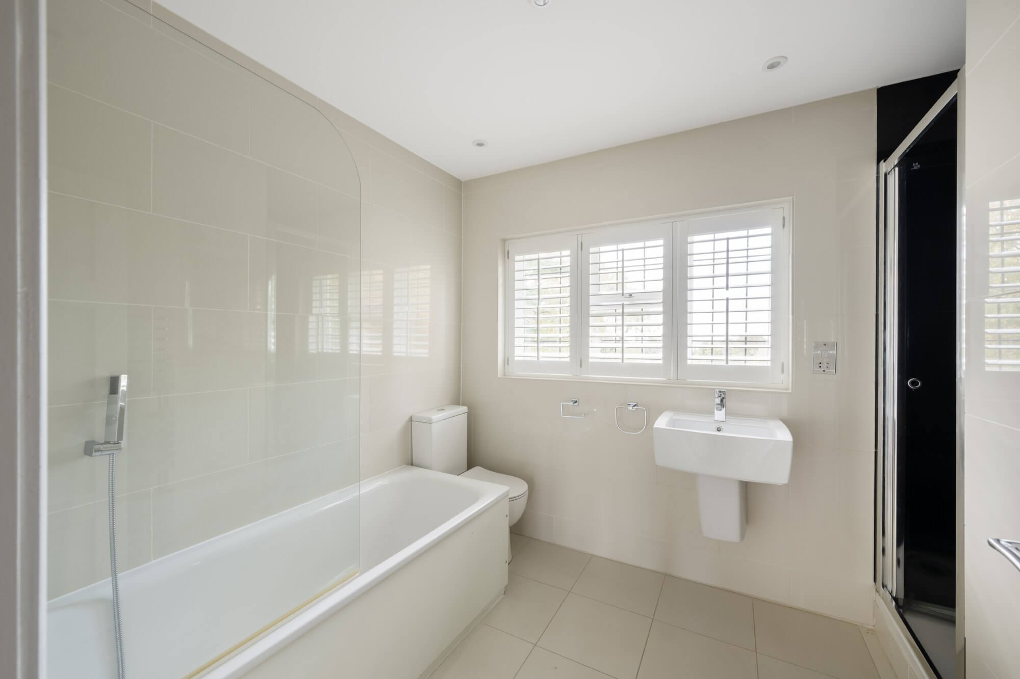 A substantial double fronted, five double bedroom family residence which measures 3,370 square feet, and yet has huge potential to be further extended as required, given its 130′ x 70′ level rear garden. Enjoying far reaching views towards the City it backs directly on to playing fields and therefore enjoys a magnificent ‘borrowed landscape’.