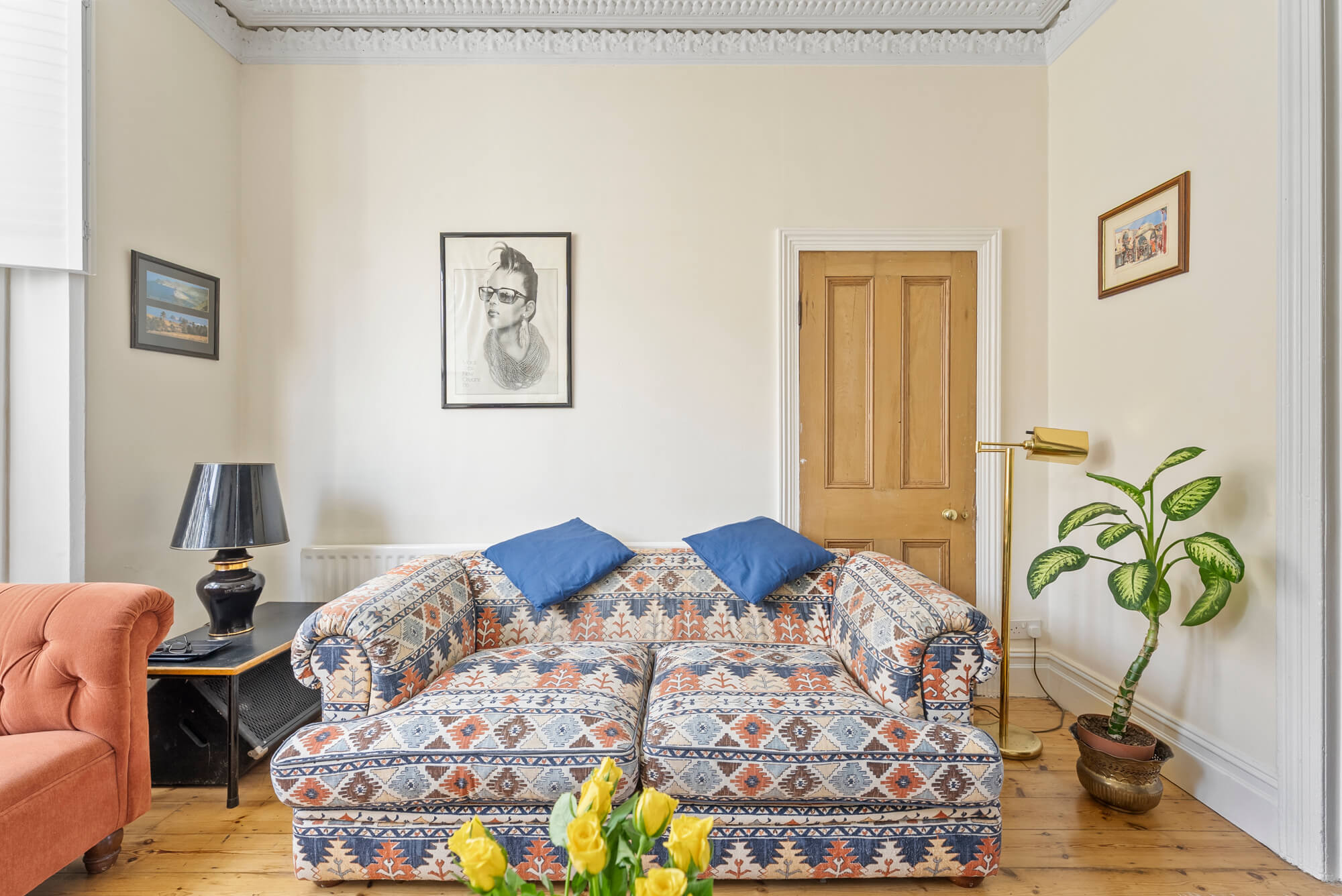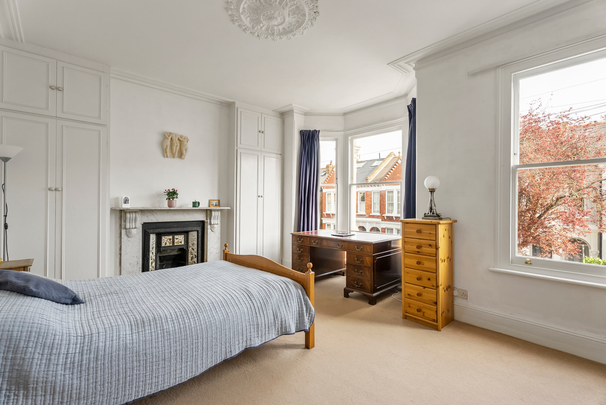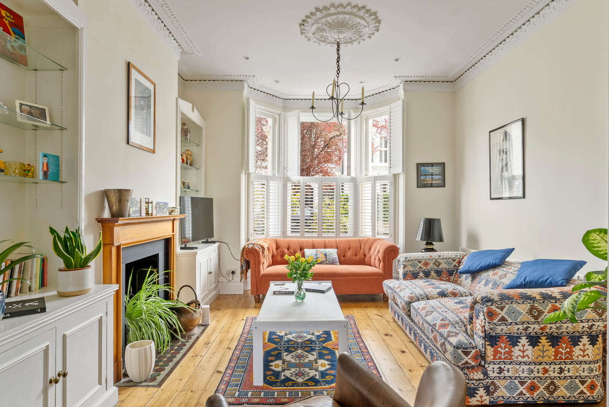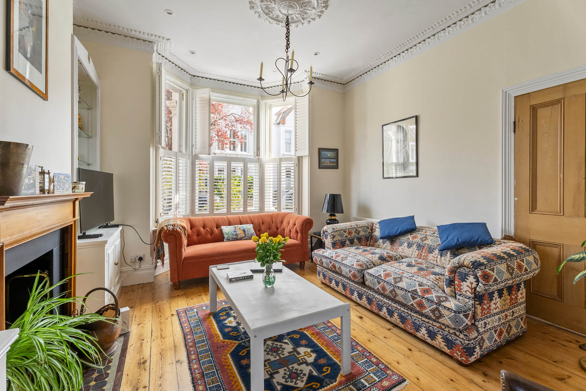 Arranged over four floors, the light and spacious accommodation offers excellent entertaining space with a wide double reception room, with attractive splay bay window to the front. The room has exposed wooden floors and the most exquisite ornate cornicing to the ceiling.