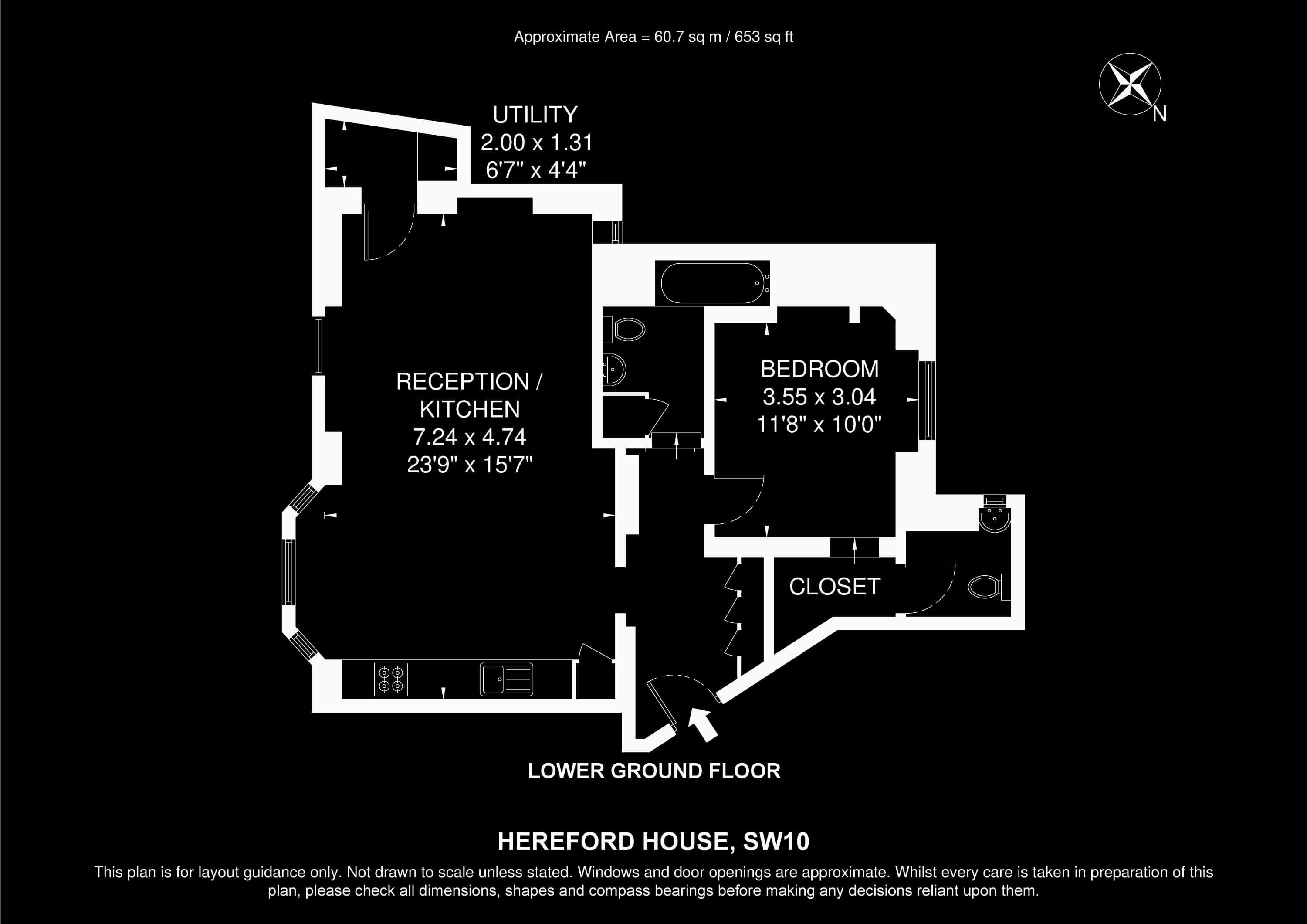 Internal Area (approx.): 61 sqm / 653 sq ft