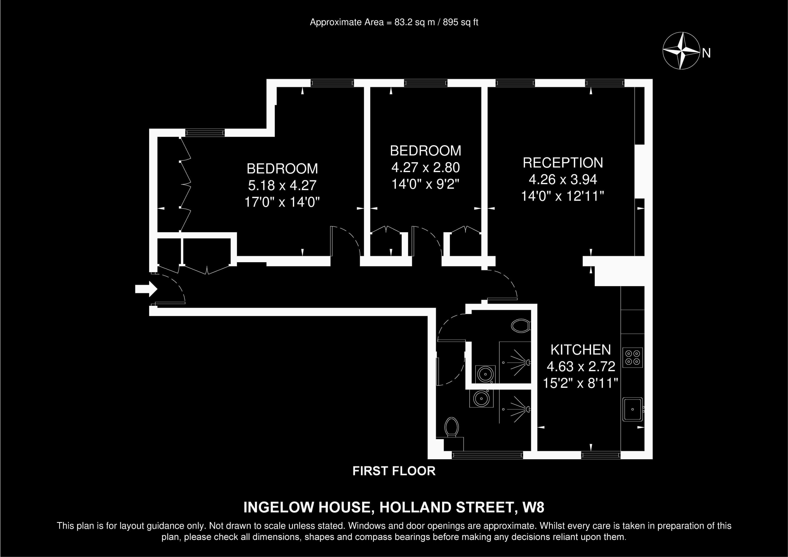 Internal Area (approx.): 83 sqm / 889 sq ft