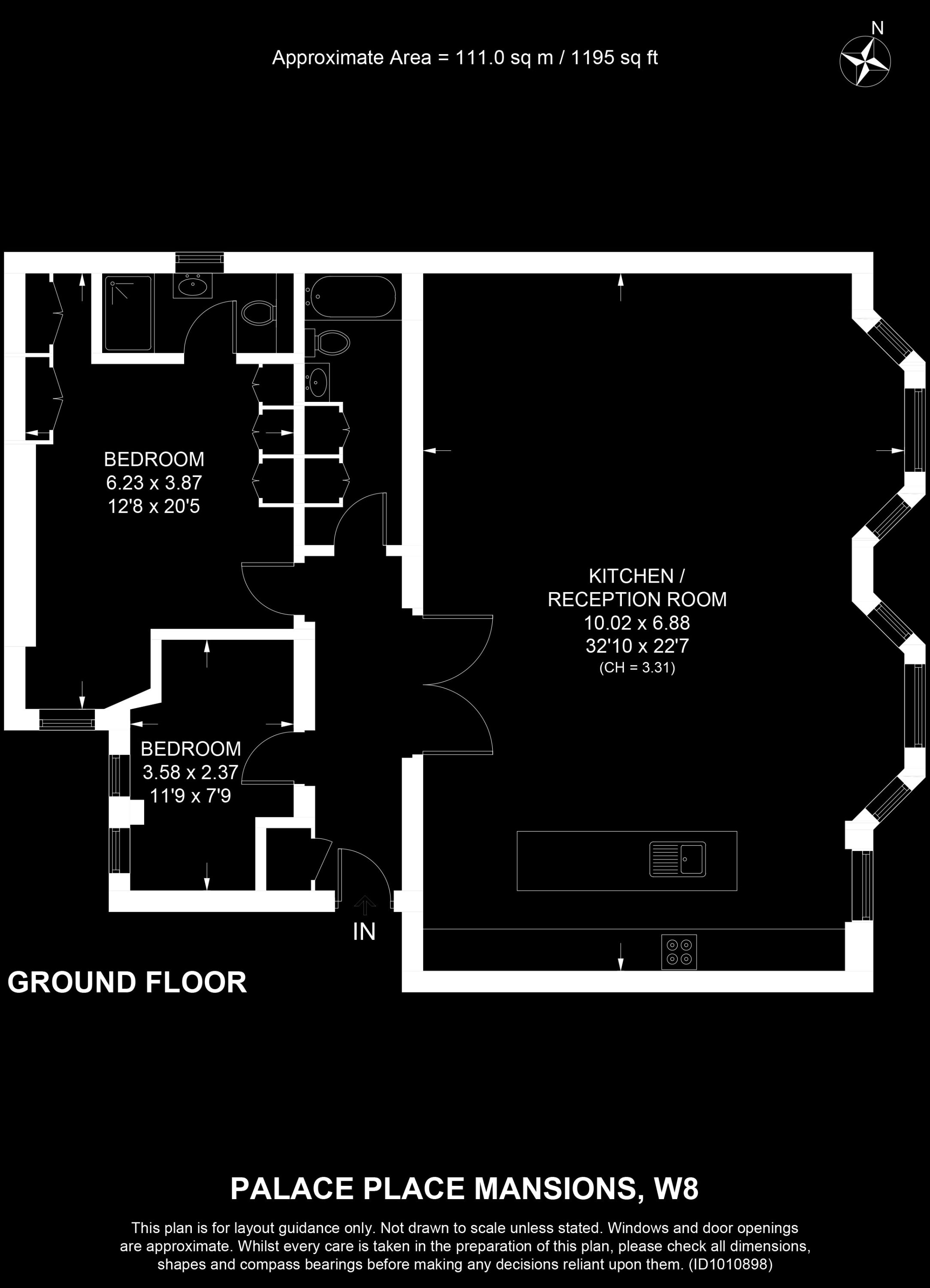 Internal Area (approx.): 111 sqm / 1,195 sq ft