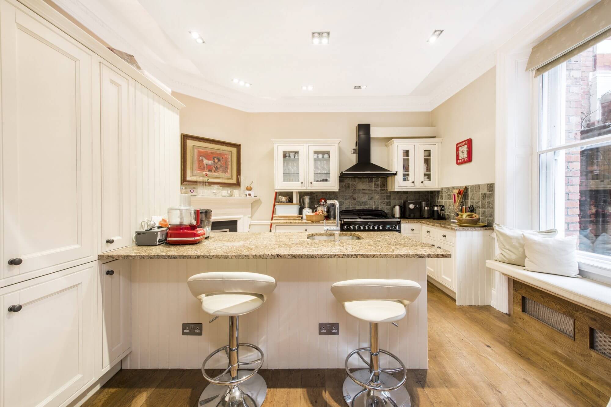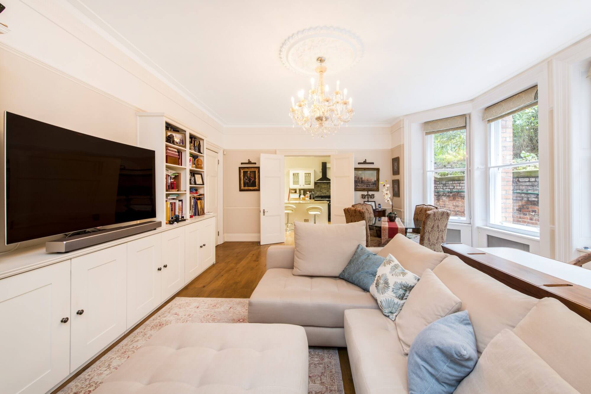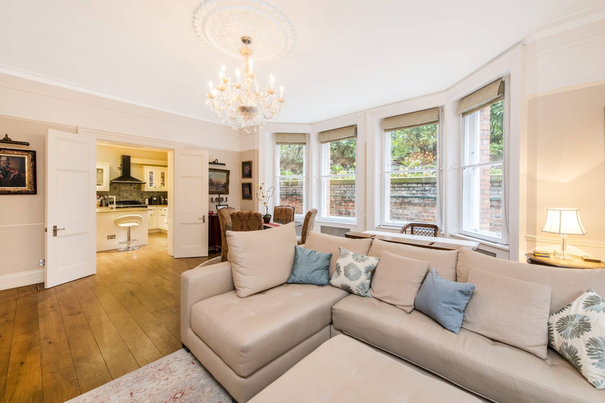 This beautifully refurbished apartment, strikes the perfect balance between entertaining and bedroom space. The owners have invested in hard wood flooring, double glazing and high quality materials to create a peaceful and luxurious space. The accommodation comprises of an entrance hall leading to a large reception room with fantastic storage units. There is a semi open plan, fully fitted kitchen with centre island. Both bedrooms accommodate double beds, with the master suite encompassing a walk in wardrobe and luxurious en suite bathroom. There is a further stylish shower room / guest cloakroom and underfloor heating.