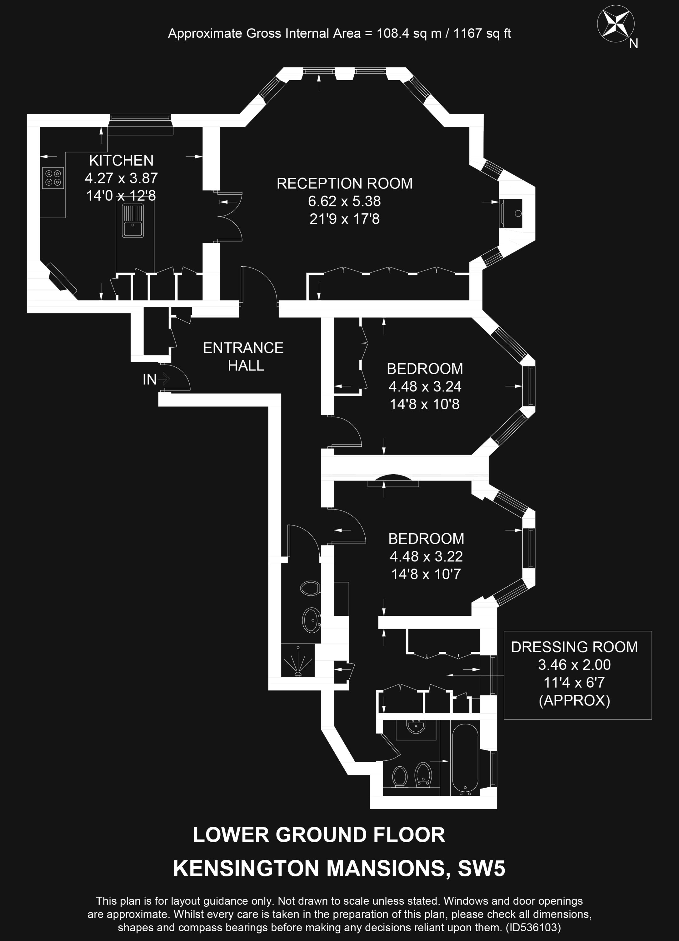 Internal Area (approx.): 108 sqm / 1,167 sq ft