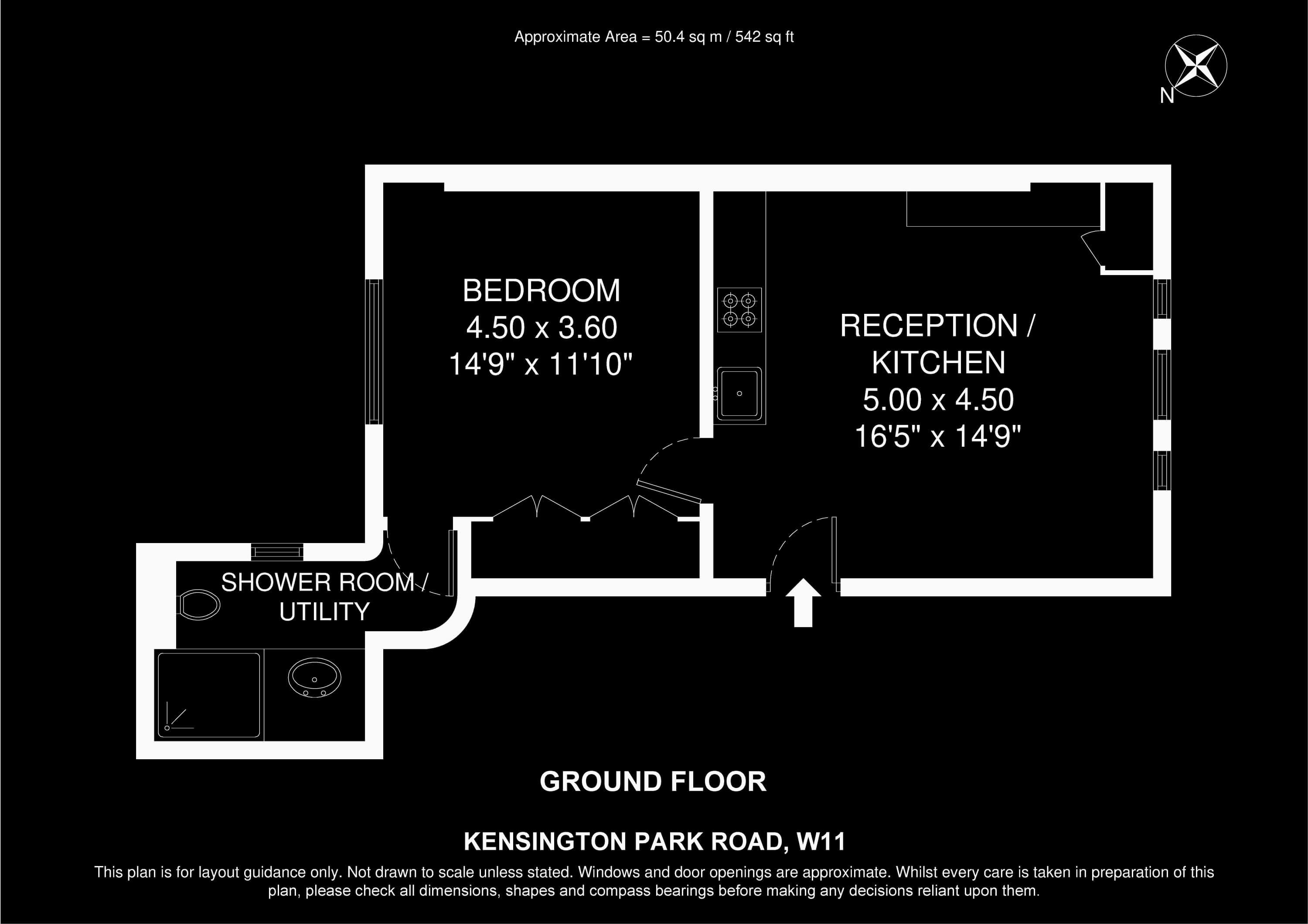Internal Area (approx.): 50 sqm / 542 sq ft