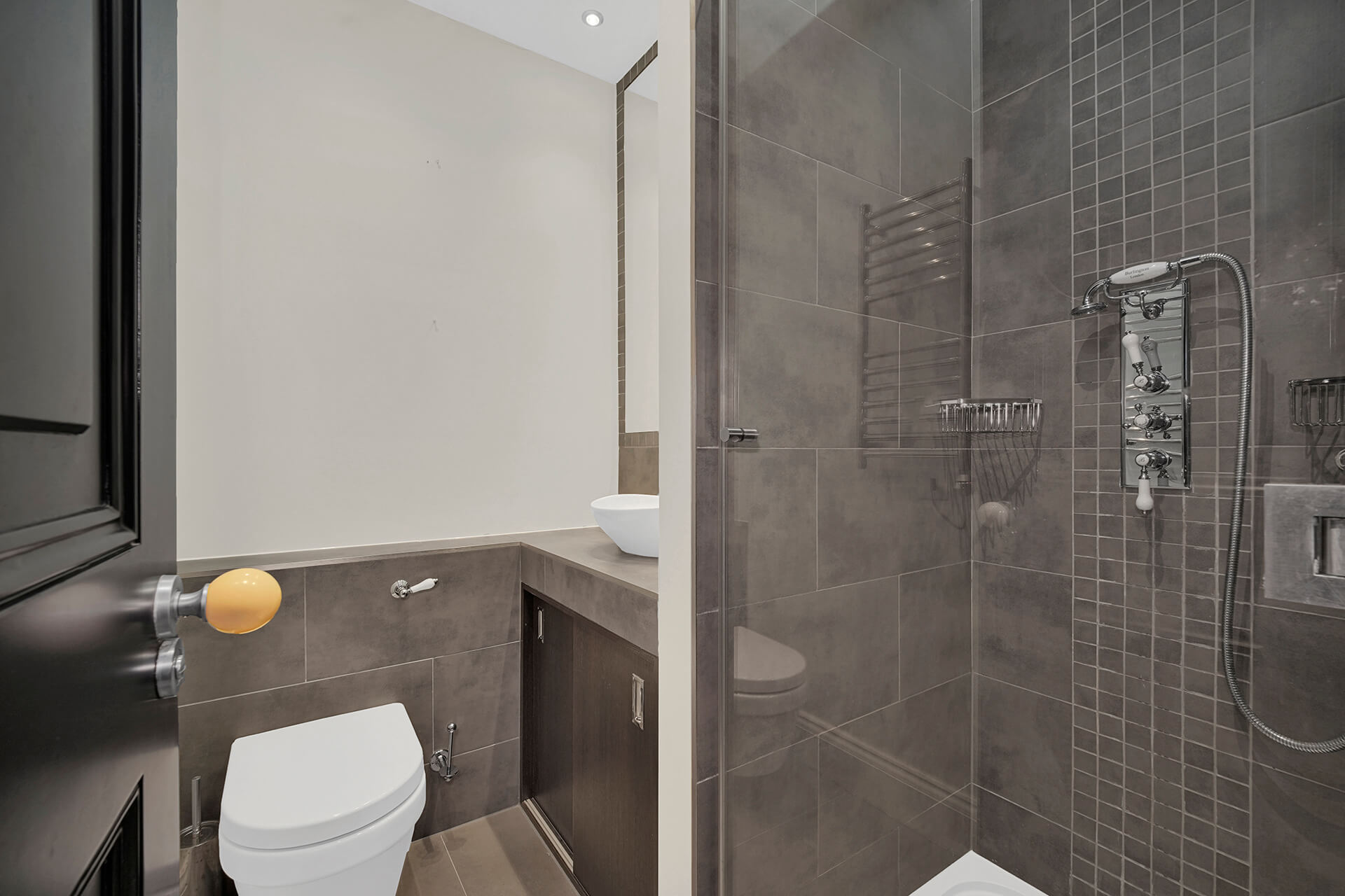Thoughtful upgraded storage has been incorporated throughout the apartment, making good use of space.