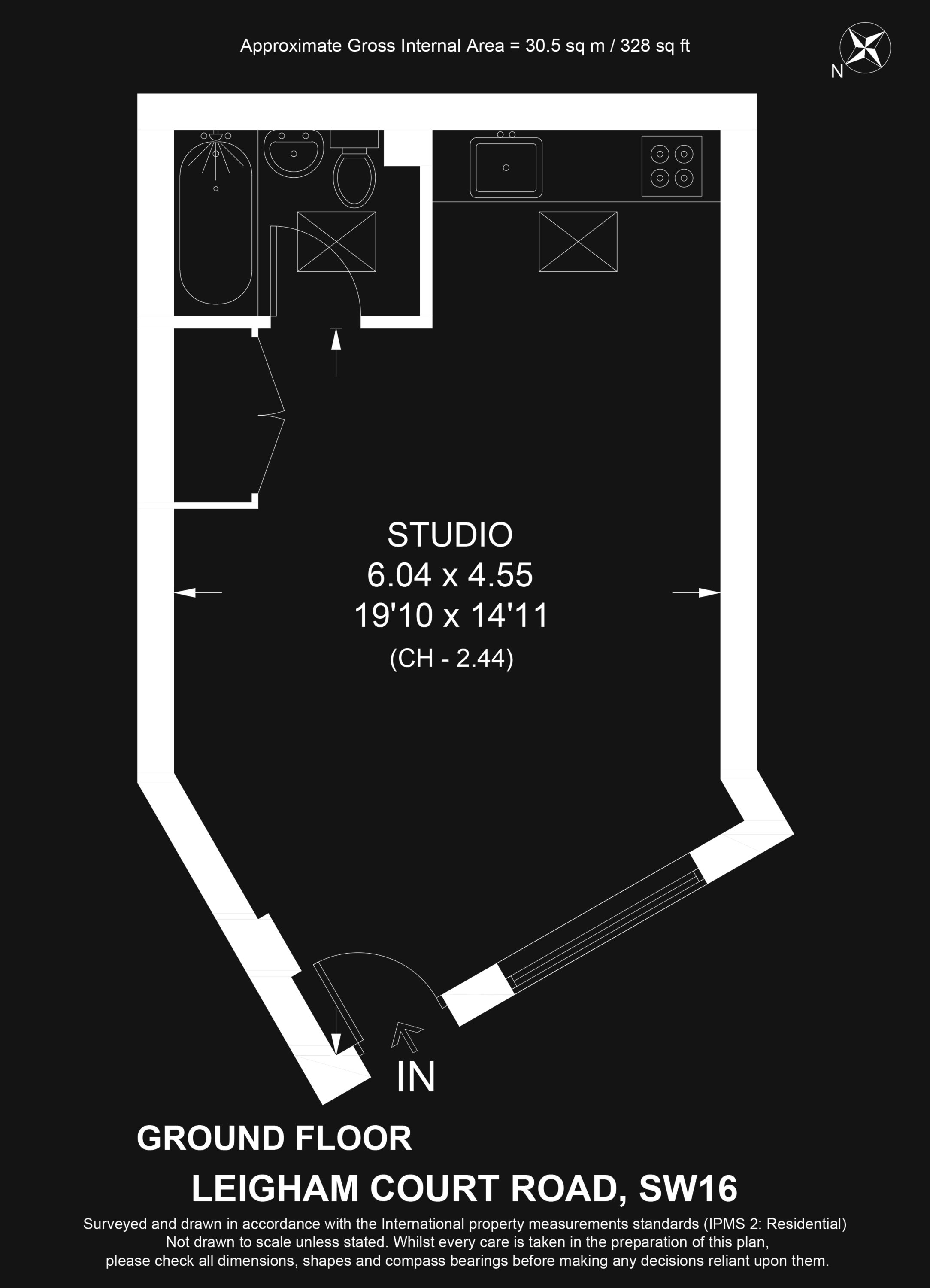 Internal Area (approx.): 30 sqm / 328 sq ft