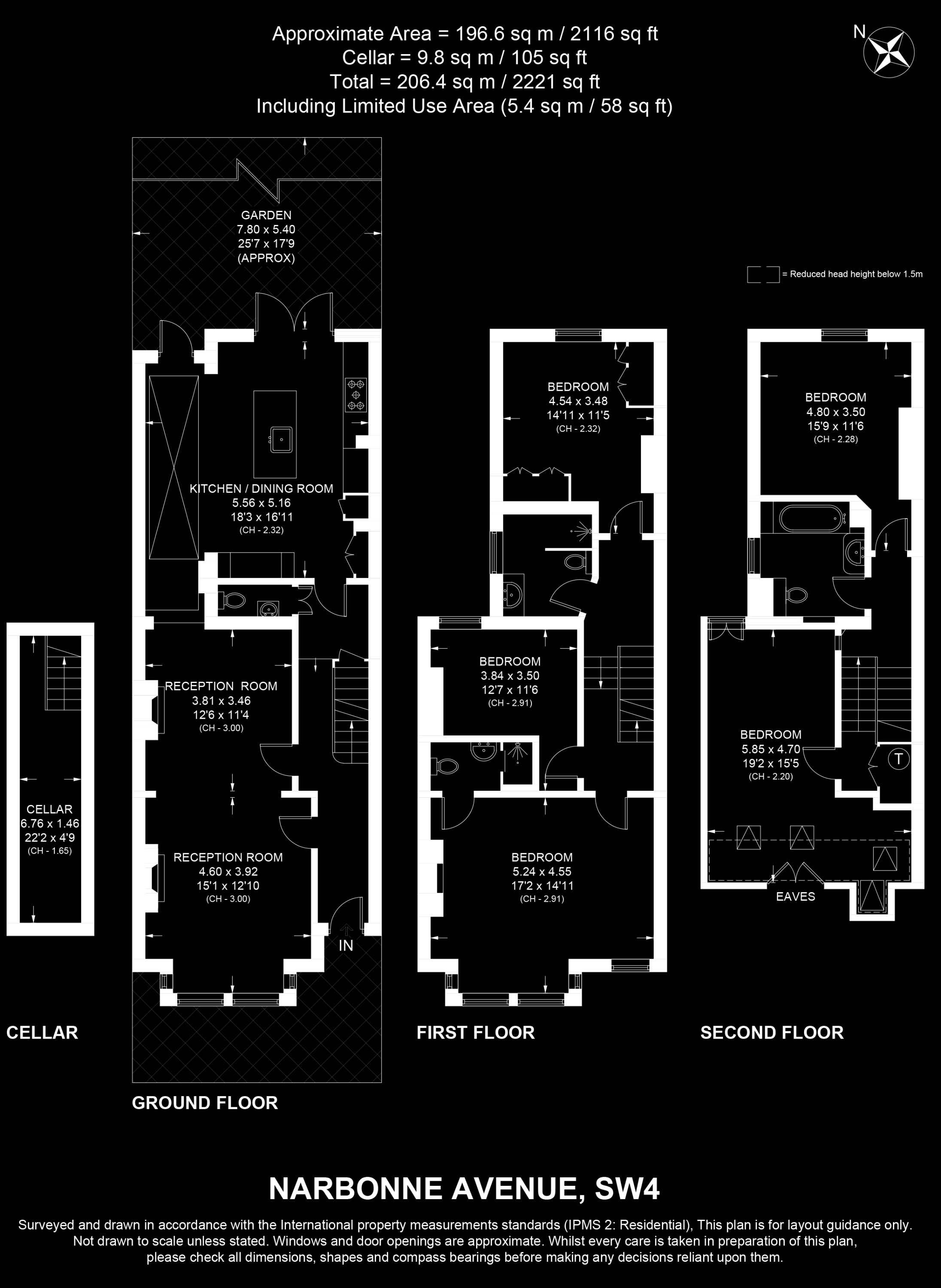 Internal Area (approx.): 206 sqm / 2,221 sq ft