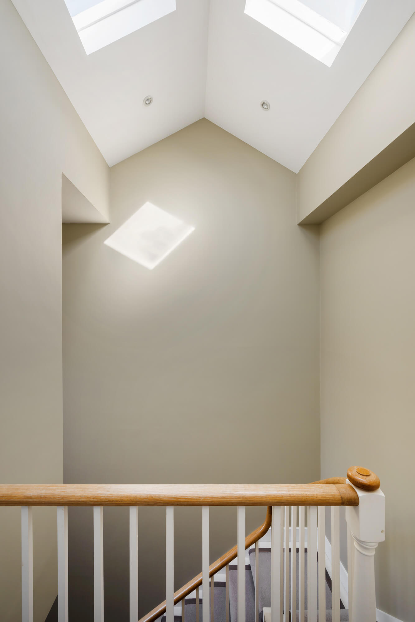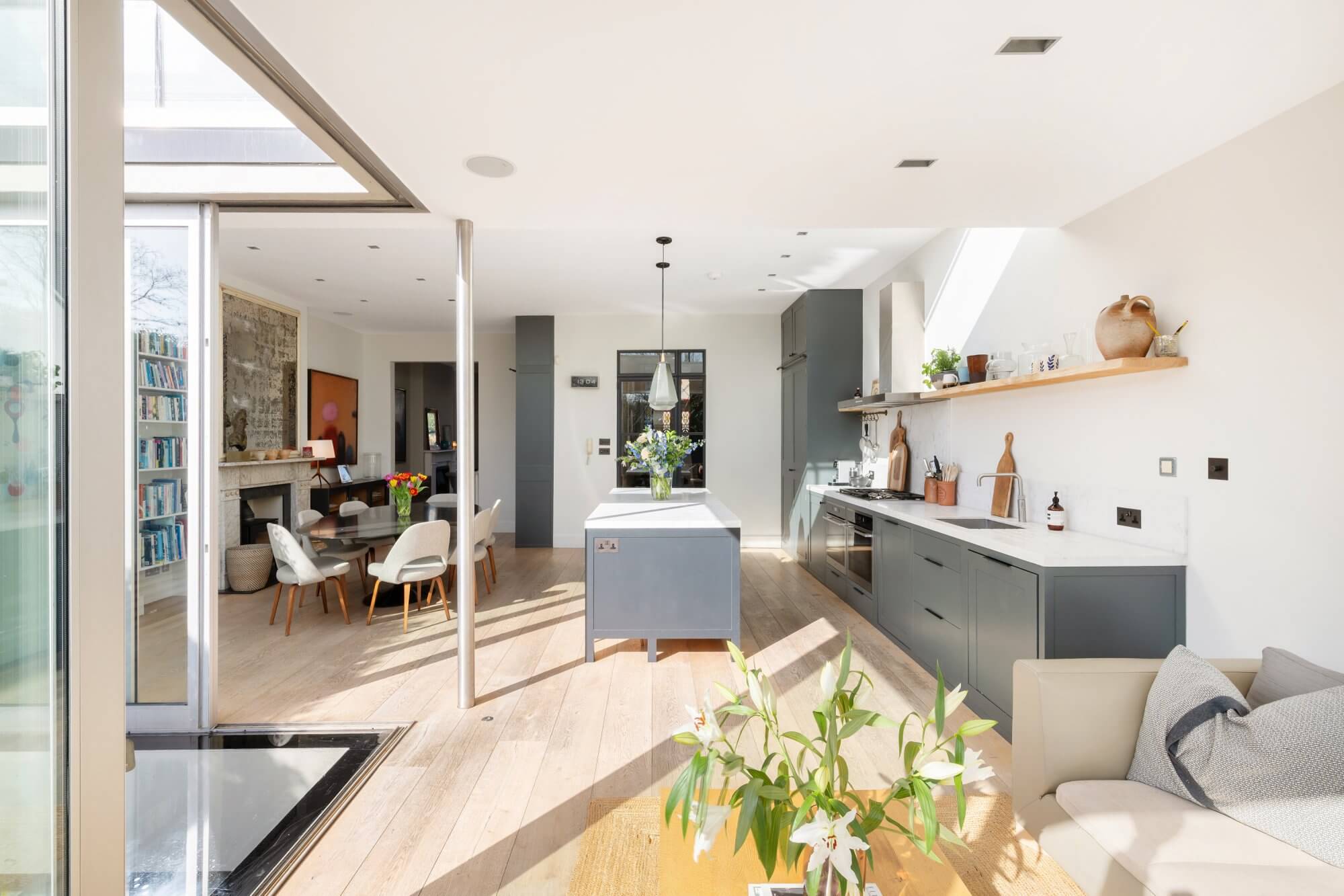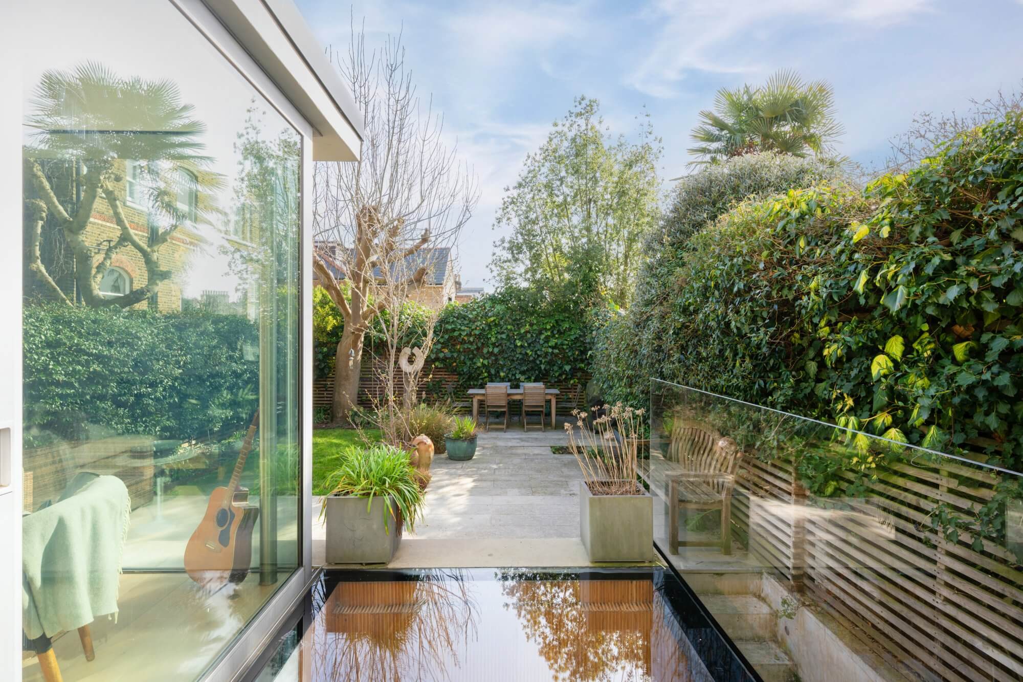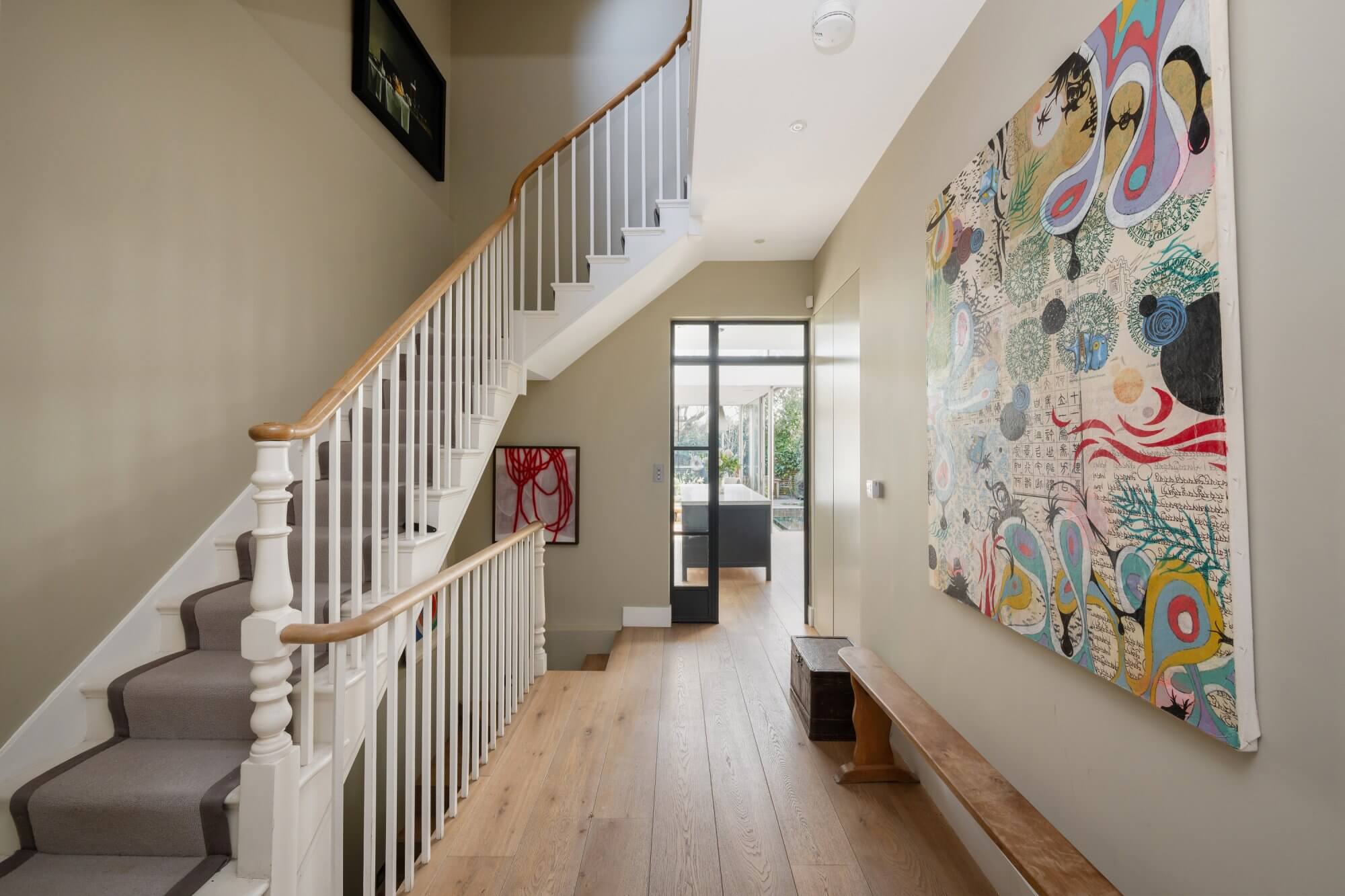 The south facing garden is a defining feature, private and well proportioned, with the rear extension opening directly onto it and drawing in light through the afternoon and evening. The upper floors enjoy a ‘borrowed landscape’ with views over a great many rear gardens behind.