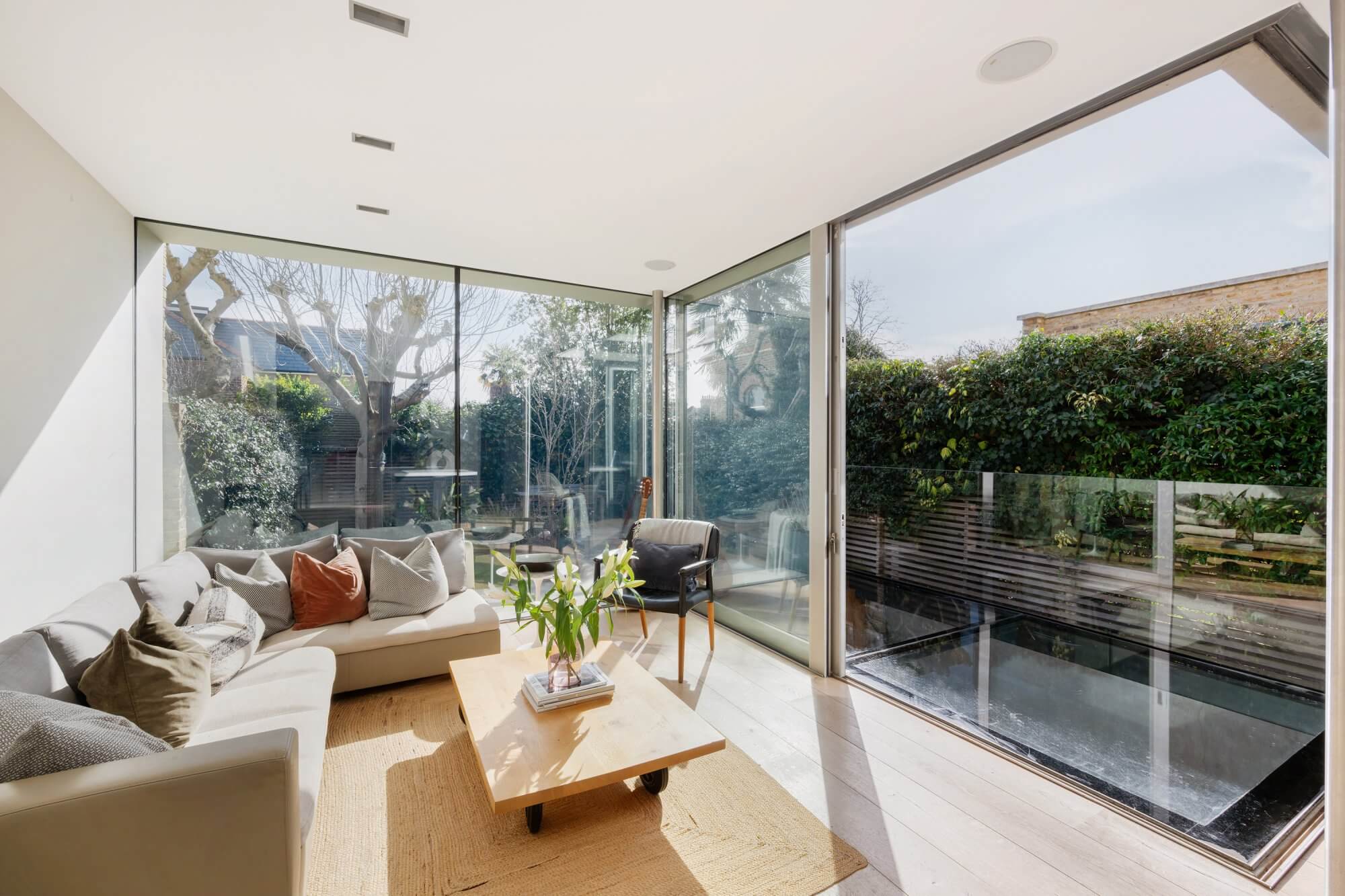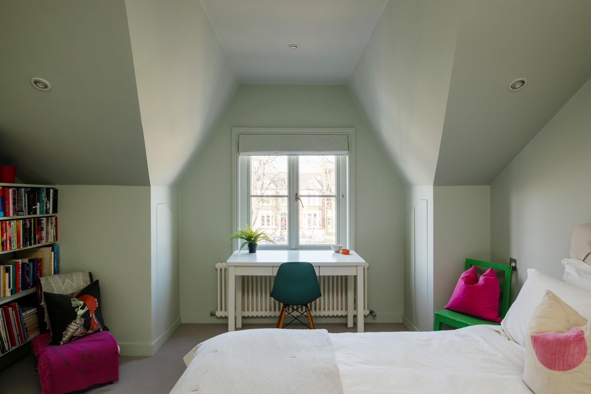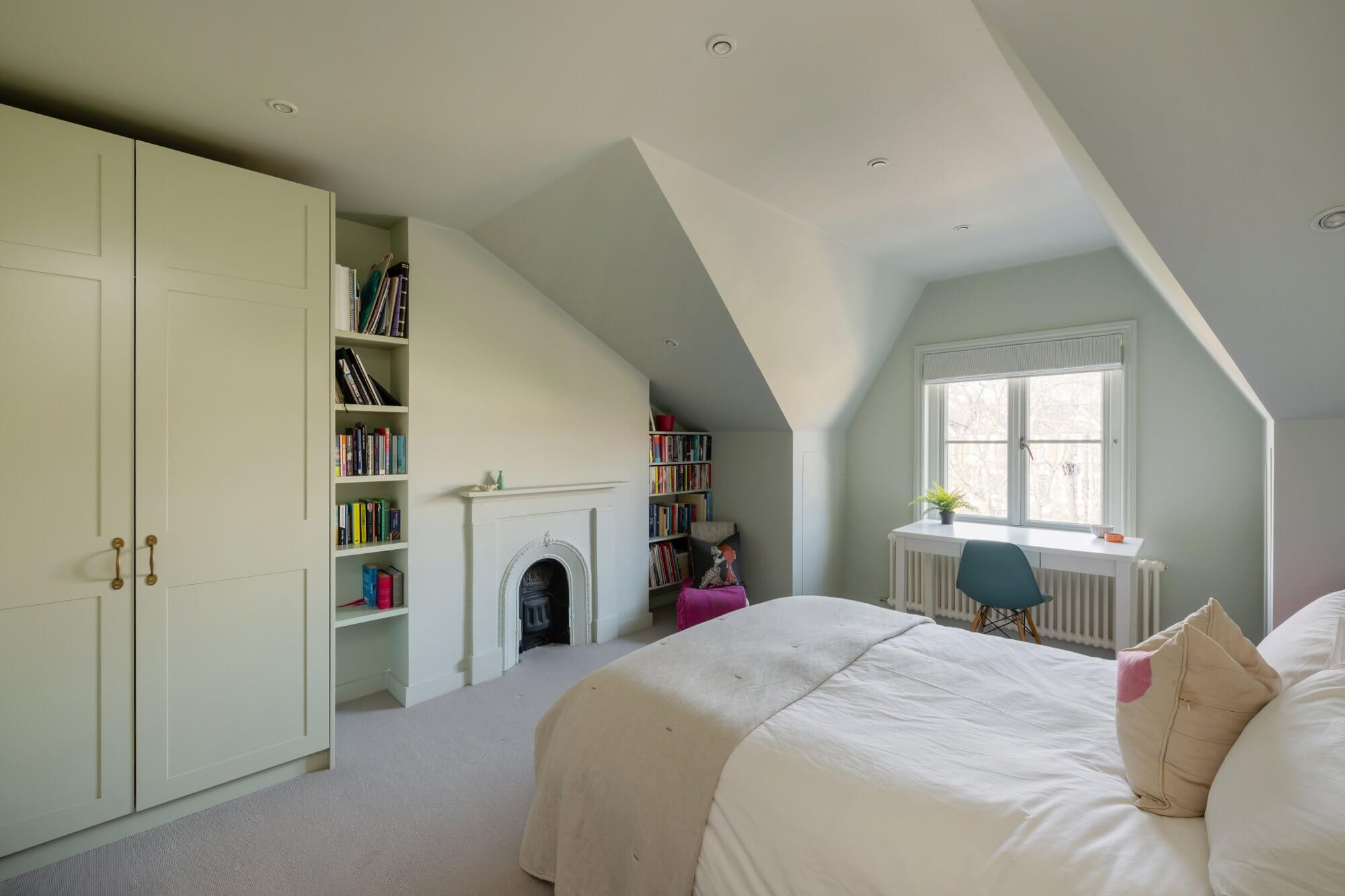 The south facing garden is a defining feature, private and well proportioned, with the rear extension opening directly onto it and drawing in light through the afternoon and evening. The upper floors enjoy a ‘borrowed landscape’ with views over a great many rear gardens behind.