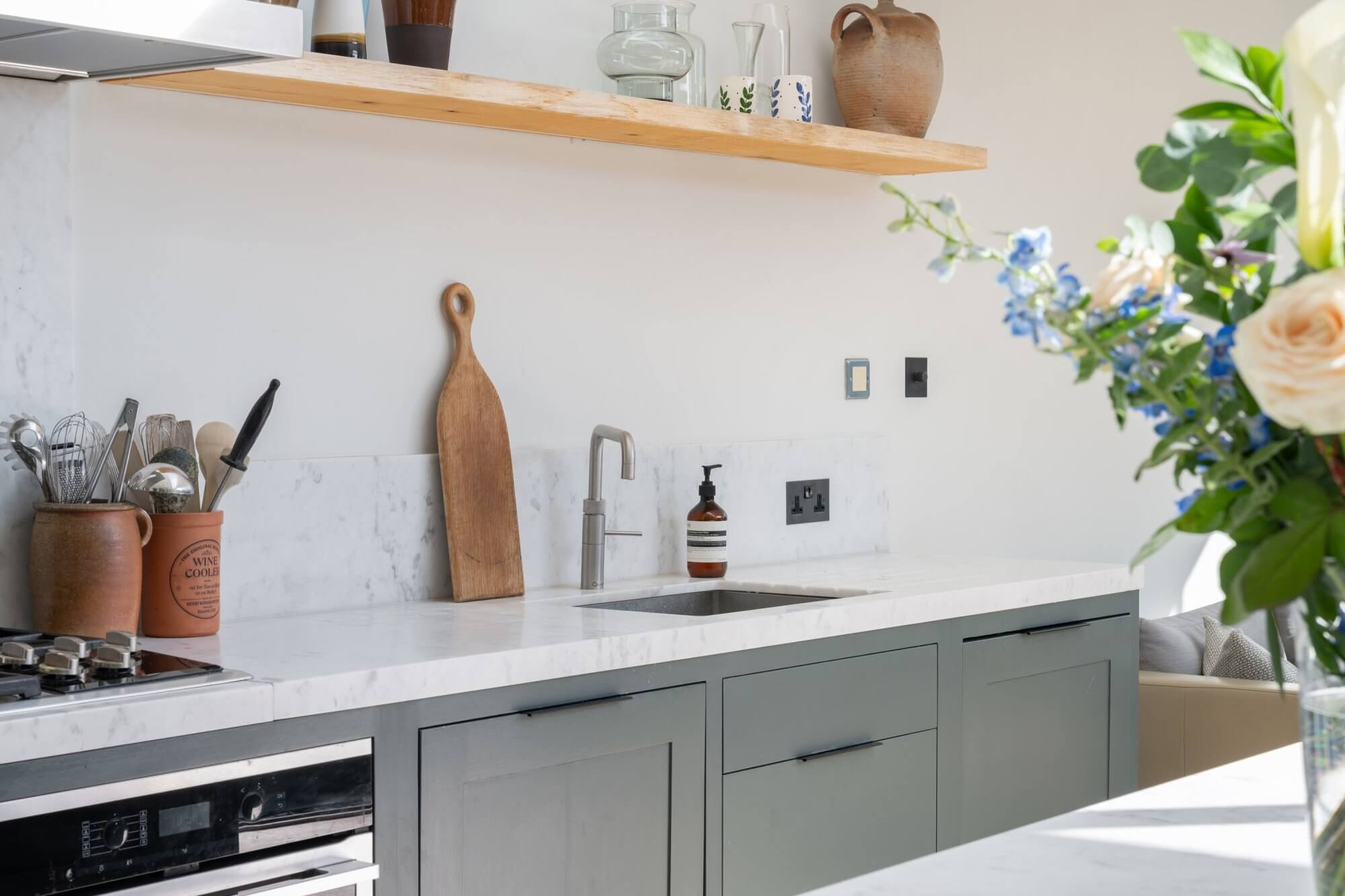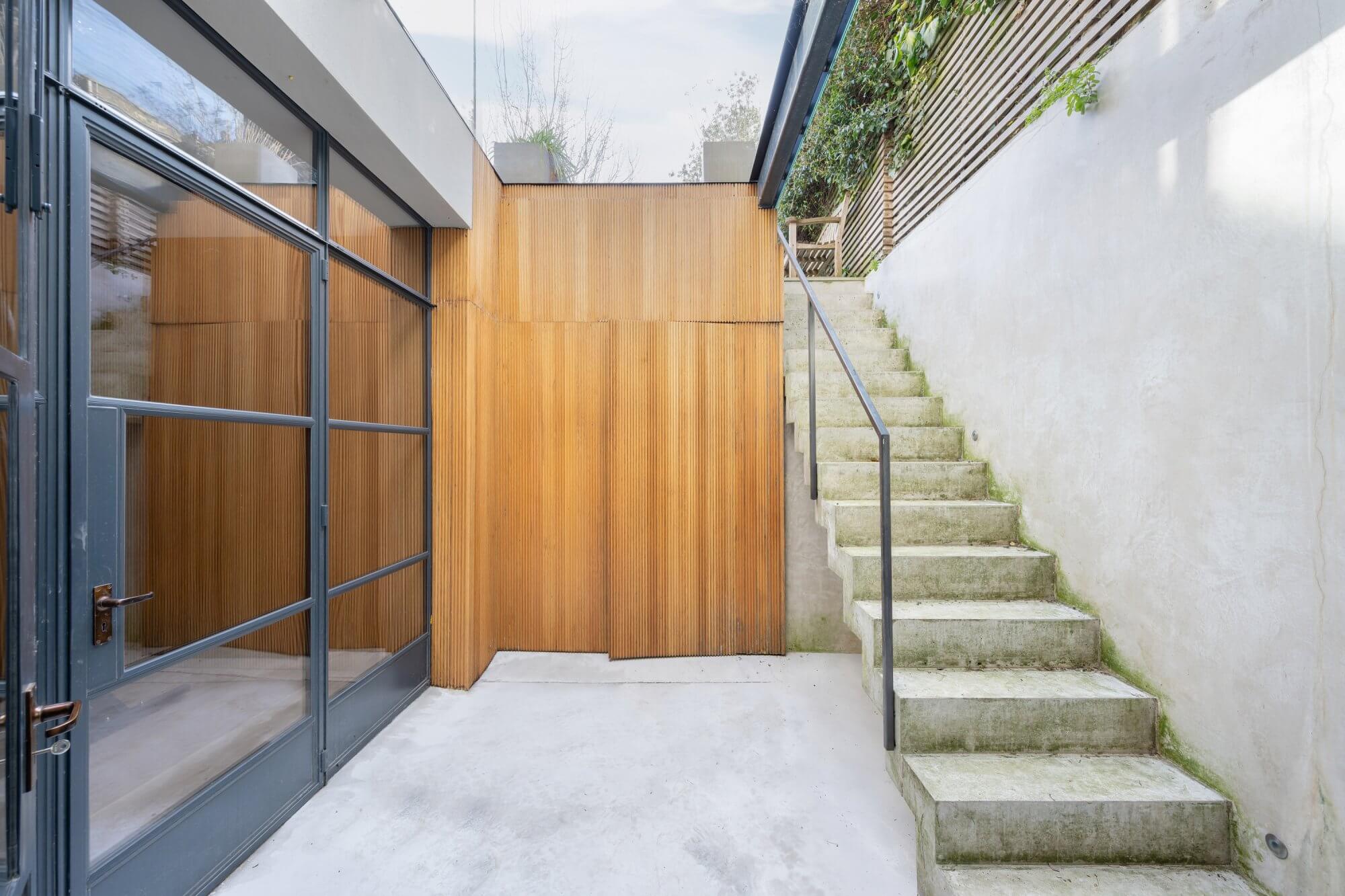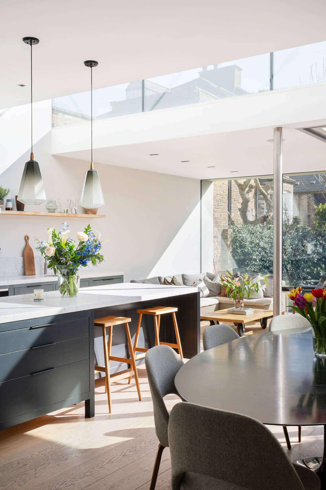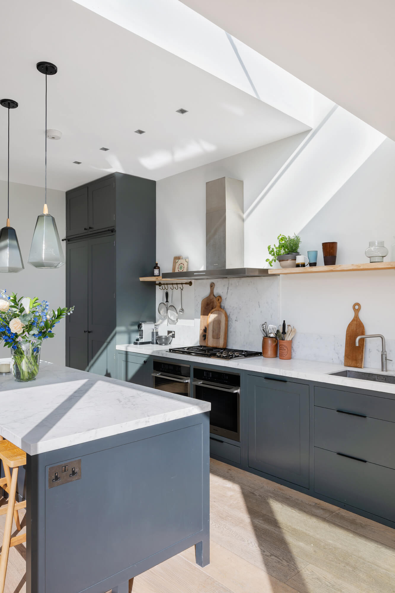 The south facing garden is a defining feature, private and well proportioned, with the rear extension opening directly onto it and drawing in light through the afternoon and evening. The upper floors enjoy a ‘borrowed landscape’ with views over a great many rear gardens behind.