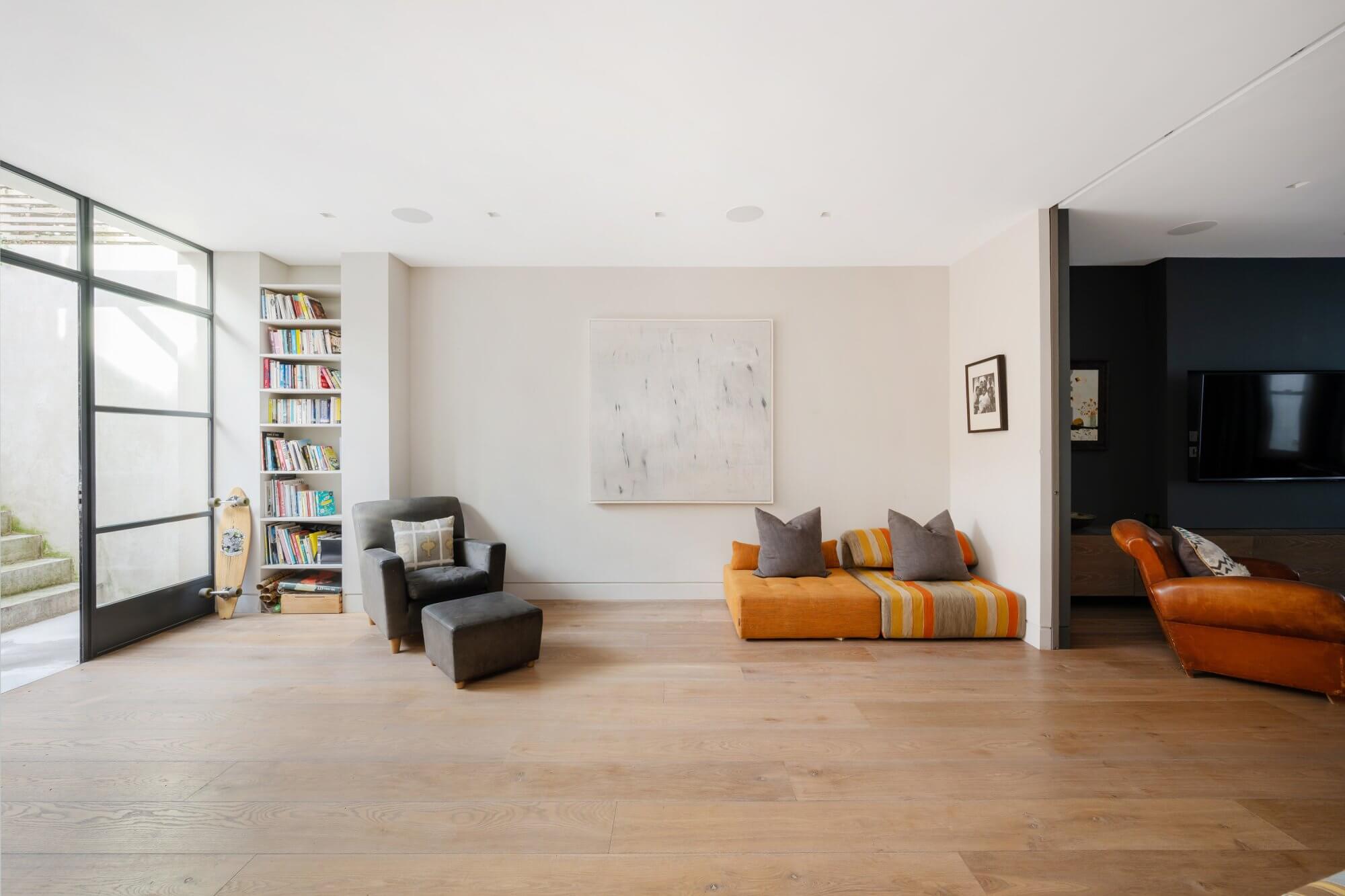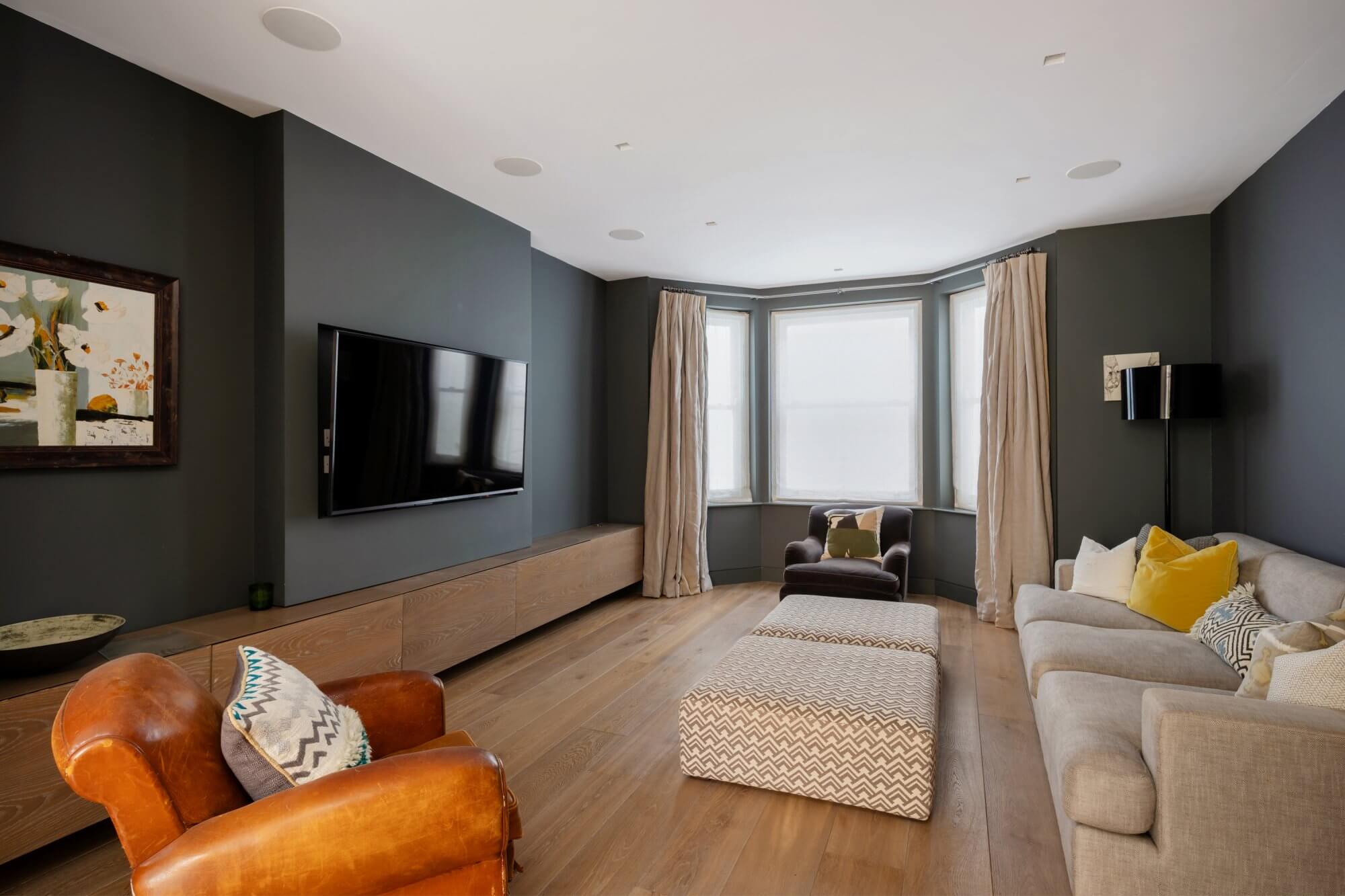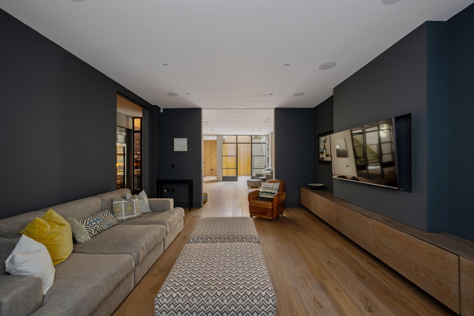 The lower ground floor provides particularly versatile space, including a family room, separate TV room and a dedicated study. A gym, which could also be arranged as a sixth bedroom, sits alongside a storage room, shower room and separate WC, completing this level which also benefits from its own direct access to the garden. Above, the first floor holds the principal bedroom with an en suite bathroom, alongside a second double bedroom and a practical utility room. The second floor adds three further double bedrooms served by a family bathroom.