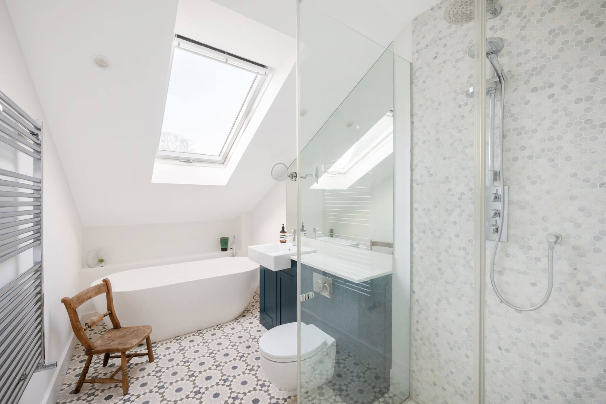The ground floor is arranged with a clear sense of flow. A generous reception room sits to the front, while to the rear a large kitchen, dining and family room has been extended to make the most of the southerly aspect. The layout is thoughtfully considered, with formal and informal spaces set apart, allowing the house to adapt easily to day to day living.