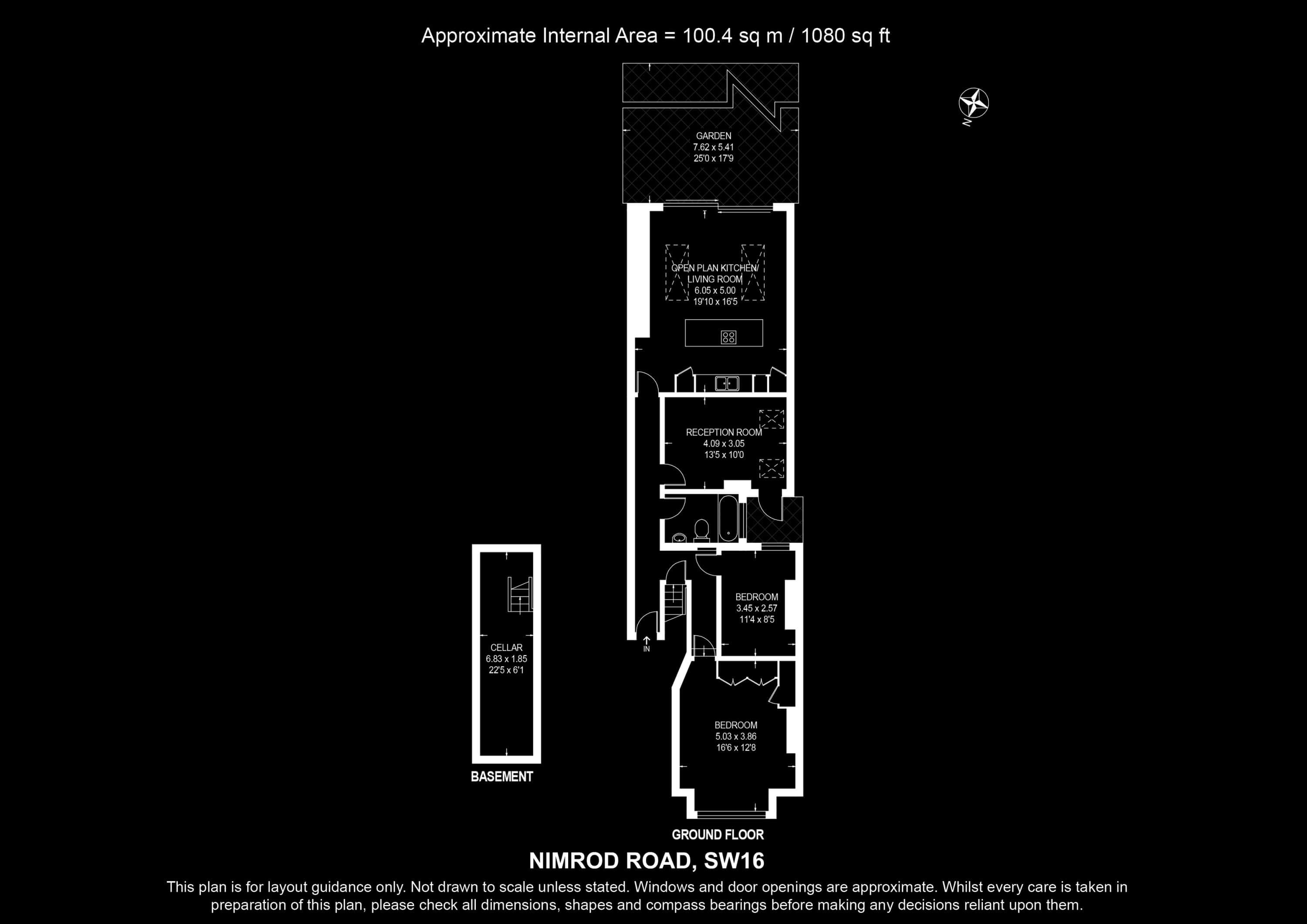 Internal Area (approx.): 100 sqm / 1,080 sq ft