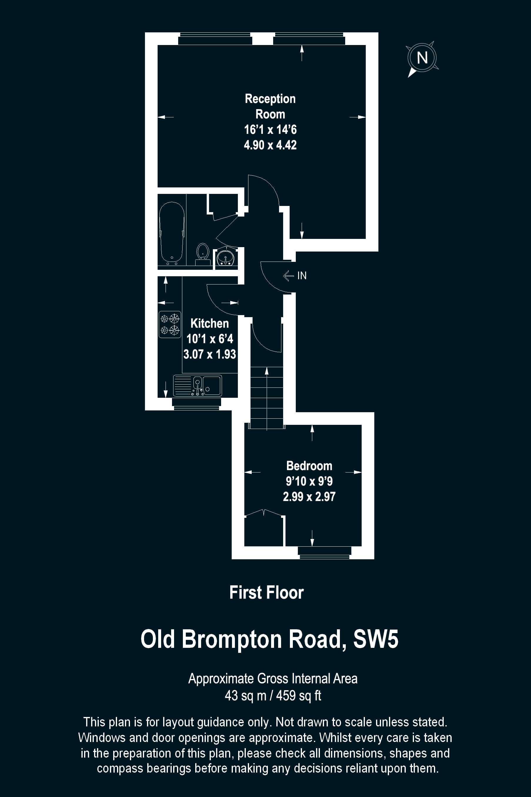 Internal Area (approx.): 43 sqm / 459 sq ft