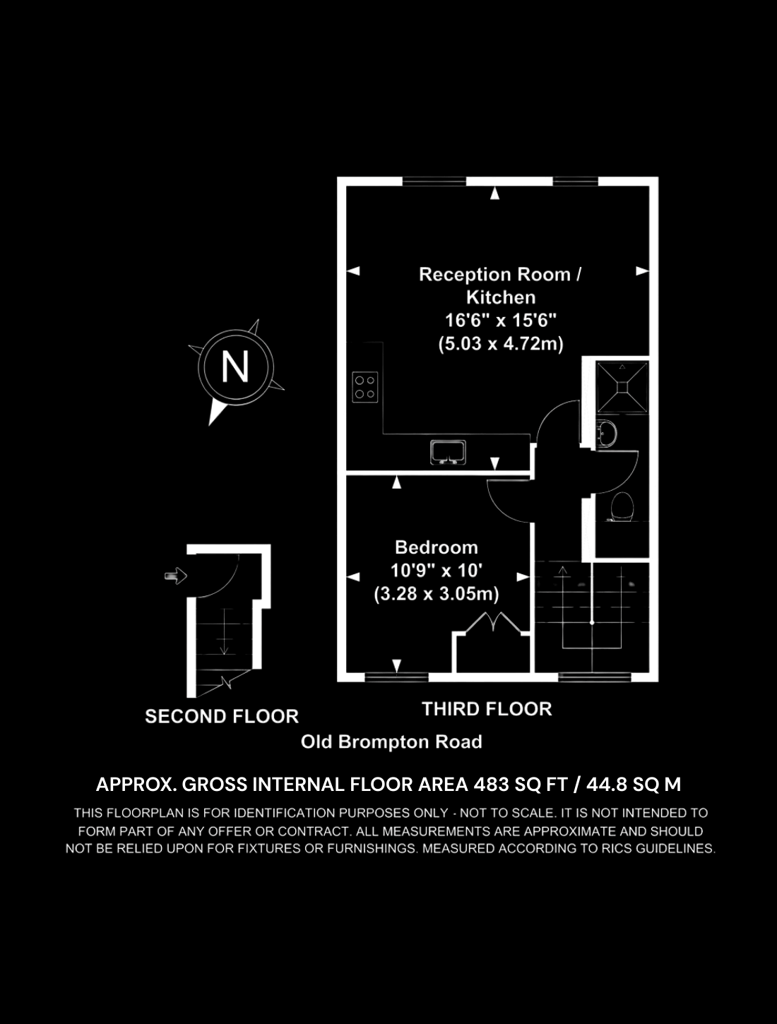 Internal Area (approx.): 45 sqm / 483 sq ft