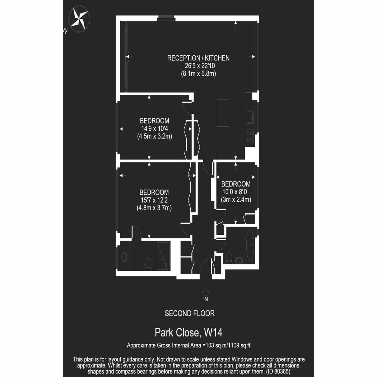Internal Area (approx.): 103 sqm / 1,109 sq ft