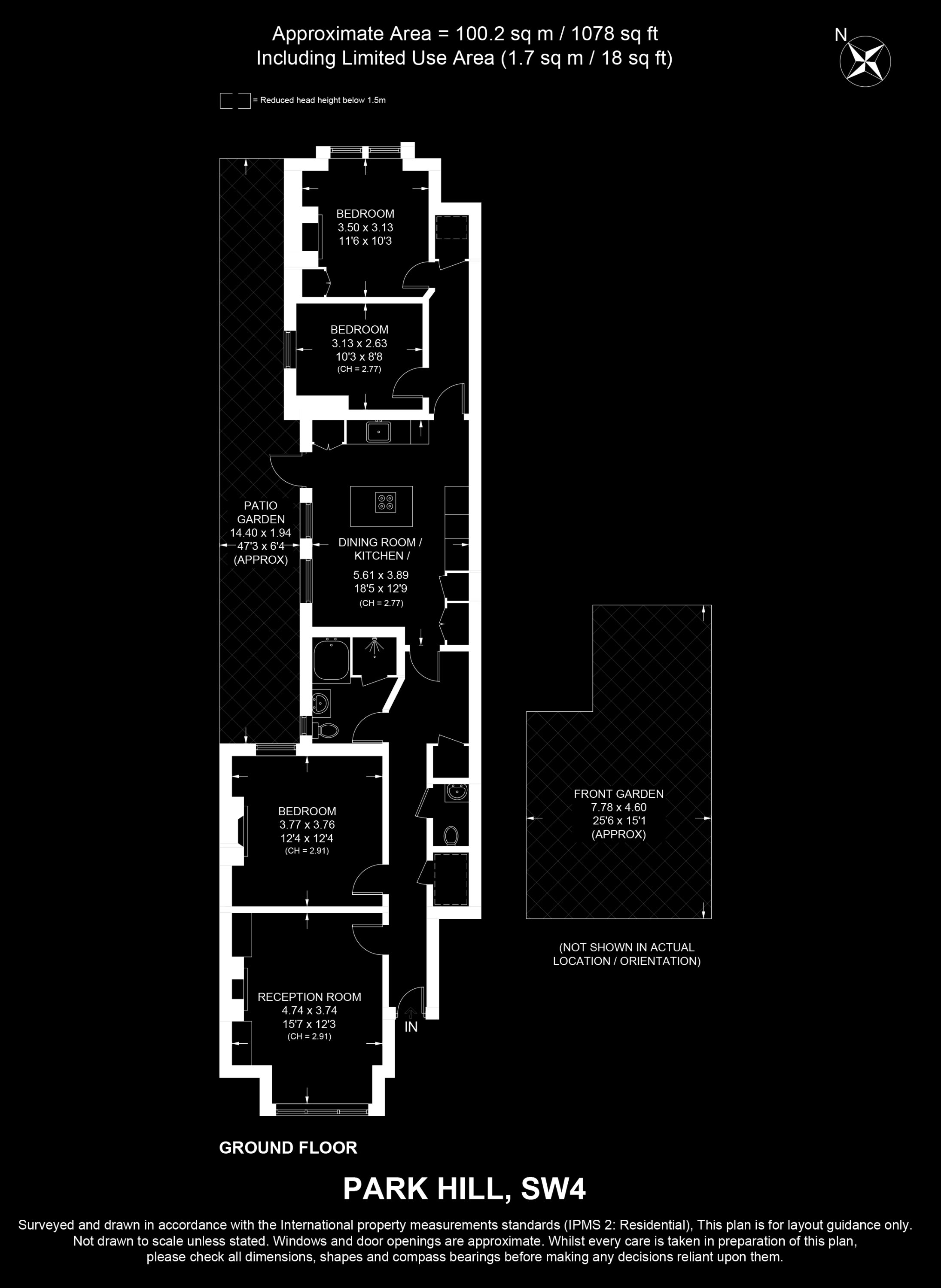 Internal Area (approx.): 100 sqm / 1,078 sq ft