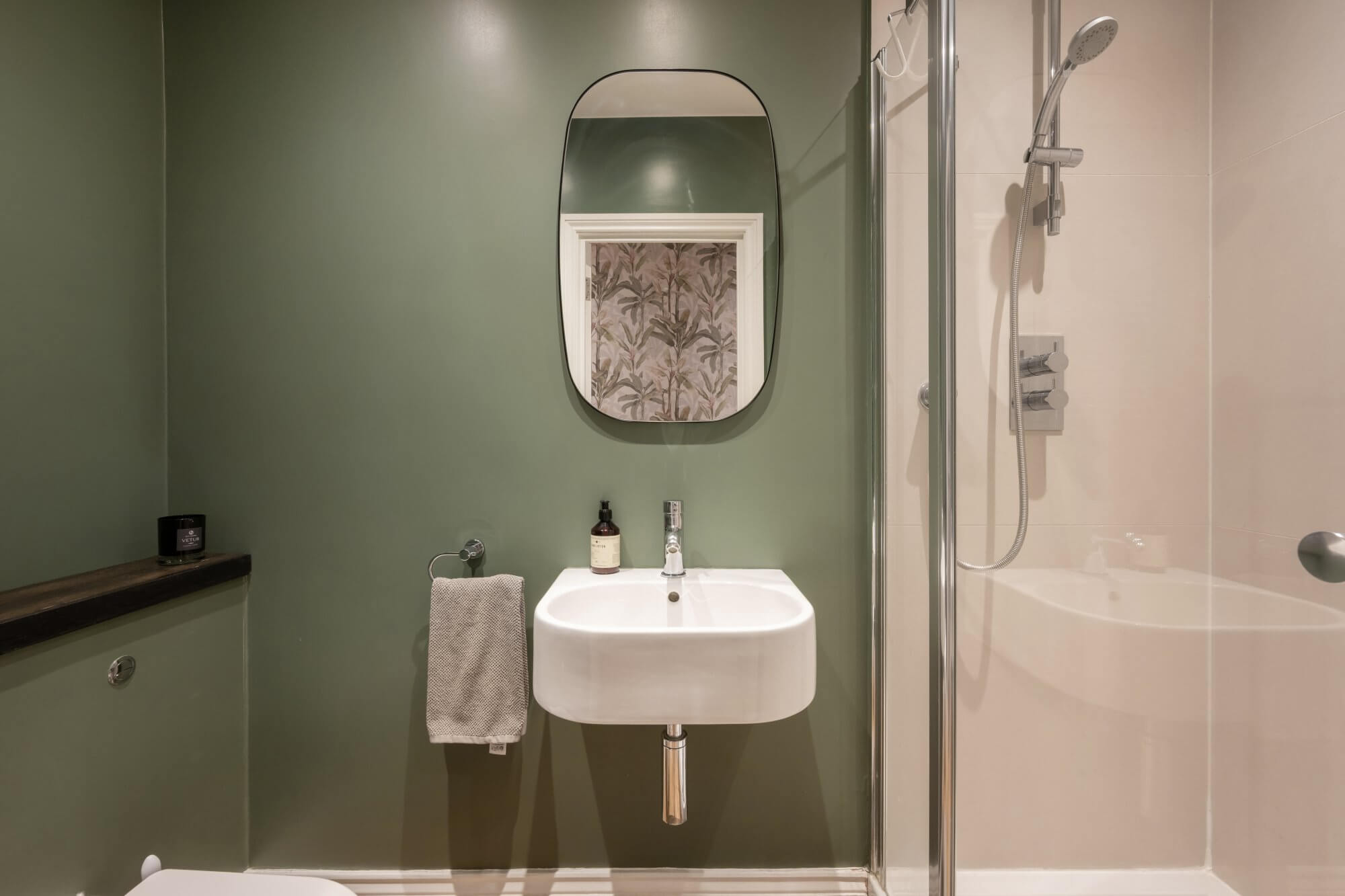 Throughout the apartment, a carefully curated scheme of deep greens, soft neutral tones and natural textures creates a cohesive and welcoming atmosphere. Bespoke joinery, considered lighting and premium materials elevate the home beyond the ordinary, delivering a turnkey property of genuine quality and character.