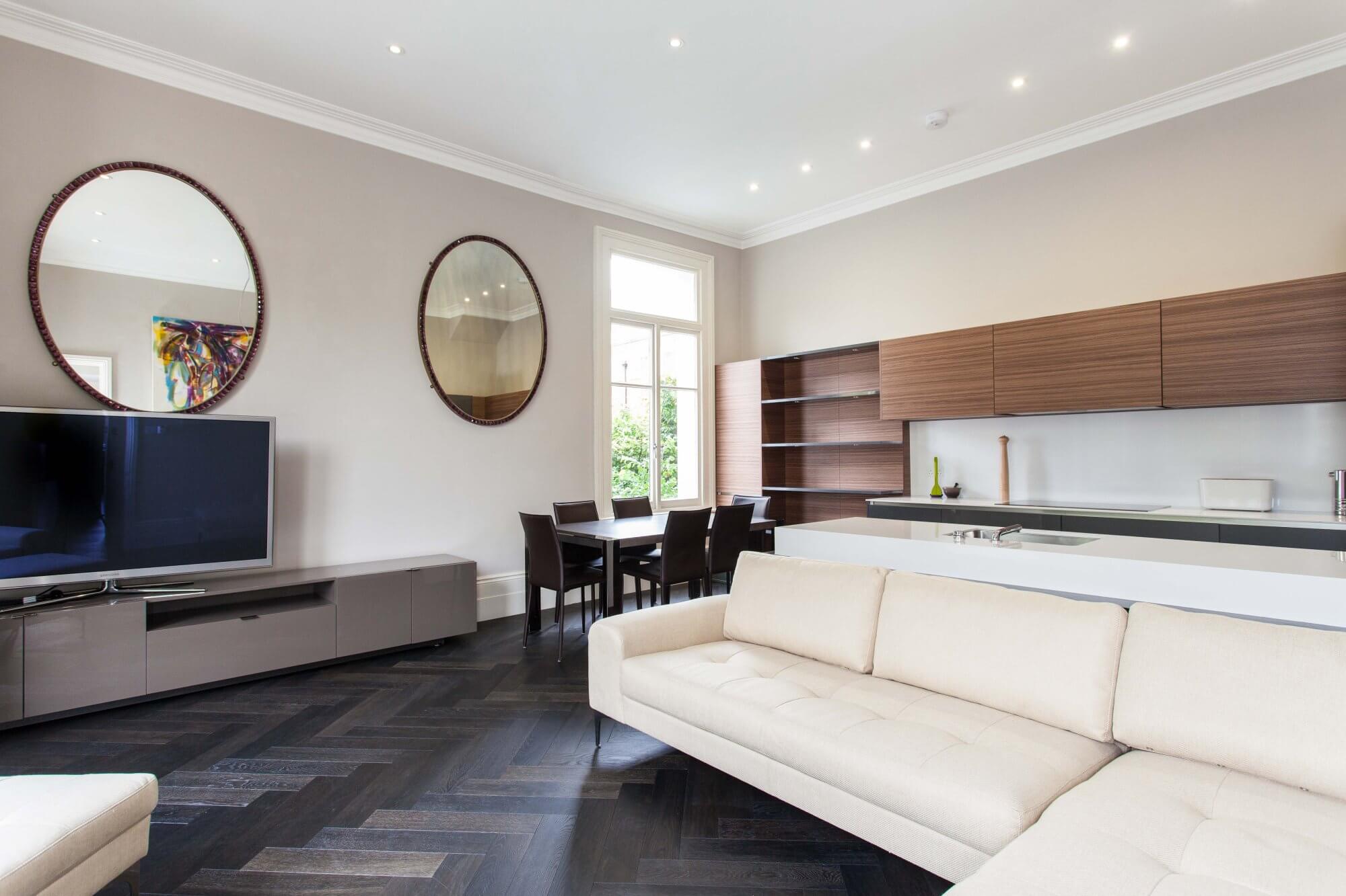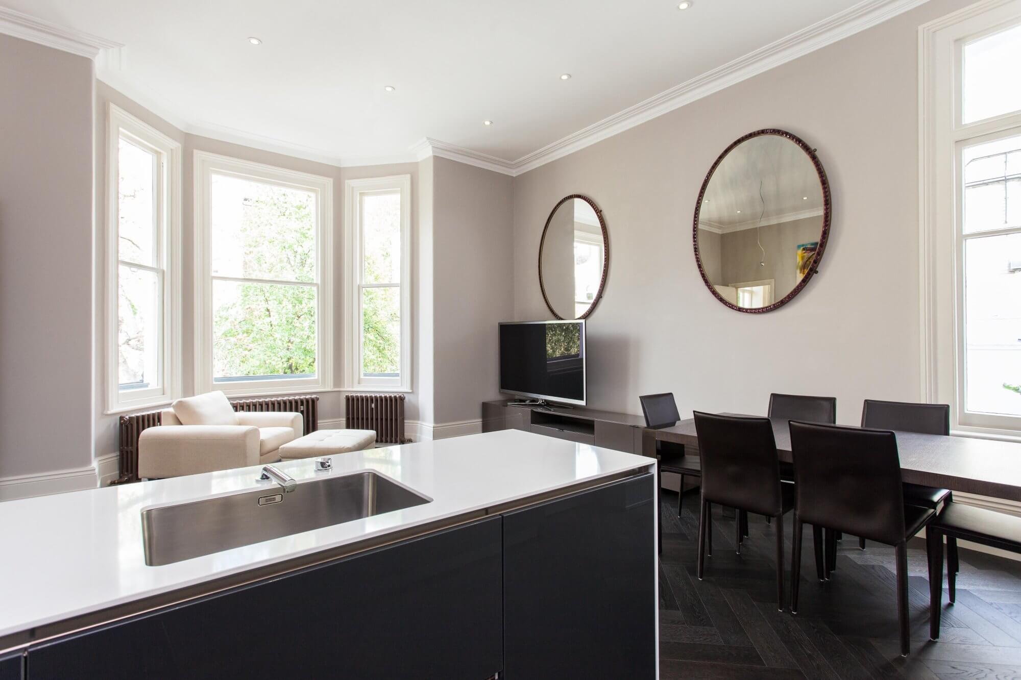 This exceptional apartment is set on the first floor of a period house in the heart of the Phillimore Estate, close to Holland Park and Kensington High Street.