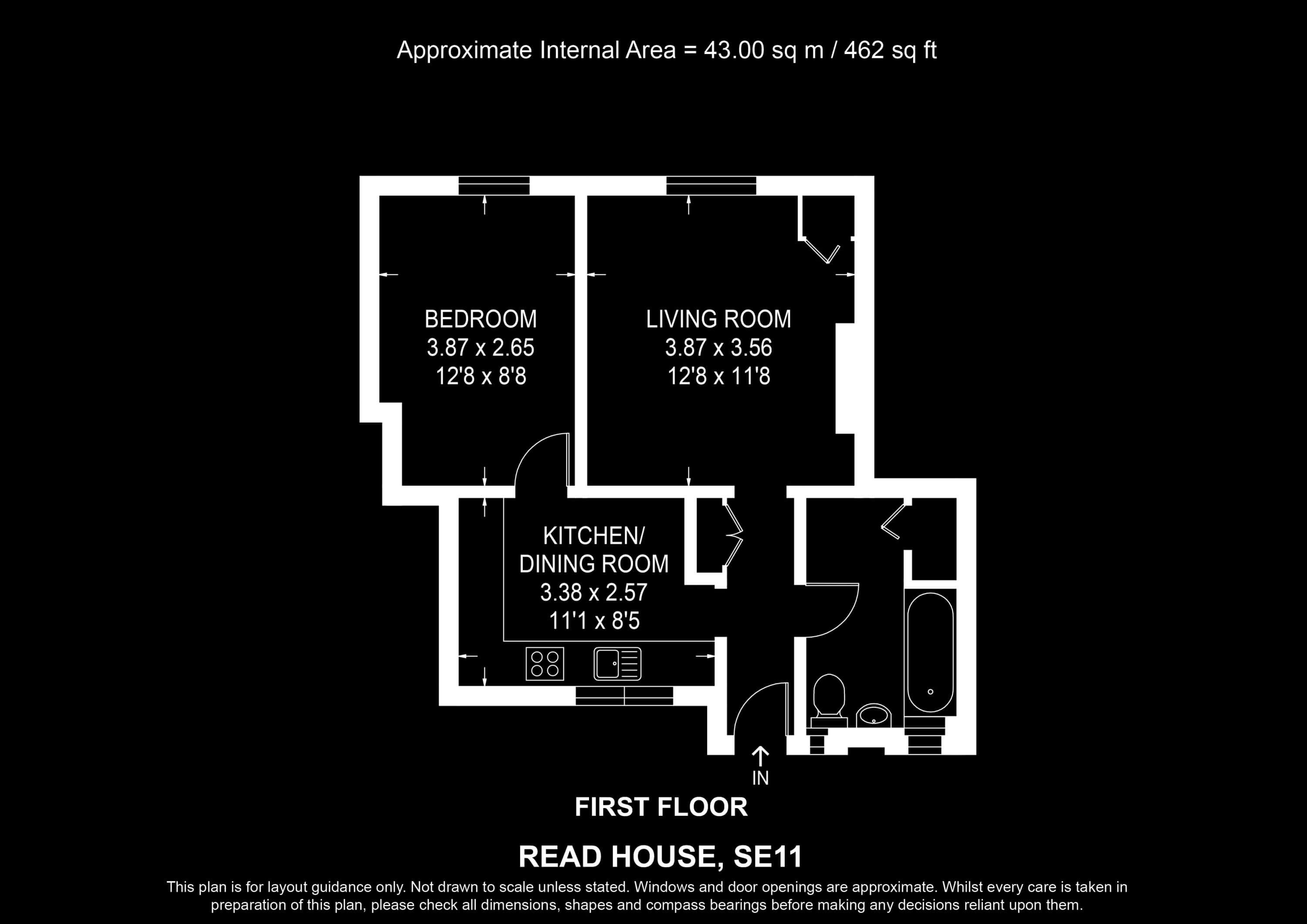 Internal Area (approx.): 43 sqm / 462 sq ft