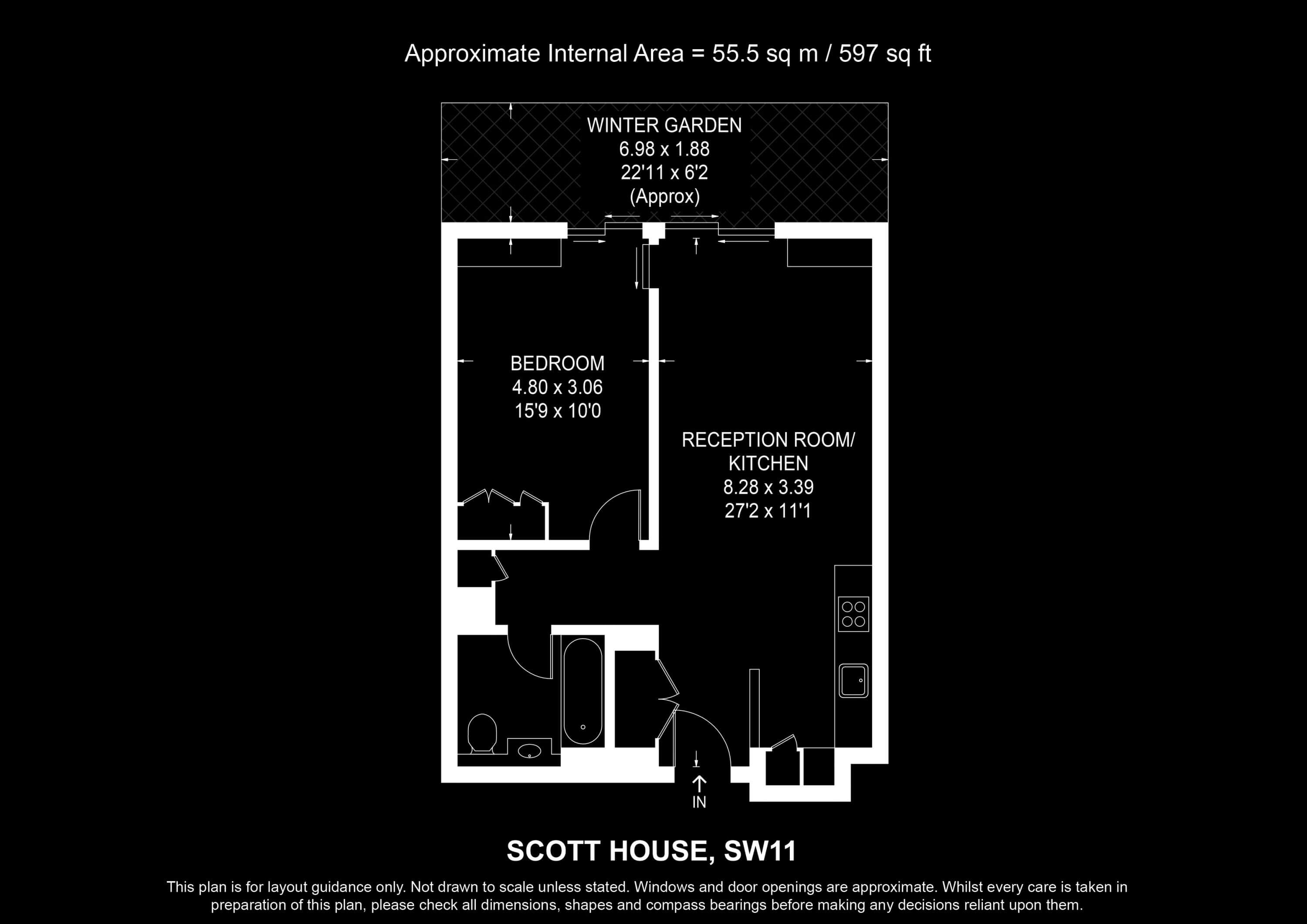Internal Area (approx.): 55 sqm / 597 sq ft