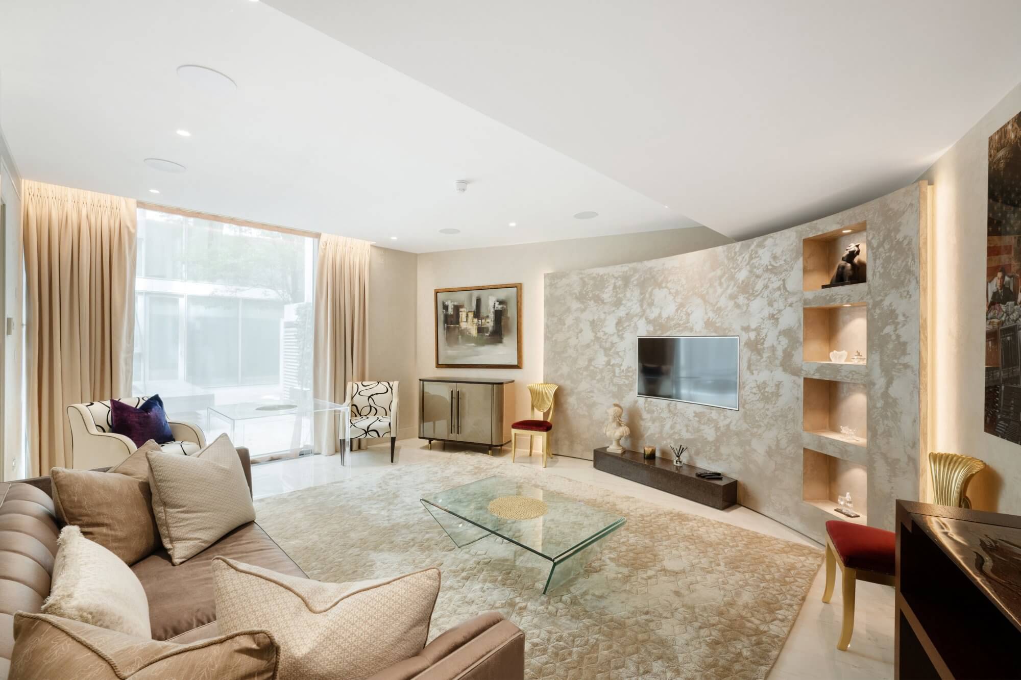 Tucked quietly within the exclusive East Mews, this elegant end-of-terrace house is arranged over ground and first floors and extends to approximately 1,015 sq ft (94.3 sq m). Overlooking the internal courtyard and benefiting from its own private entrance via Raphael Street, the property offers a rare sense of discretion and independence, combined with the full service and security of a world-class residential development.