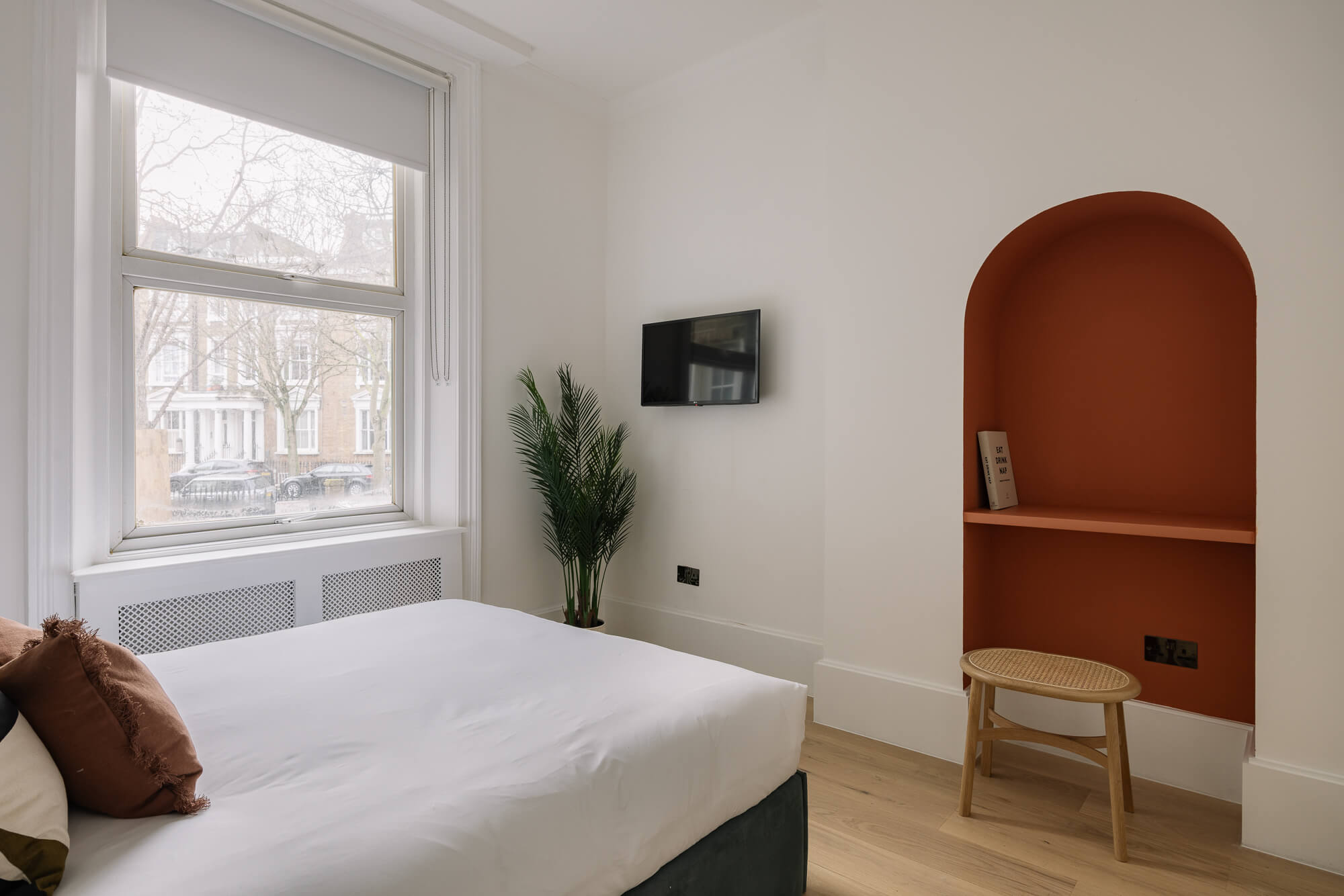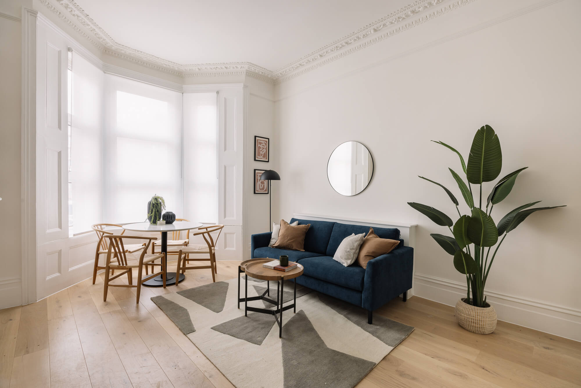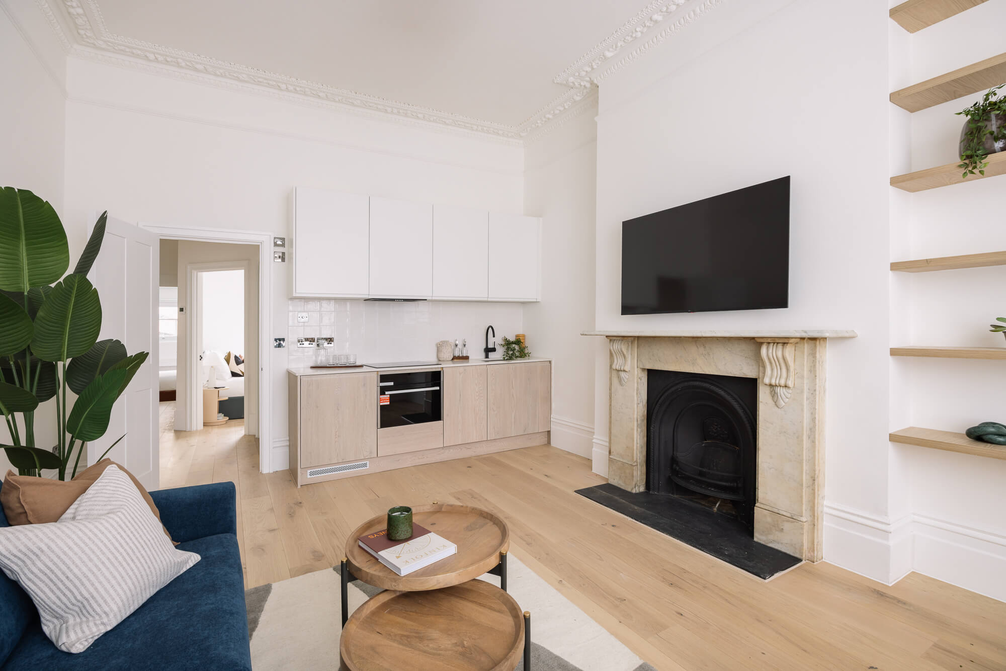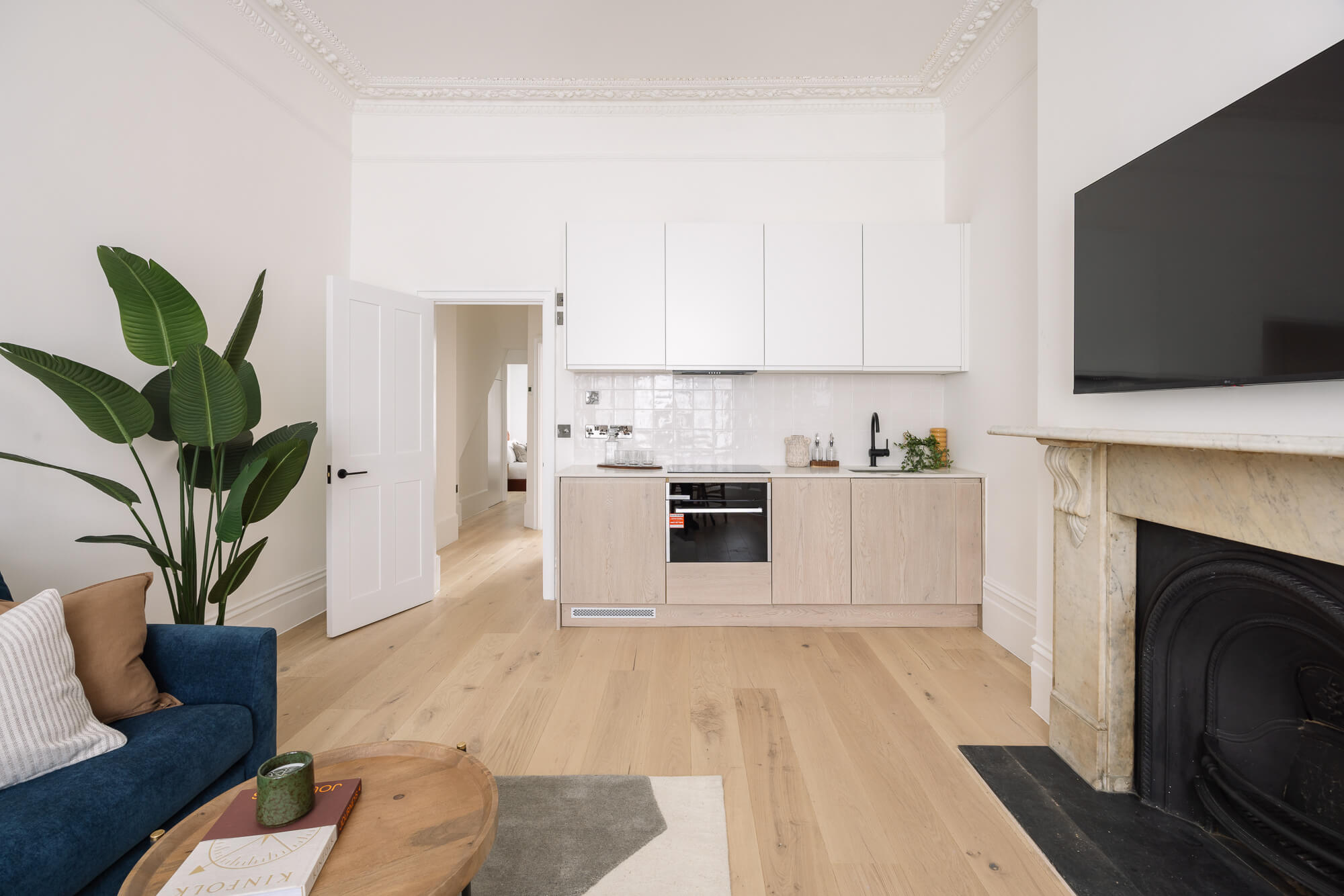 A beautifully refurbished two-bedroom apartment set within an elegant period building, combining classic architectural features with contemporary interior design to create a stylish and comfortable Central London home.