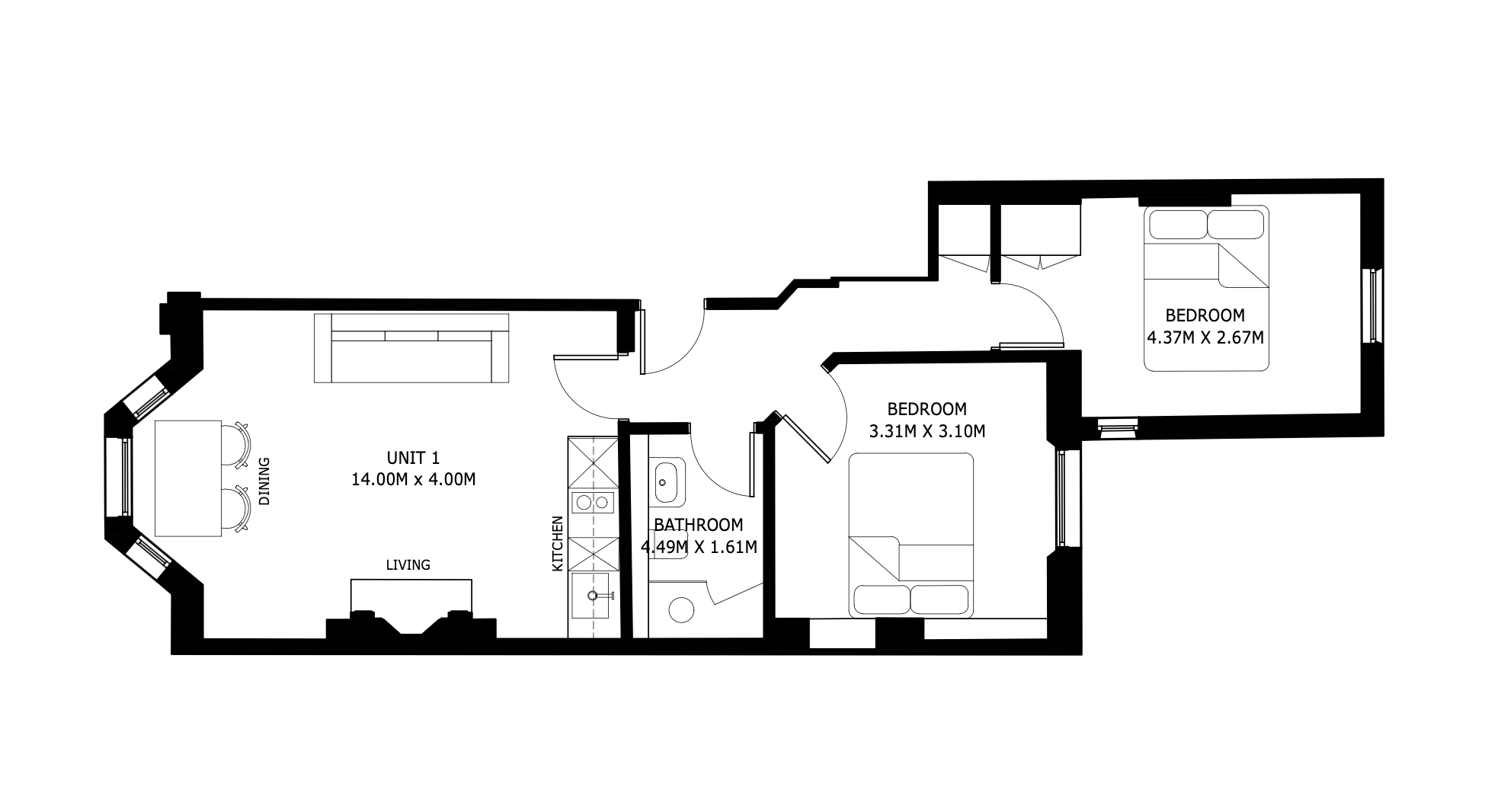 - Bedrooms: 2