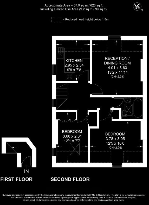 Internal Area (approx.): 58 sqm / 623 sq ft