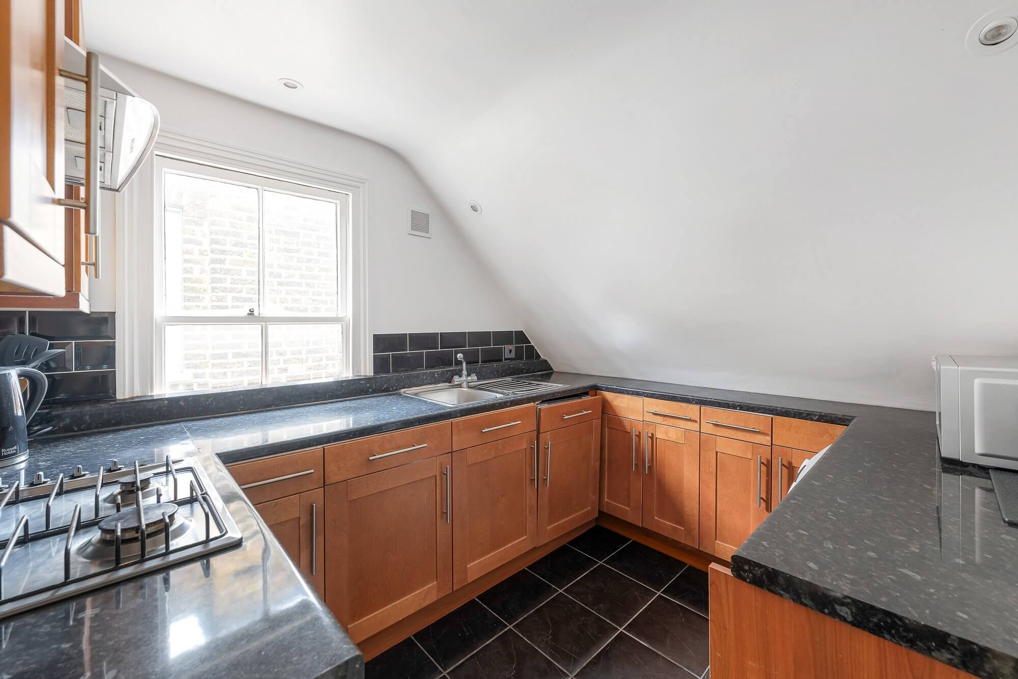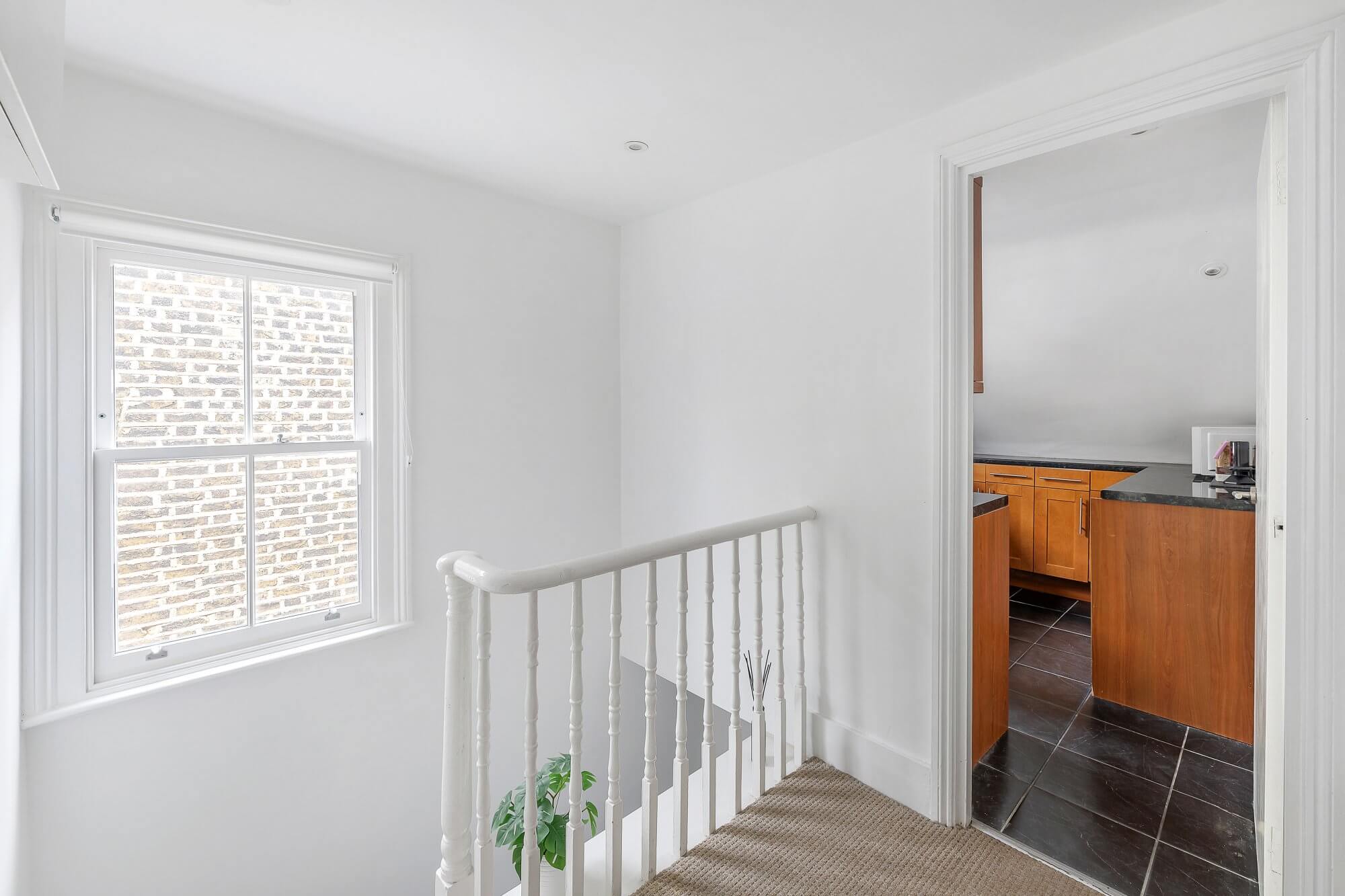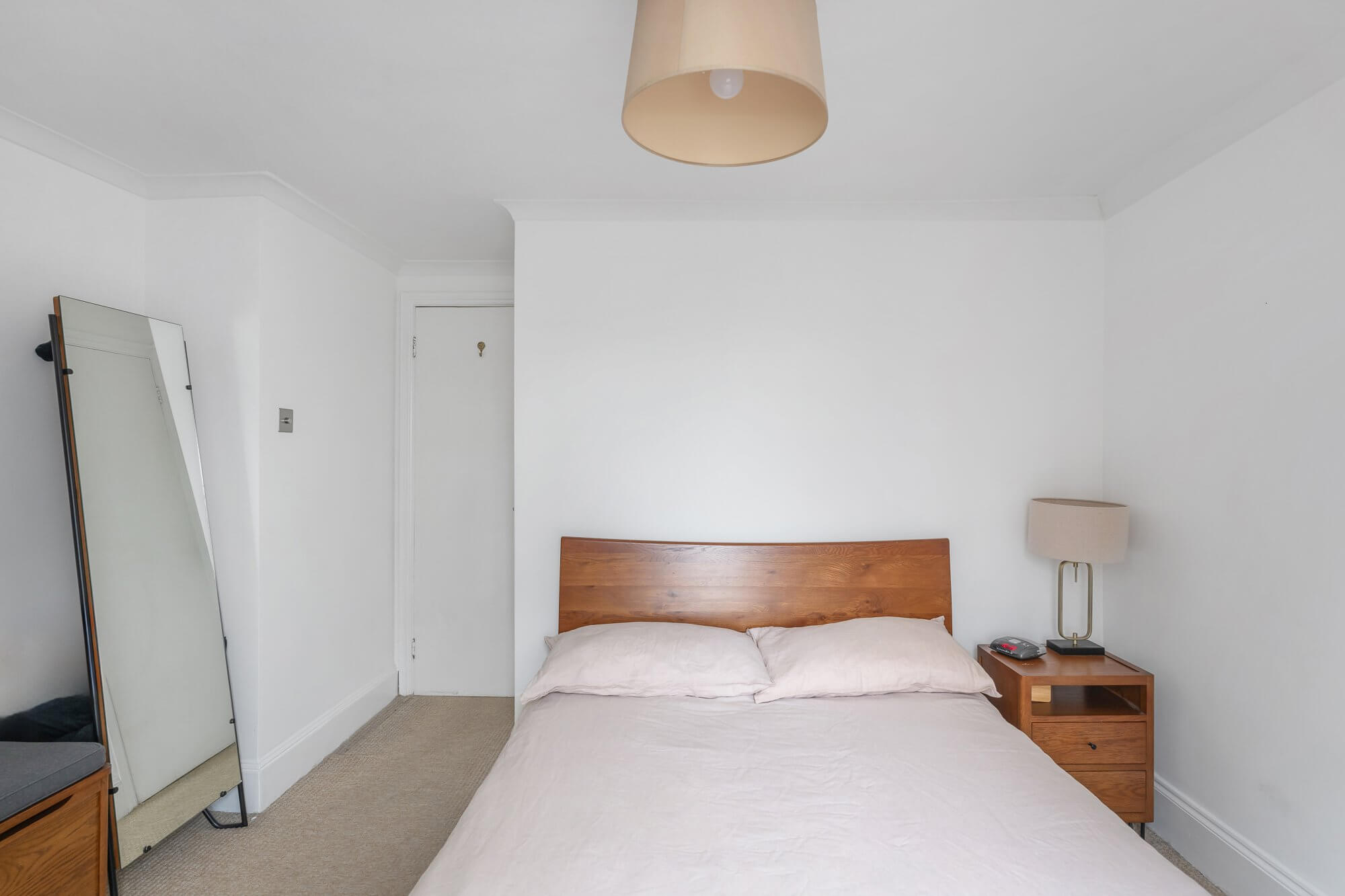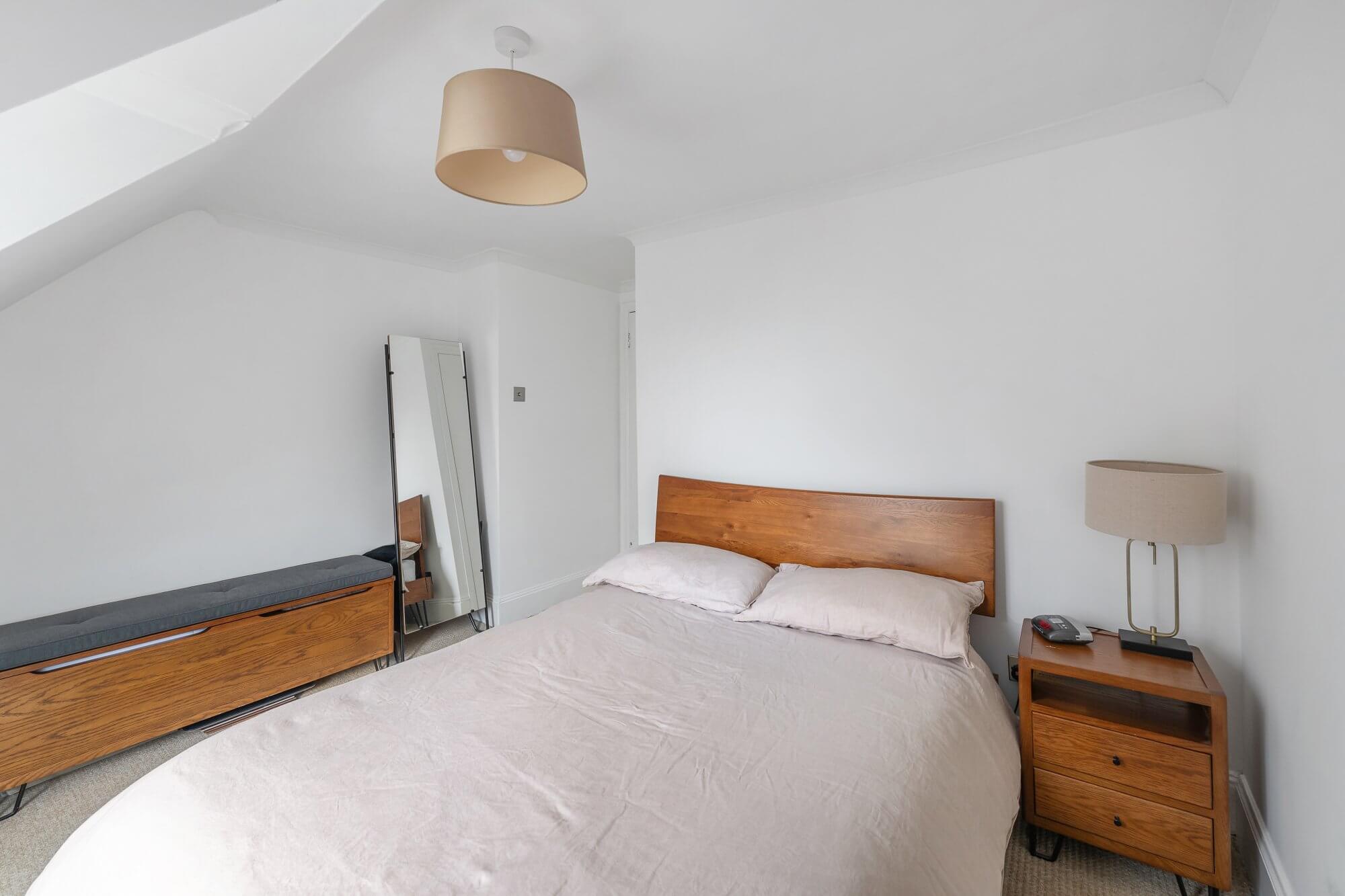 The property includes a generous principal bedroom and a second bedroom, currently arranged as an office, making it ideal for home working or occasional guests. A modern family bathroom completes the accommodation. Positioned on the top floor, the apartment benefits from excellent natural light, a good sense of privacy and well-considered storage throughout.