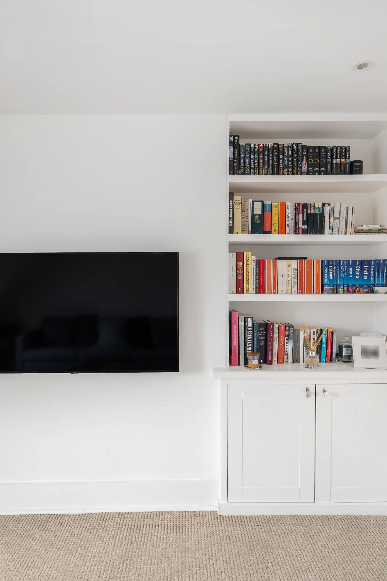 The property offers well-balanced accommodation and is filled with natural light throughout. It contains a generous reception/dining room, thoughtfully designed with bespoke built-in shelving and cabinetry, creating a calm and contemporary living space ideal for both entertaining and day-to-day living. The separate kitchen is well arranged and offers excellent storage and worktop space.