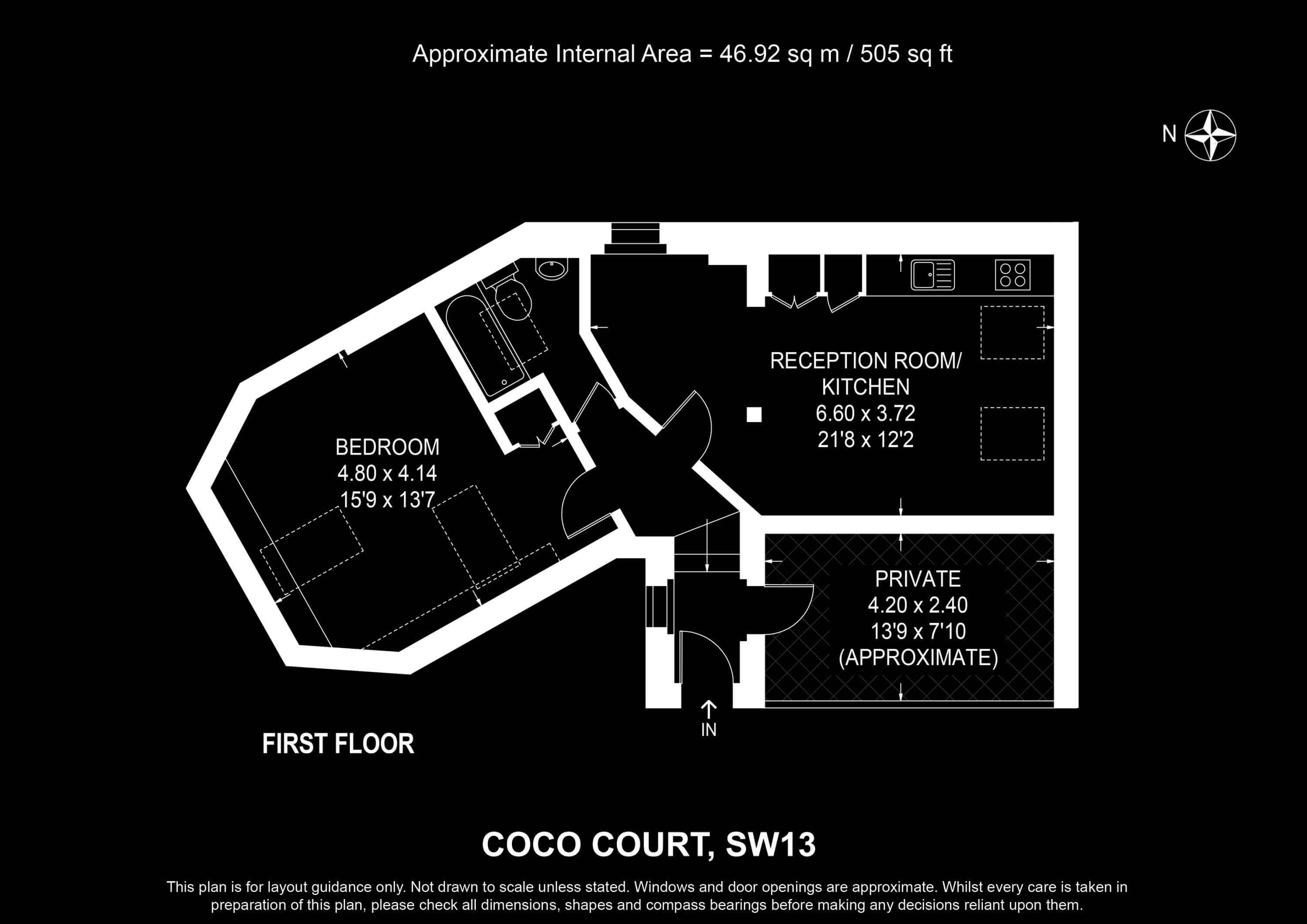 Internal Area (approx.): 47 sqm / 505 sq ft