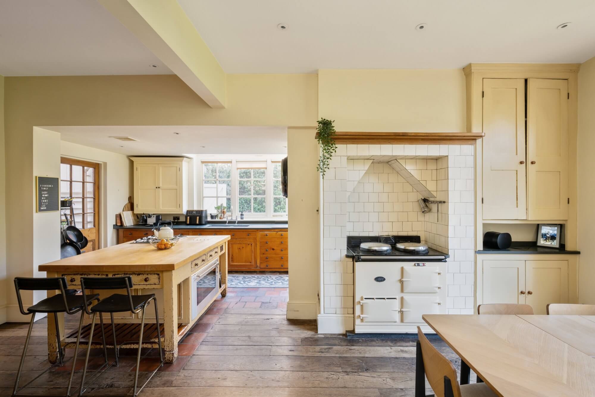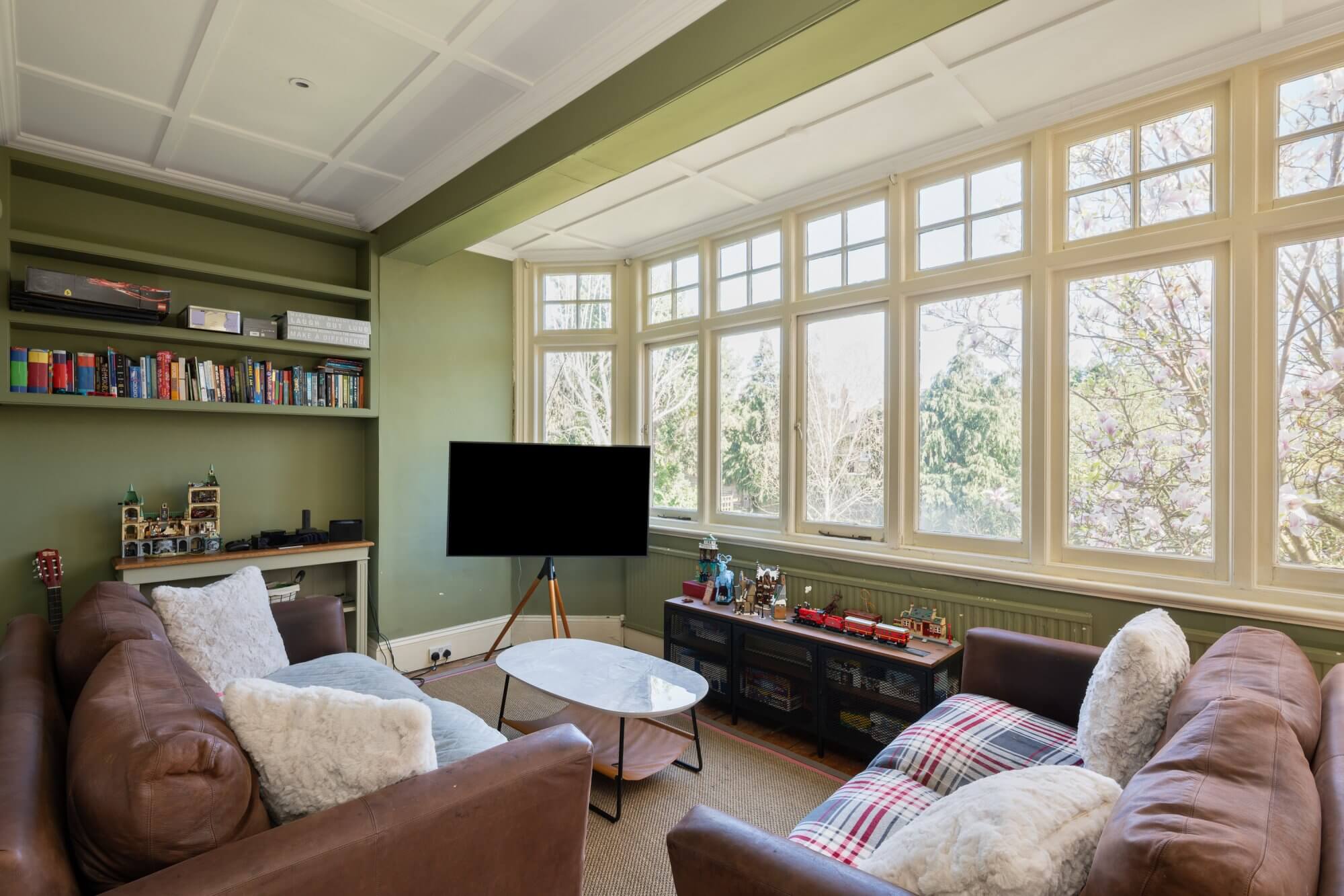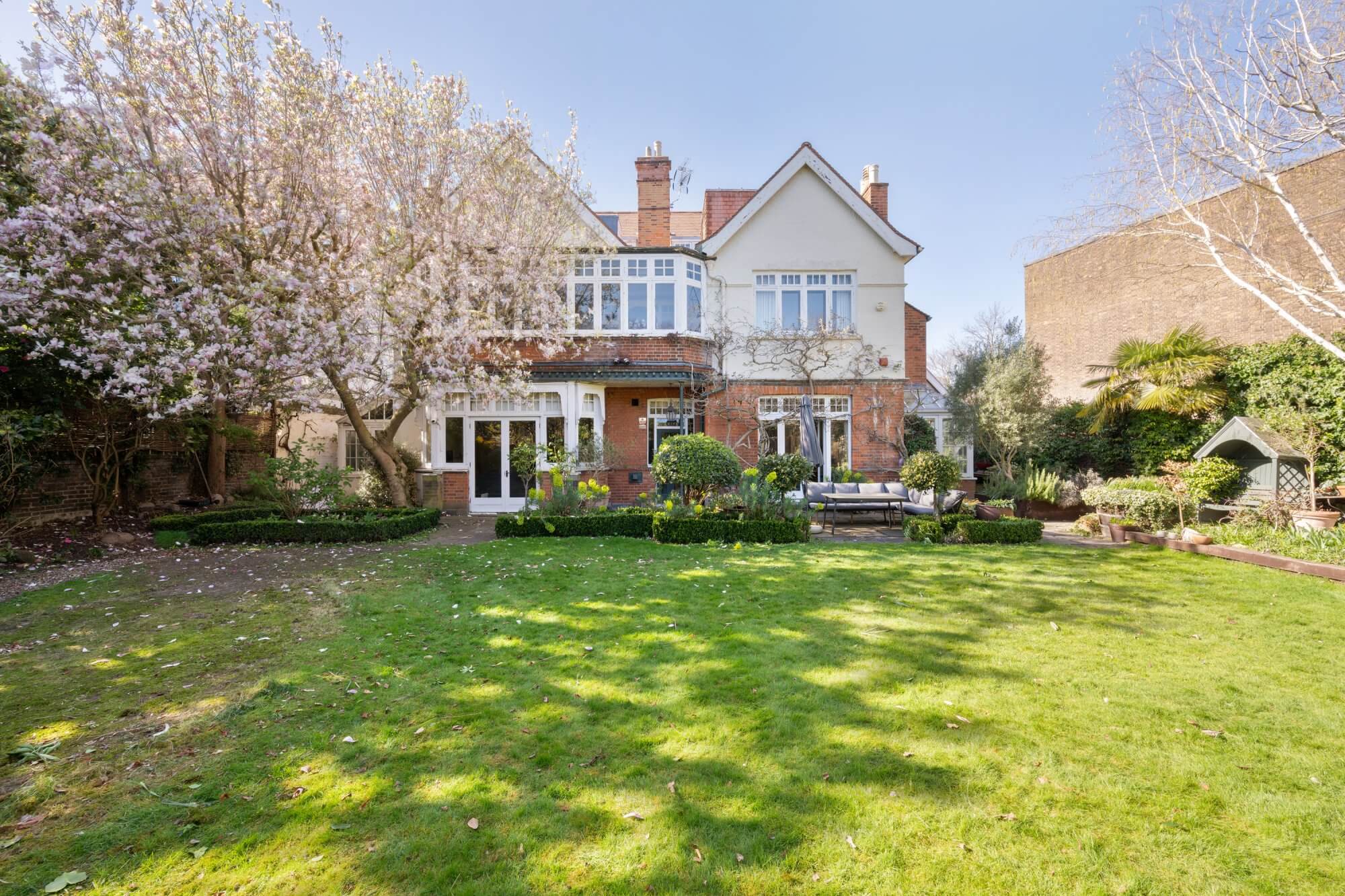 The property offers well-balanced accommodation across three floors plus a cellar, set on a private plot in coveted West Putney. An impressive hall with an open fire leads to a spacious drawing room with a feature fireplace and bay window, as well as the first Marston & Langinger conservatory, perfect for morning coffee with garden views. A large sitting room at the rear has an open fire and French doors overlooking the landscaped garden. The kitchen/breakfast/family room, featuring a pretty Aga and bespoke Chalon kitchen, serves as the home’s hub with access to the garden and includes a second conservatory for additional light and space.
